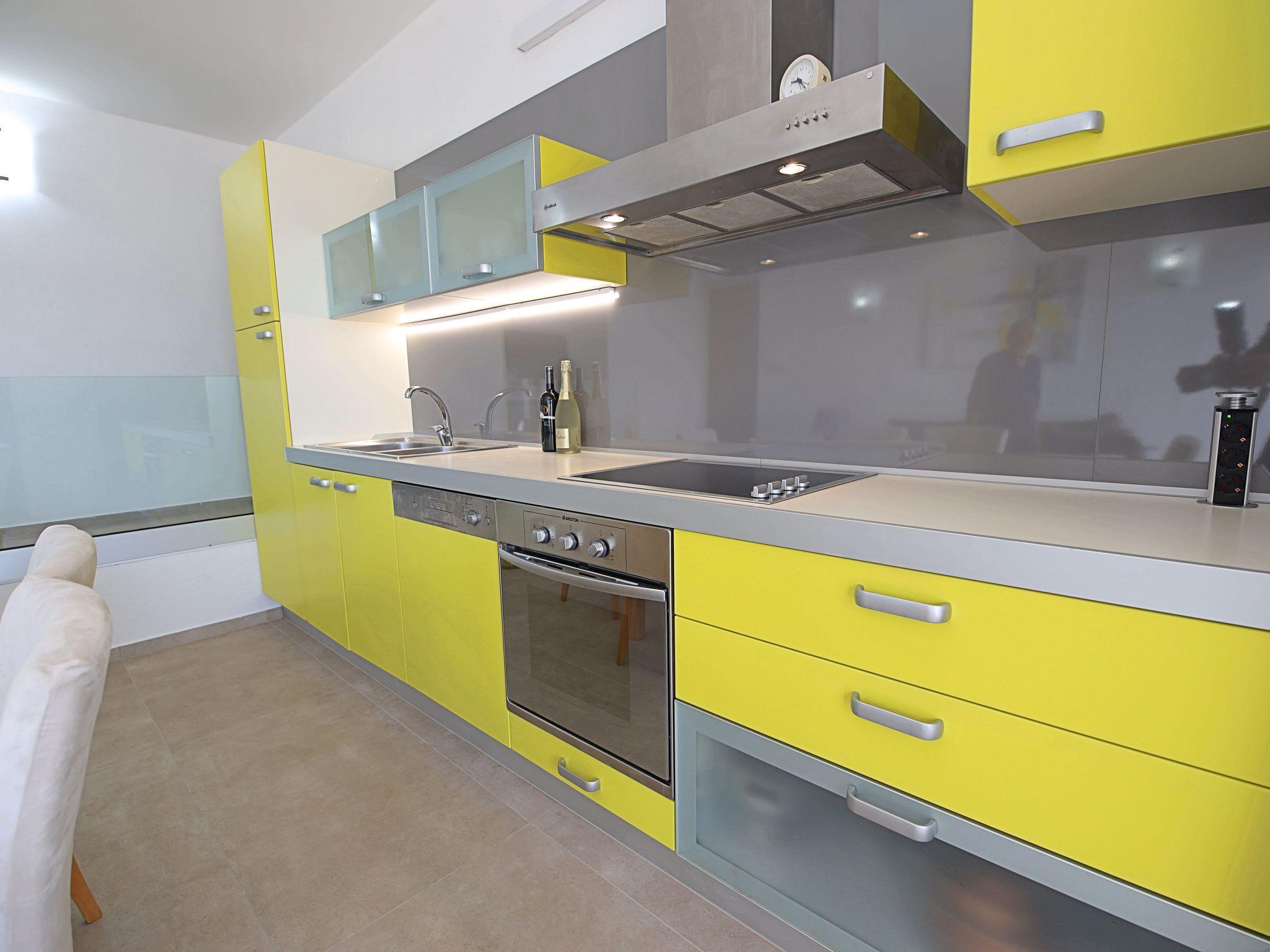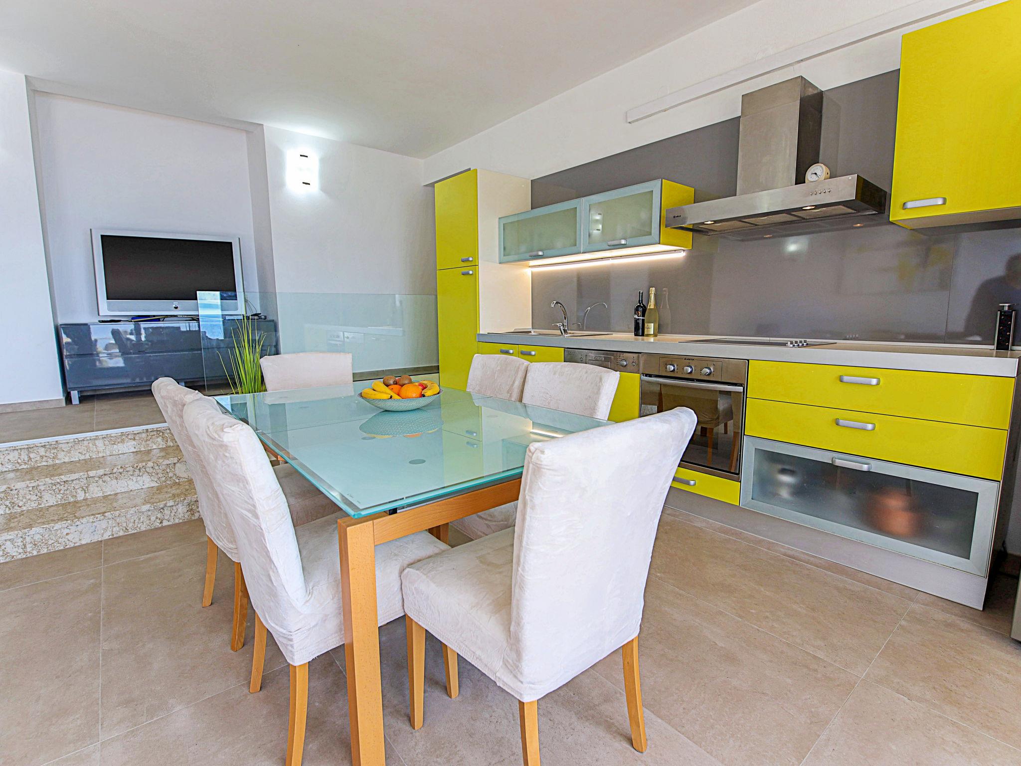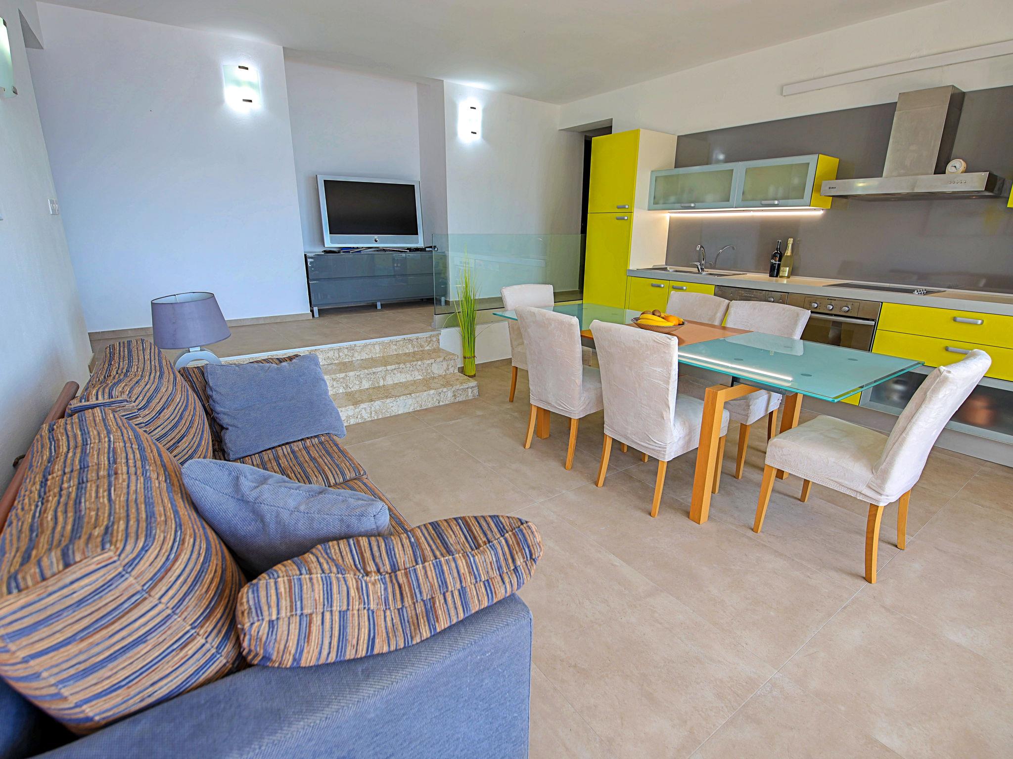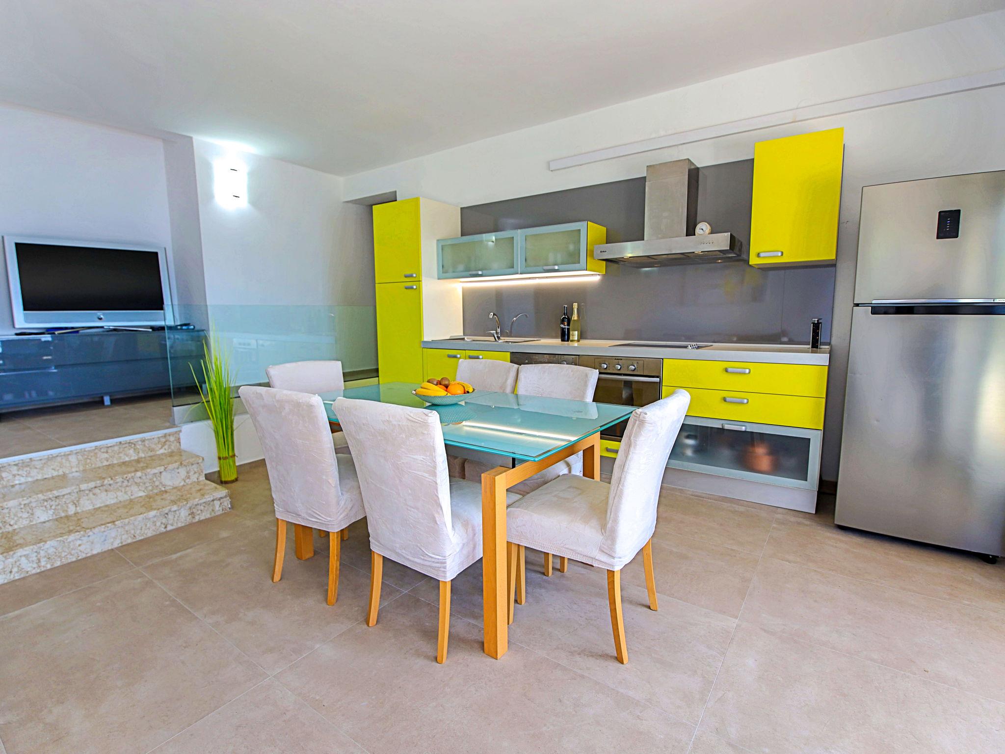 Okrug Gornji (Ciovo), 6 km from Trogir: Beautiful, cosy apartment house "Villa Pinia". Outside the resort, 1.5 km from the centre of Okrug Gornji, in a quiet, sunny, elevated position, 20 m from the sea, 20 m from the beach, in the countryside. For shared use: garden with plants, swimming pool angular (11 x 4 m, depth 120 - 140 cm, seasonal availability: 25.Apr. - 12.Sep.) with salt water and internal staircase. Outdoor shower, patio, barbecue. In the house: internet access, washing machine. Steep motor access to the house. Parking at the house on the premises. Shop 250 m, restaurant 1.5 km, bus stop 1.9 km, pebble beach 100 m, rocky beach 20 m. Please note: Additional accommodations can be booked.