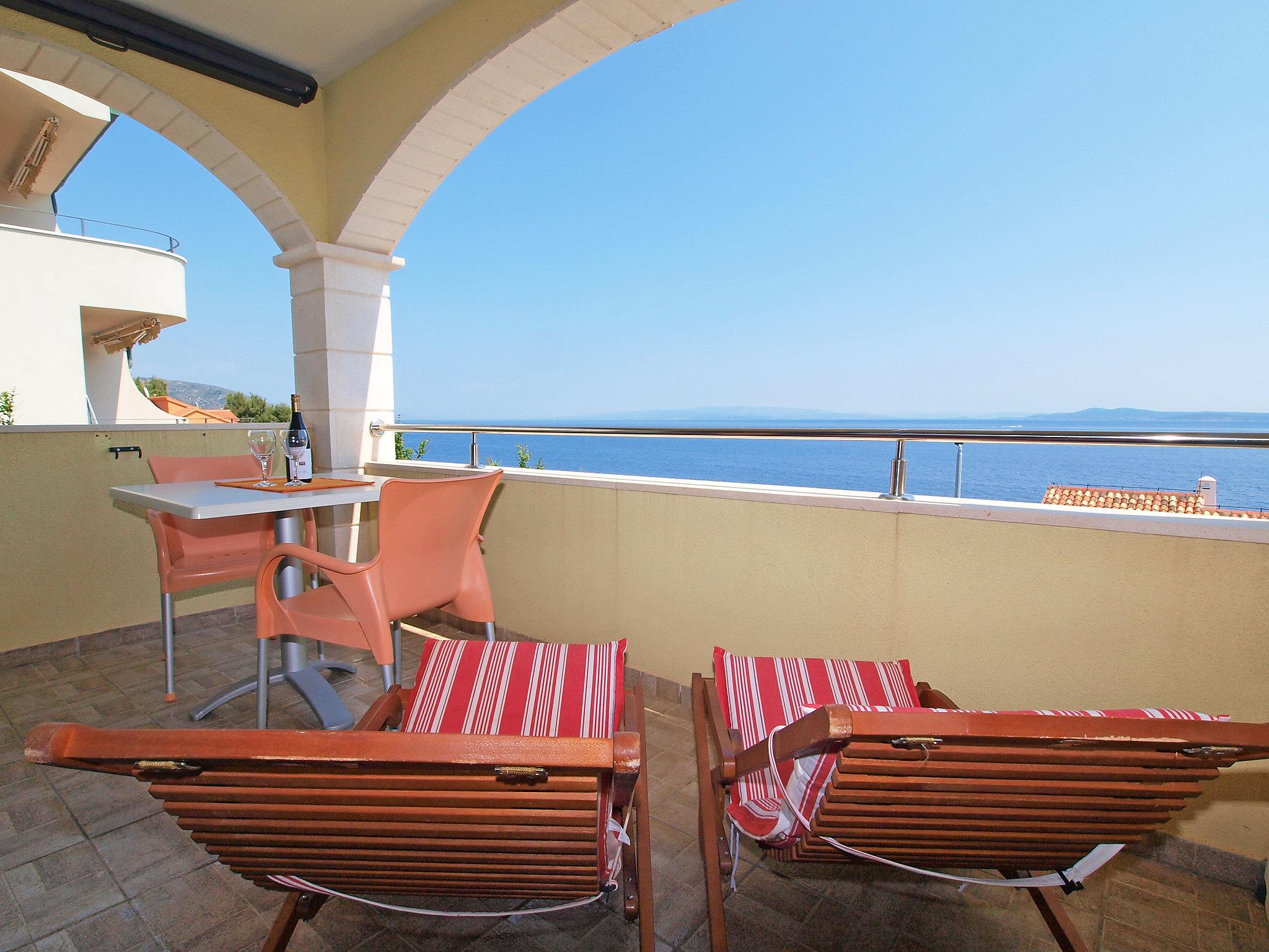 2-room apartment 27 m2 on 1st floor. Beautiful and modern furnishings: living/dining room with 1 sofabed, satellite TV and air conditioning. Exit to the terrace. 1 double bedroom with fan. Open kitchen (4 hot plates, oven, microwave, electric coffee machine). Shower/WC. Terrace 10 m2, roofed, south facing position. Terrace furniture. Marvellous view of the sea and the swimming pool. Facilities: Internet (WiFi, free).