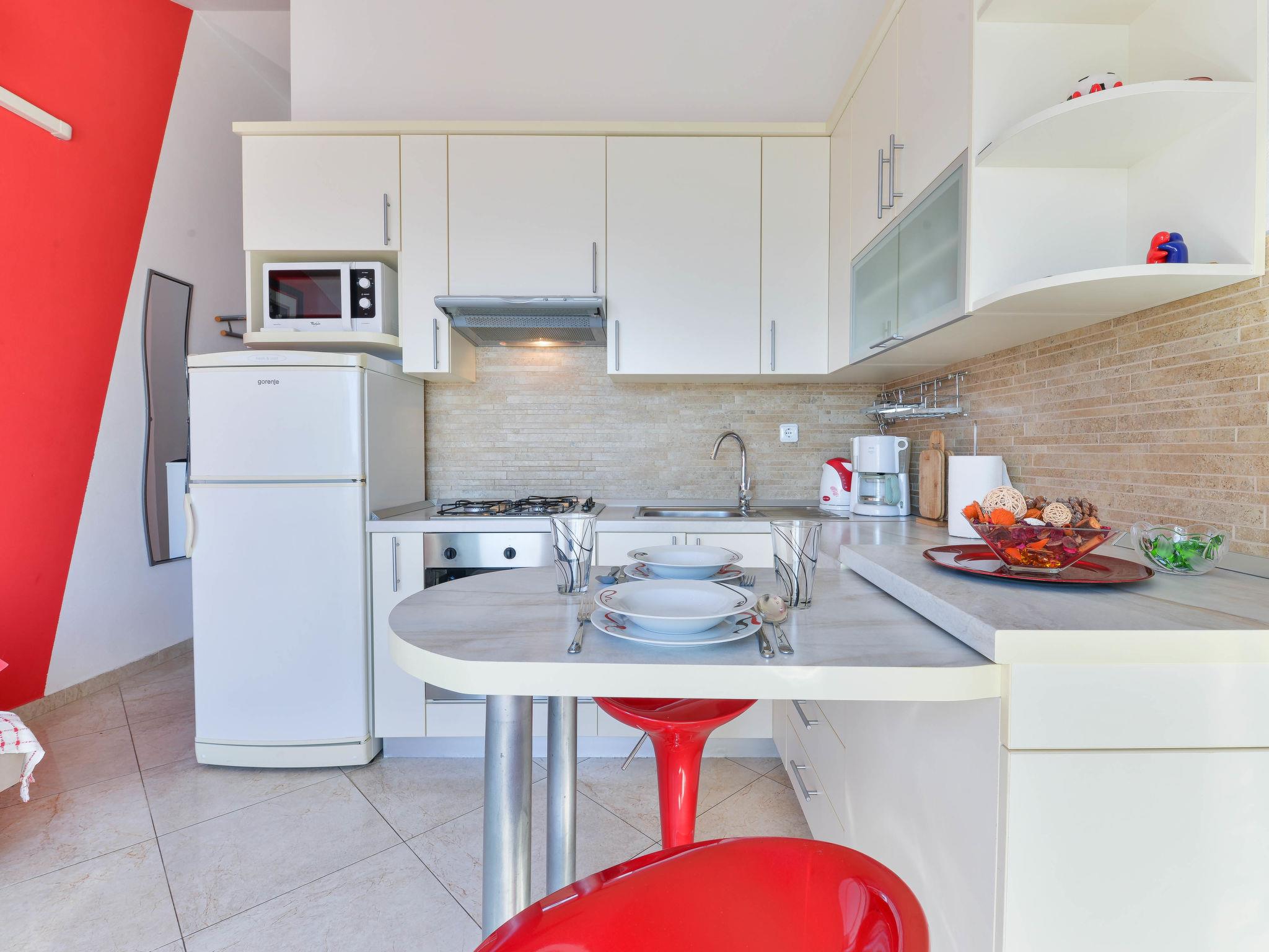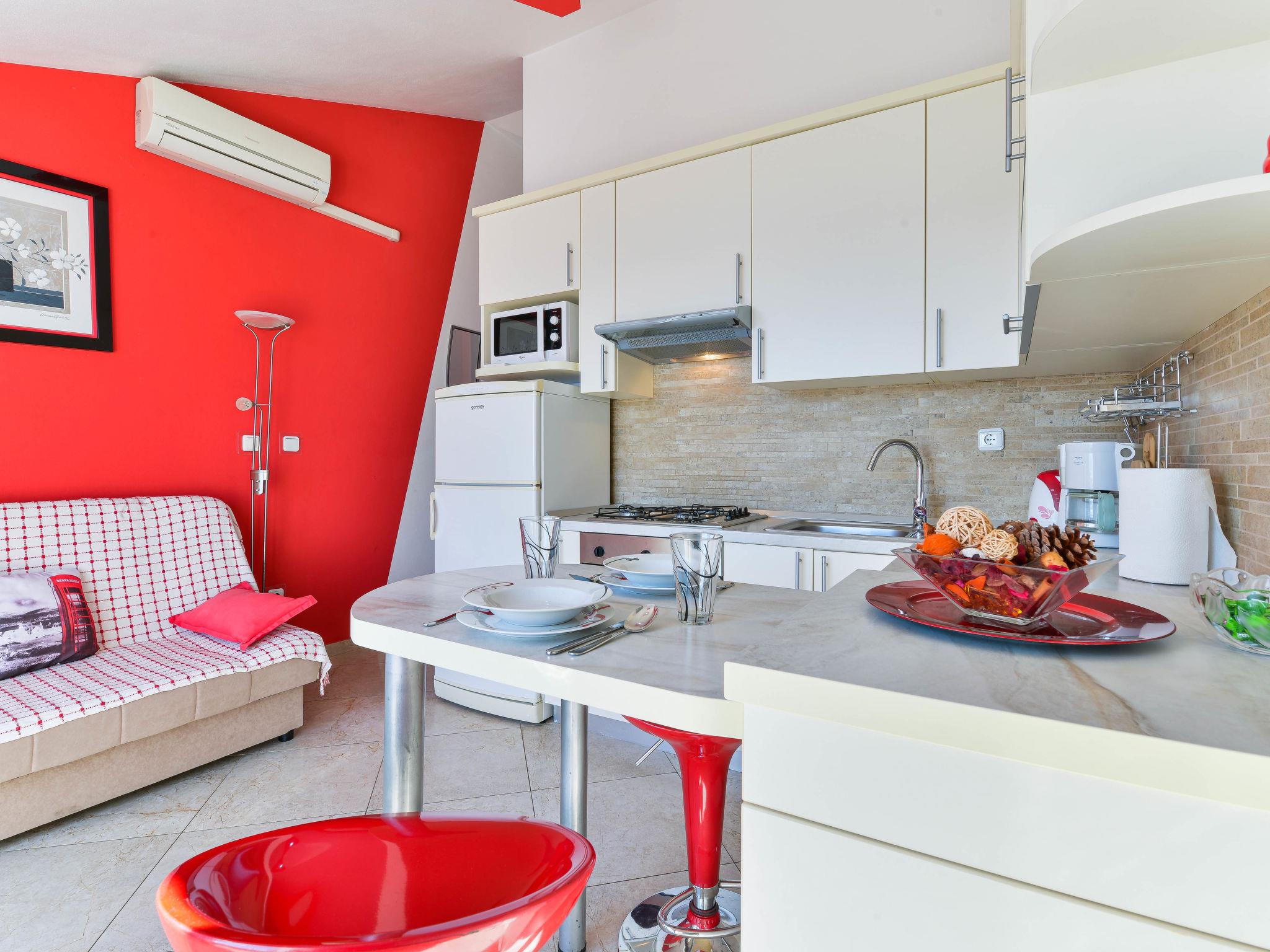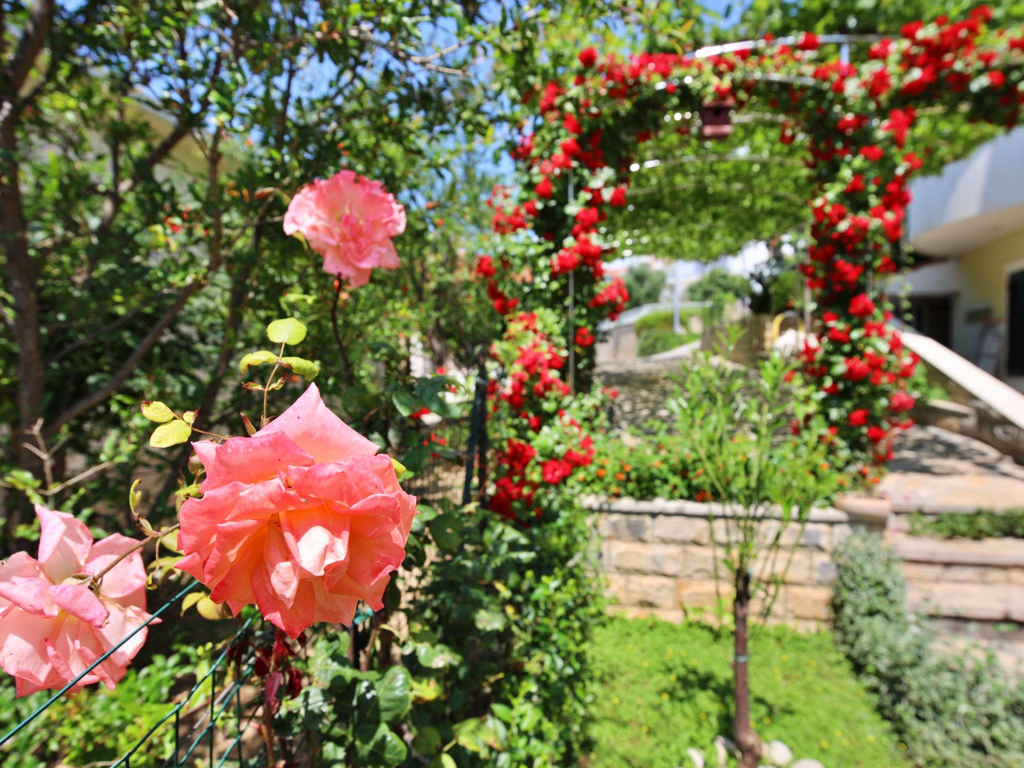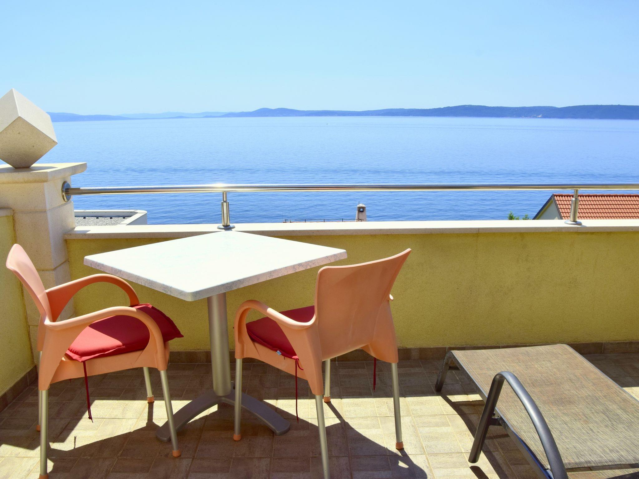Okrug Gornji (Ciovo), 6 km from Trogir: Beautiful apartment house "Villa Andjelka". 1 km from the centre of Okrug Gornji, in a quiet, sunny, elevated position, 50 m from the sea, 50 m from the beach. For shared use: property, swimming pool heated (38 m2, depth 130 - 160 cm, seasonal availability: 25.Apr. - 03.Oct.) with internal staircase. WC in the pool area, outdoor shower, poolhouse with fridge, terrace, garden furniture, barbecue. In the house: internet access, sauna (extra). Washing machine, tumble dryer. Towel change 2 times per week. Parking at the house on the premises. E-charging station. Shop 200 m, restaurant 1 km, café 1 km, bus stop 1.7 km, pebble beach 500 m, rocky beach 50 m. Please note: Additional accommodations can be booked. Swimming pool with counterflow, geysir and hydromassage. For shared use: outdoor kitchen (fridge, ice maker, coffee machine, dishwasher).