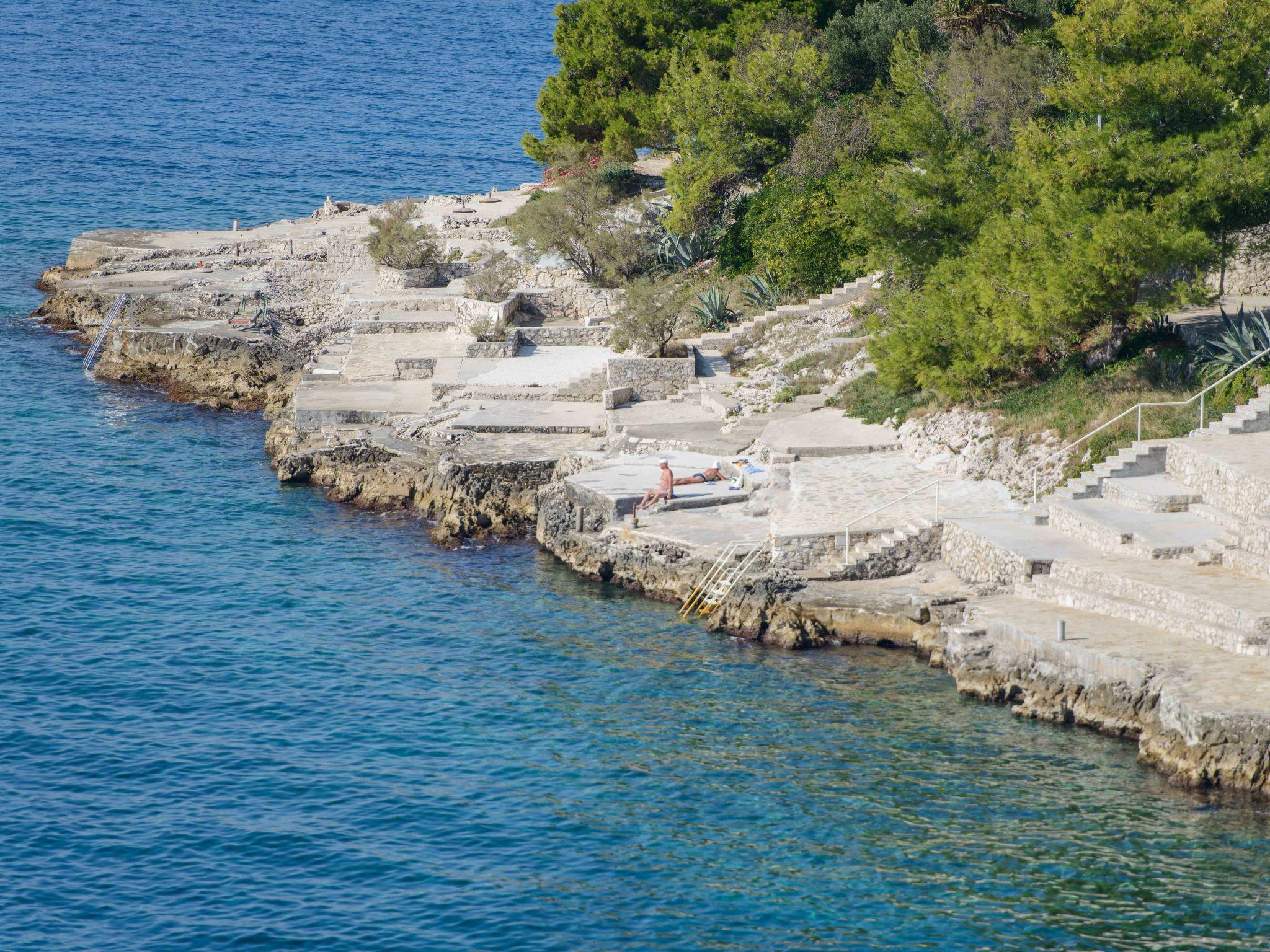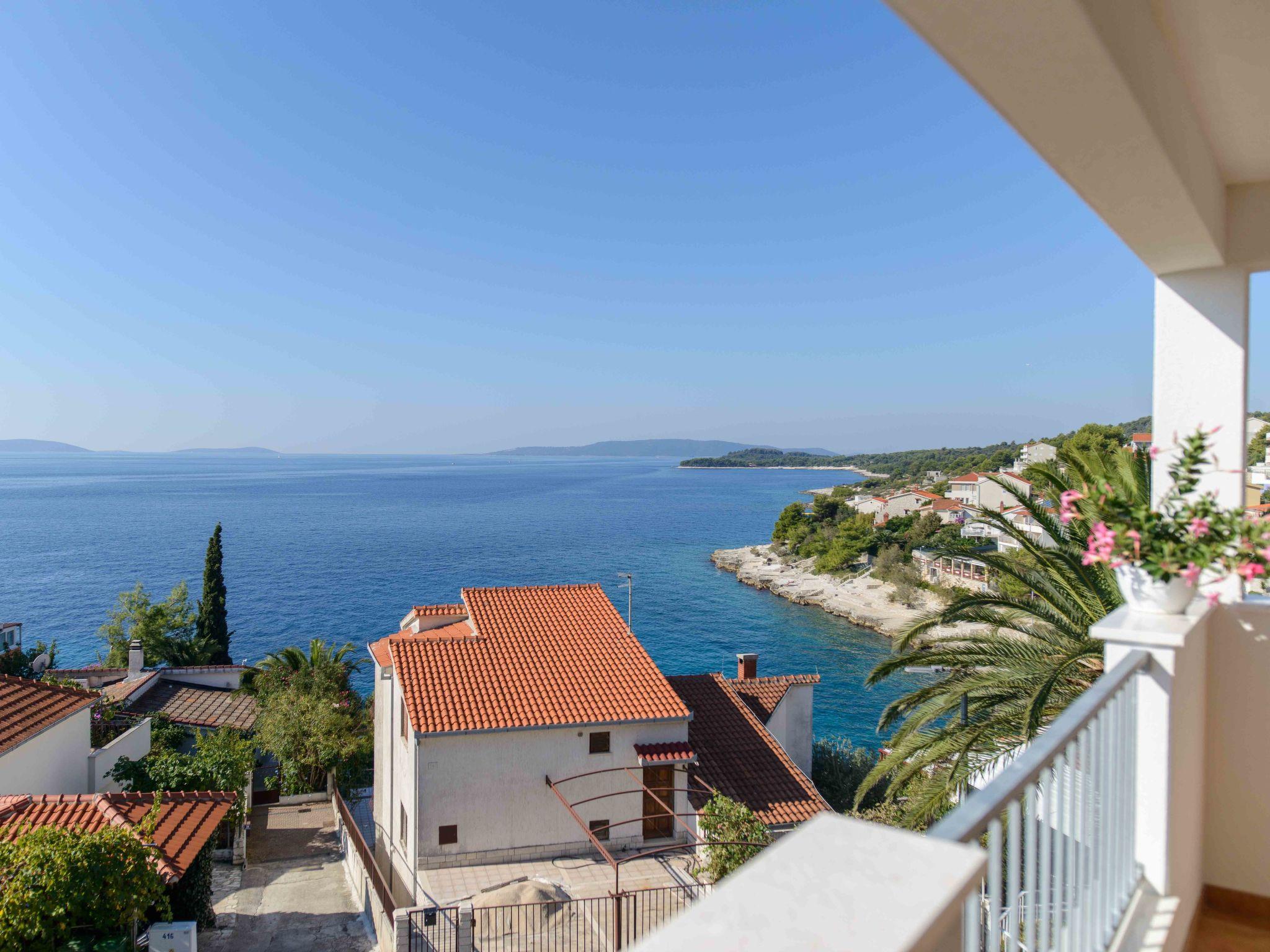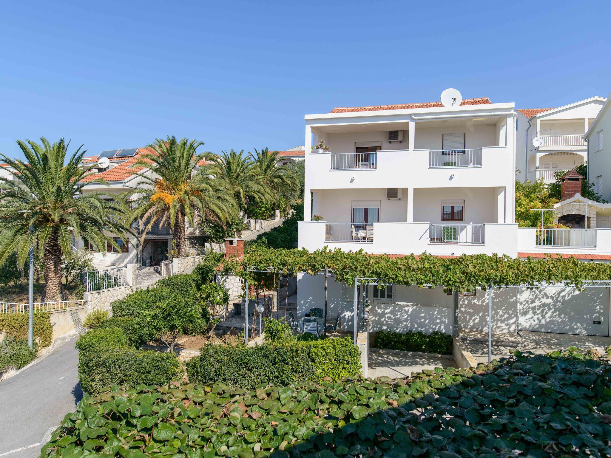 Okrug Gornji 6 km from Trogir: 3-family house "Lucija". 1 km from the centre of Okrug Gornji, in a quiet, sunny, elevated position, 100 m from the sea, 100 m from the beach. For shared use: outdoor shower, barbecue. In the house: internet access, washing machine. Parking at the house on the premises, single garage (extra). Shop 200 m, restaurant 1 km, café 1 km, bus stop 1.7 km, pebble beach 500 m, rocky beach 100 m. Please note: Additional accommodations can be booked.