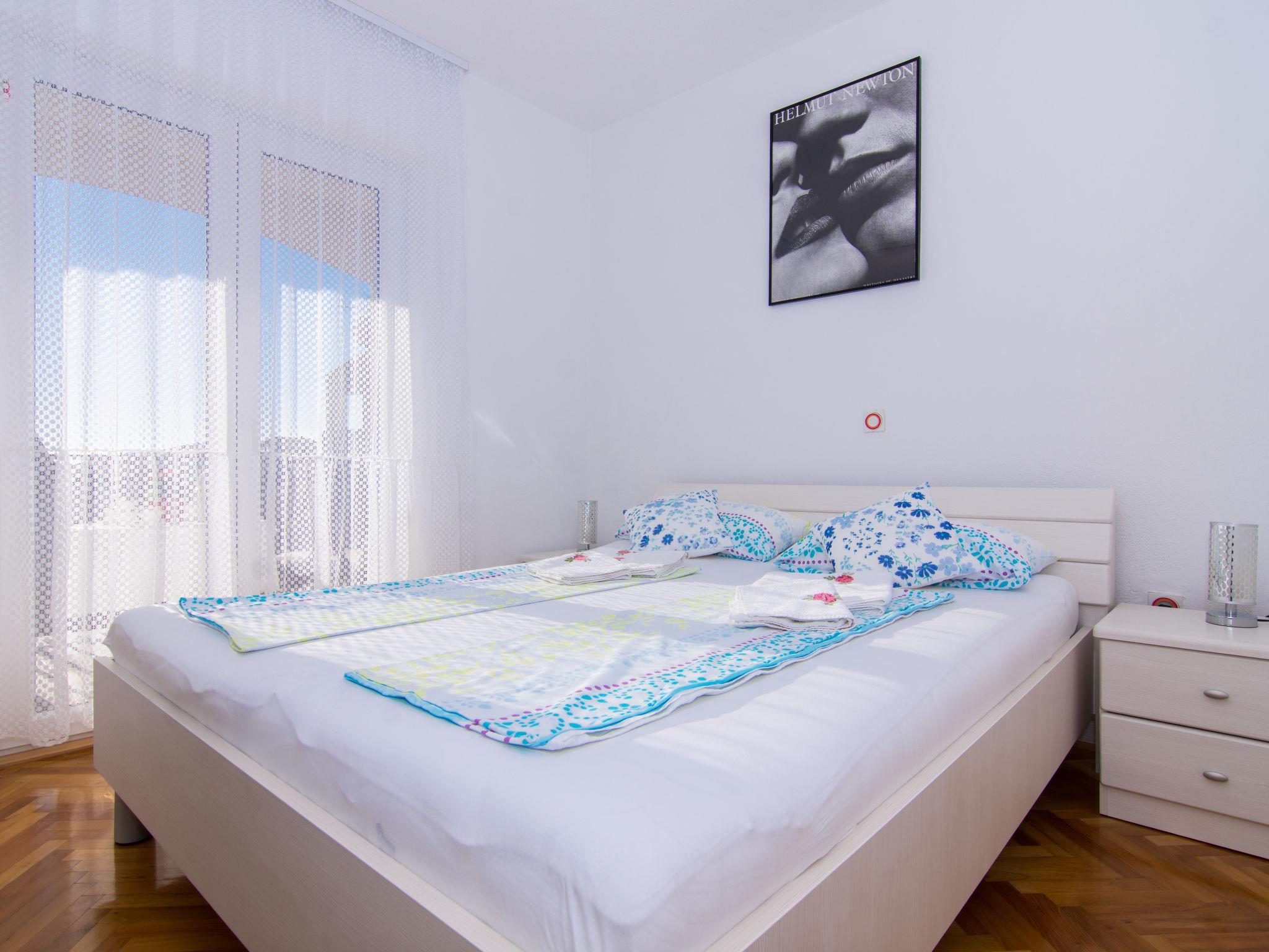 3-room apartment 80 m2 on 1st floor. Living/dining room with satellite TV and air conditioning. Exit to the balcony. 1 room with 1 double bed (2 x 80 cm, length 200 cm). 1 room with 1 double bed (2 x 80 cm, length 200 cm), satellite TV. Exit to the balcony. Open kitchen (oven, dishwasher, 4 induction hot plates, toaster, kettle, microwave, freezer, electric coffee machine, cooking island). Exit to the balcony. Shower/WC. Floor heating. Balcony 19 m2. Balcony furniture. Beautiful view of the sea. Facilities: mosquito net, hair dryer. Internet (WiFi, free). Please note: smoke alarm.