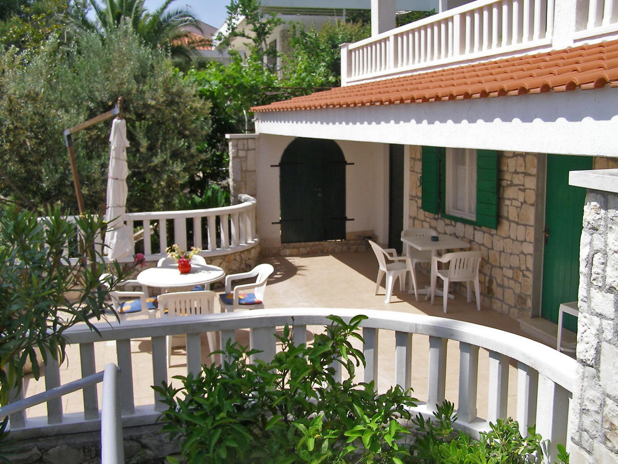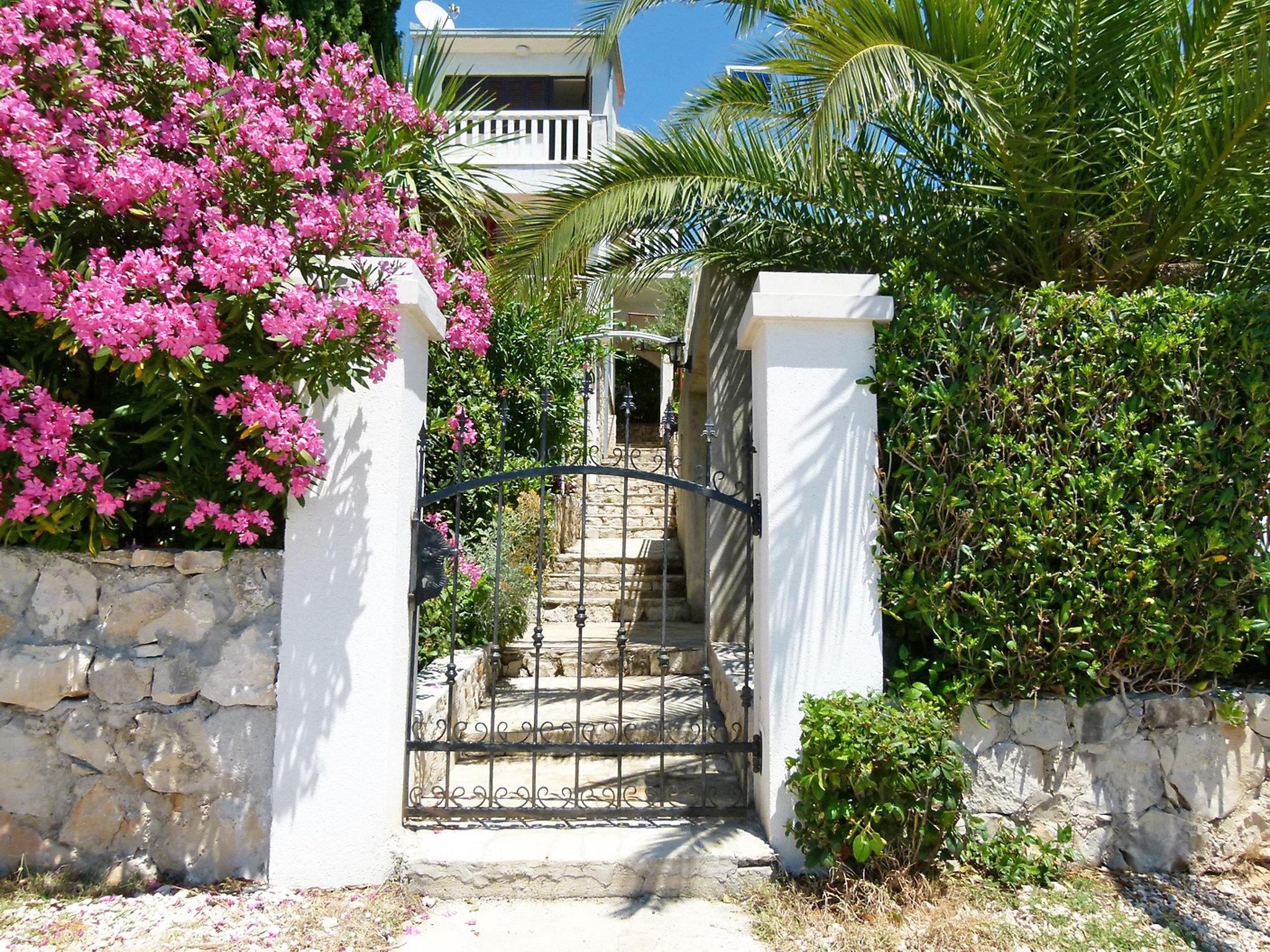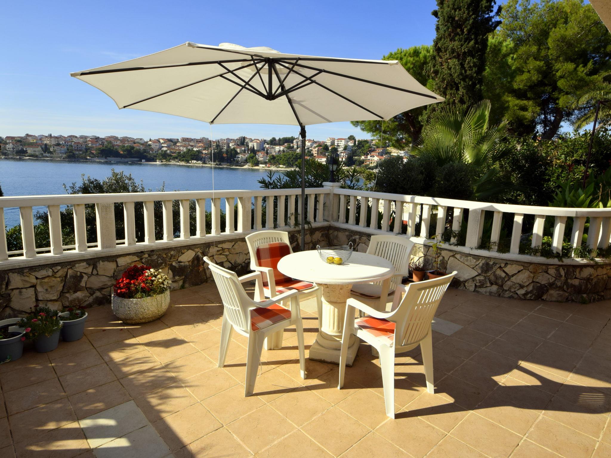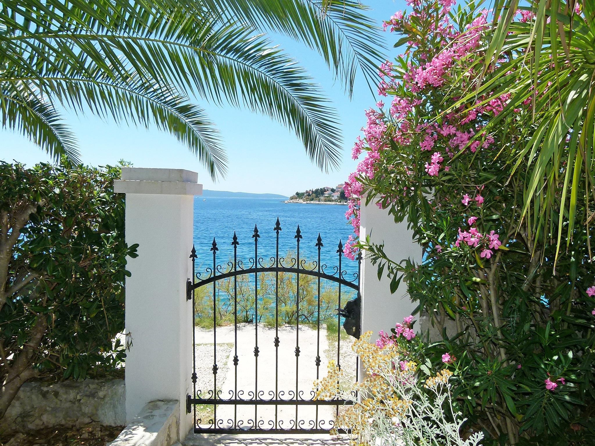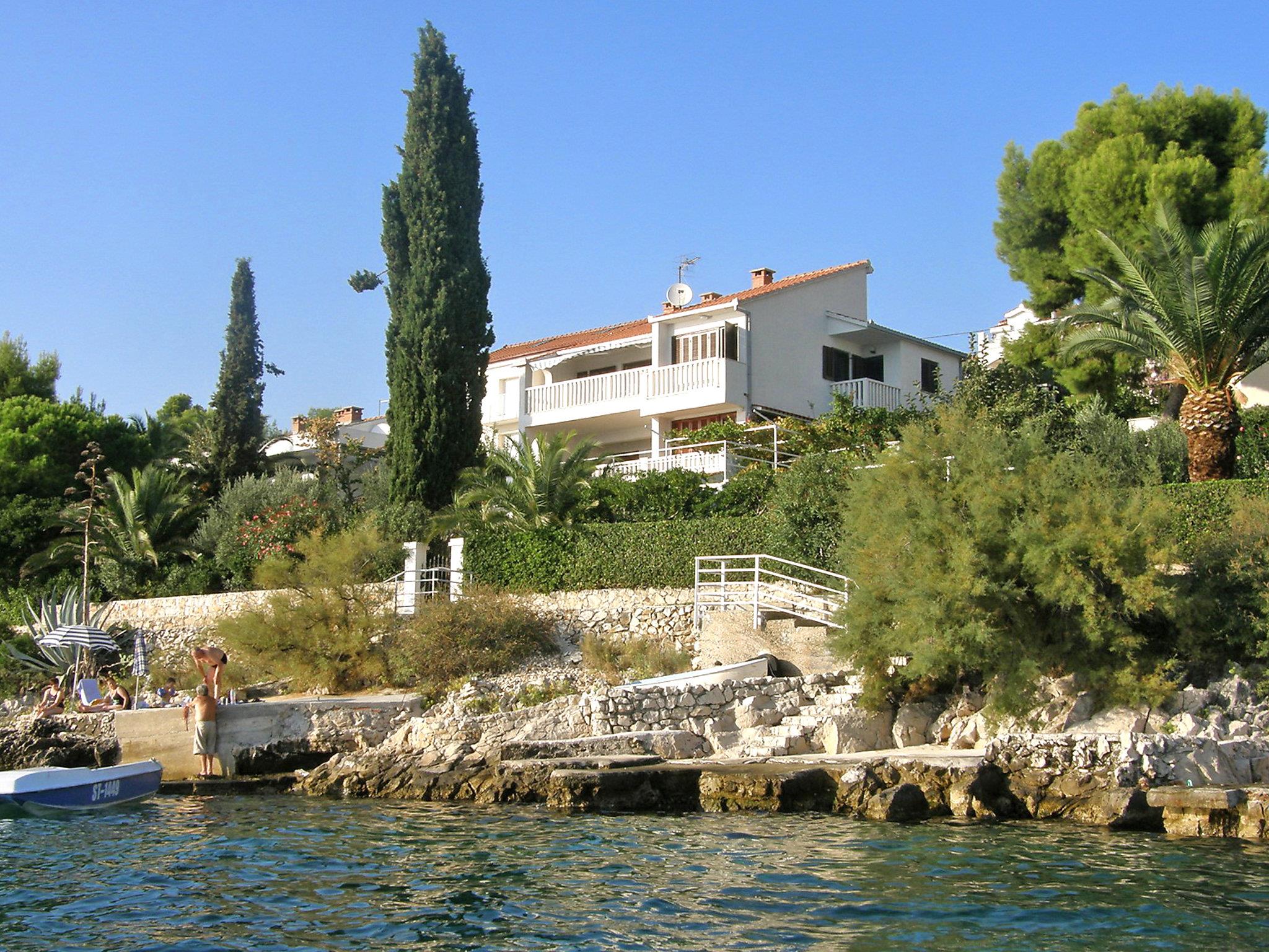 Okrug gornji (Ciovo) 5 km from Trogir: Beautiful, comfortable 2-family house "Tija". In the district of Mavarstica 1.5 km from the centre of Okrug gornji, in a sunny position, 20 m from the sea, south facing position. For shared use: property 700 m2 (fenced). Outdoor shower. Private: garden furniture. In the house: internet access. Parking (for 2 cars) at the house on the premises. Shop 1.5 km, restaurant 300 m, bus stop 1.7 km, pebble beach 400 m, rocky beach 20 m, diving center 500 m.