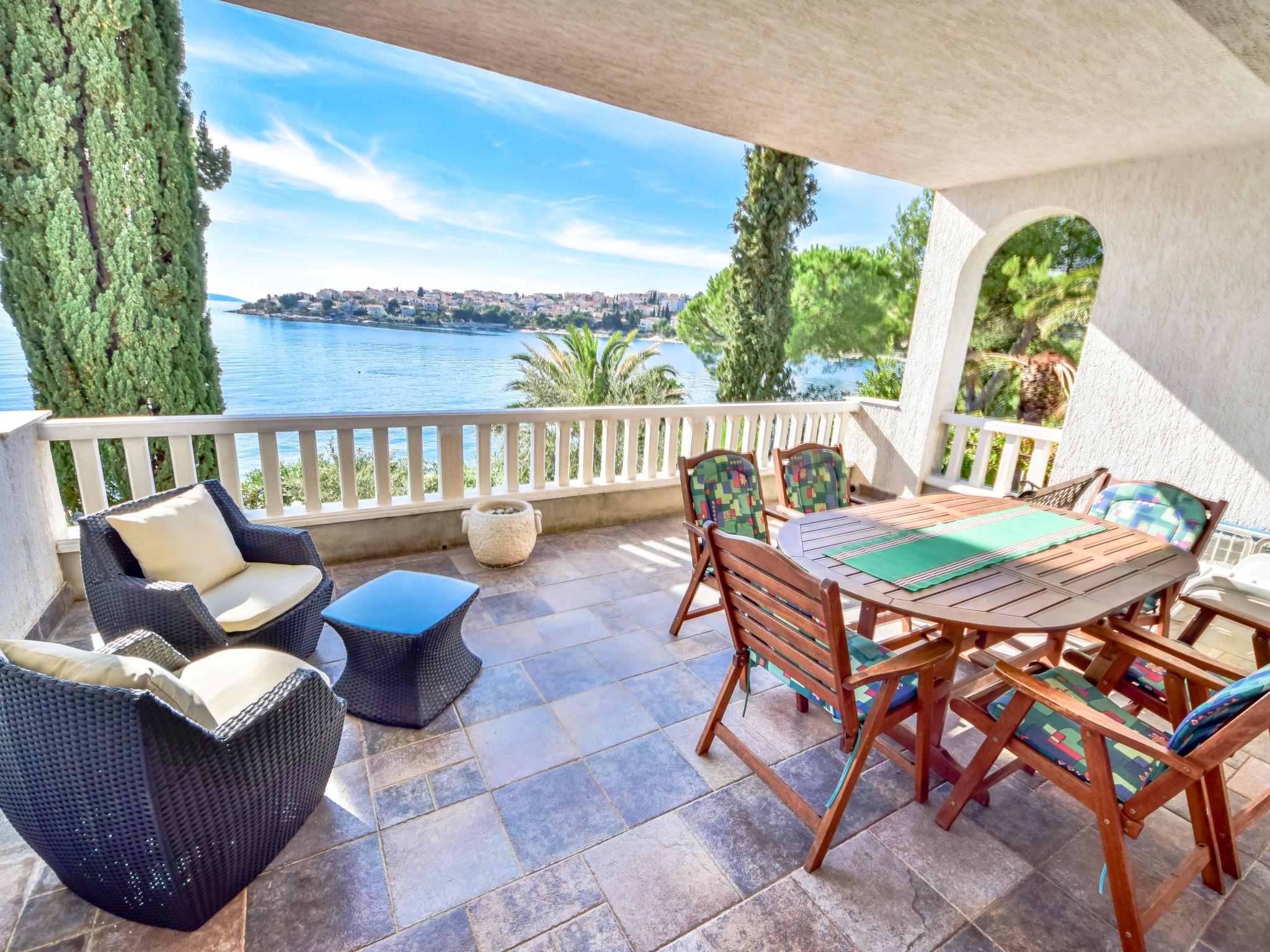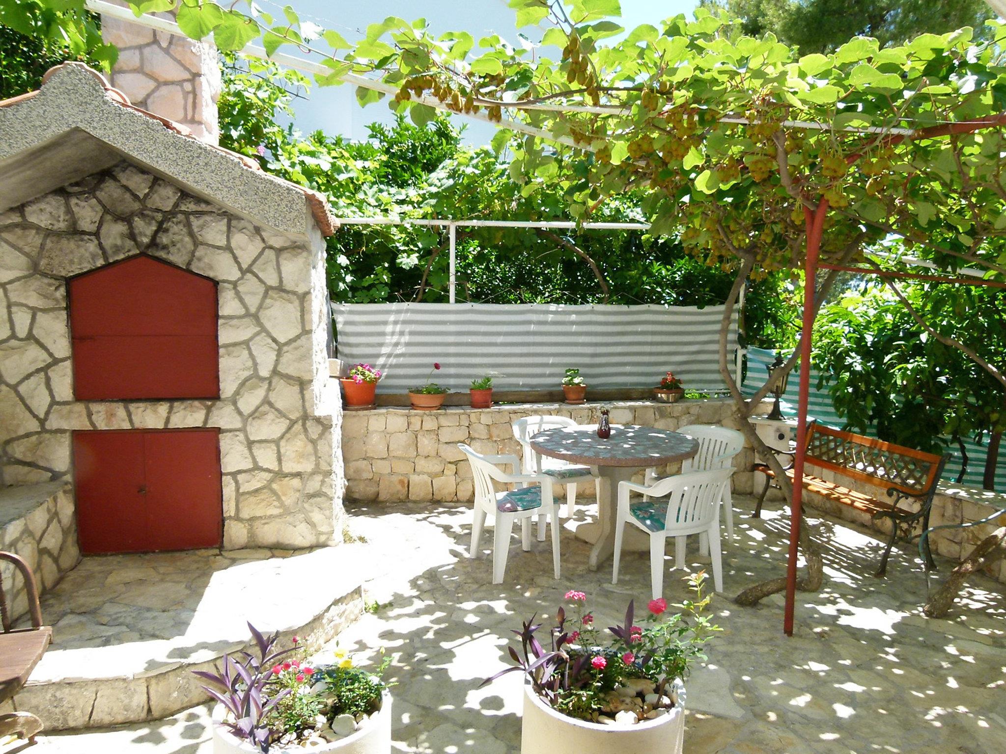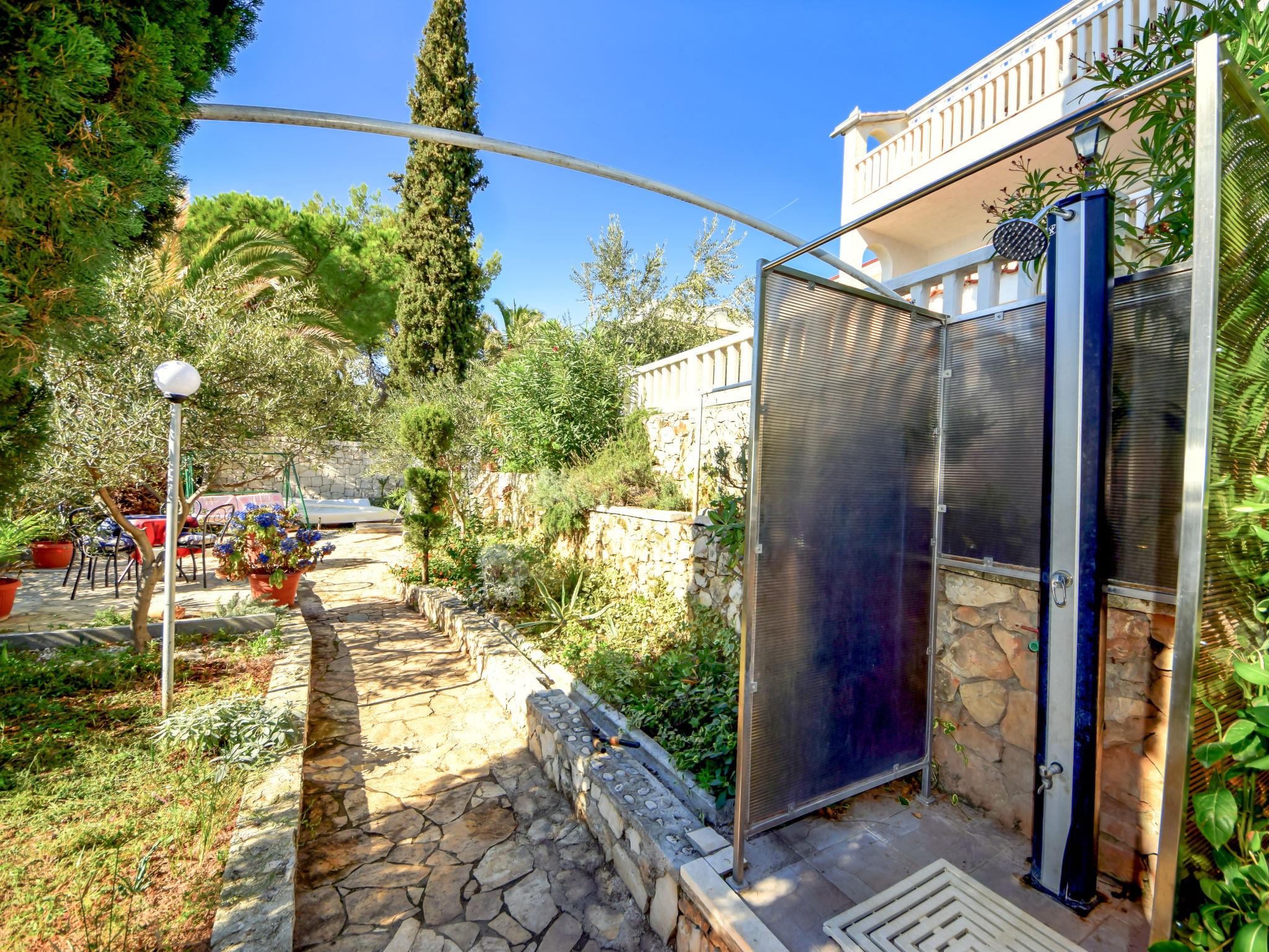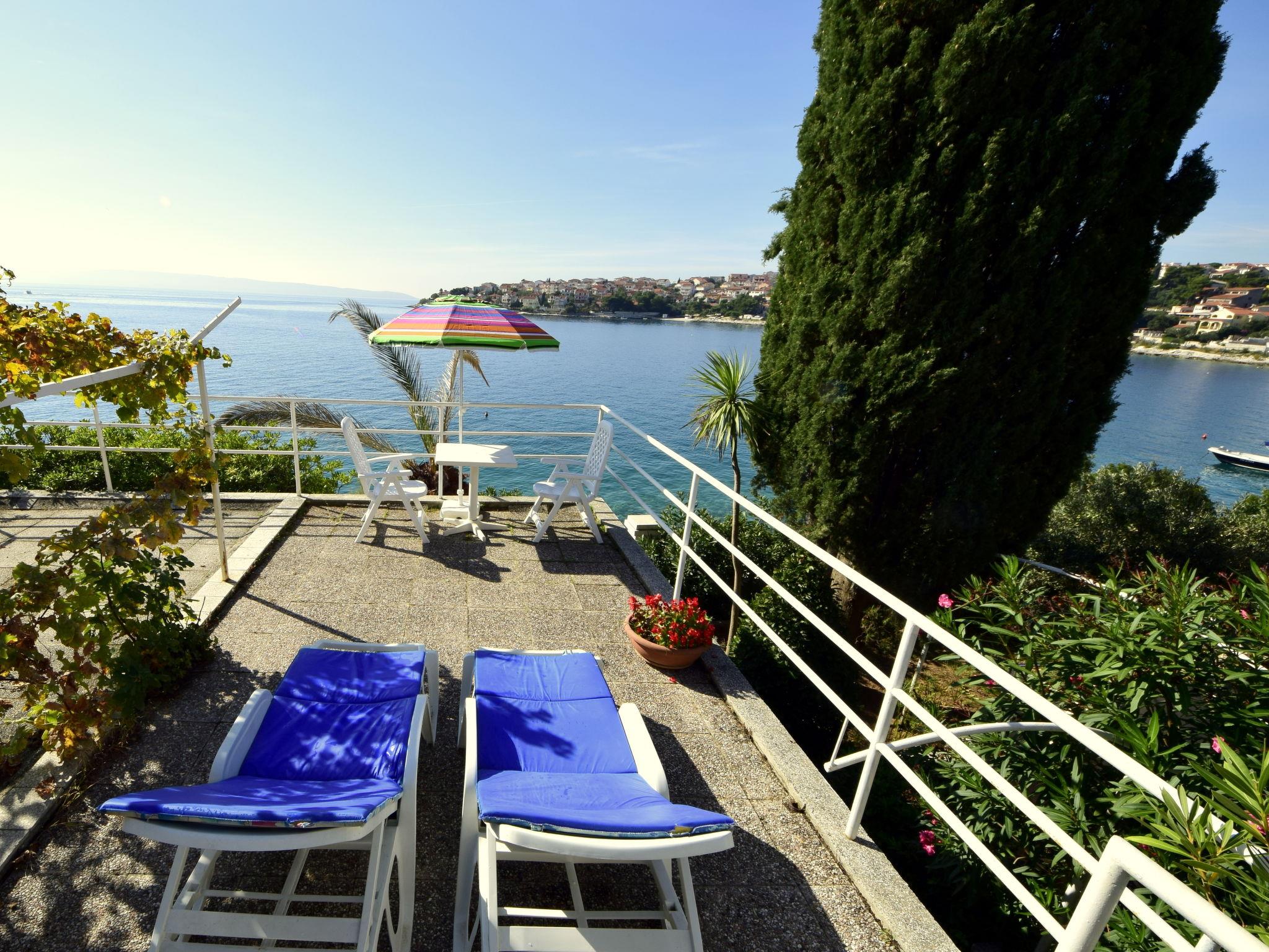Okrug gornji (Ciovo) 5 km from Trogir: Beautiful, comfortable 2-family house "Tija". In the district of Mavarstica 1.5 km from the centre of Okrug gornji, in a sunny position, 20 m from the sea, south facing position. For shared use: property 700 m2 (fenced). Outdoor shower. Private: garden furniture. In the house: internet access. Parking (for 2 cars) at the house on the premises. Shop 1.5 km, restaurant 300 m, bus stop 1.7 km, pebble beach 400 m, rocky beach 20 m, diving center 500 m.
