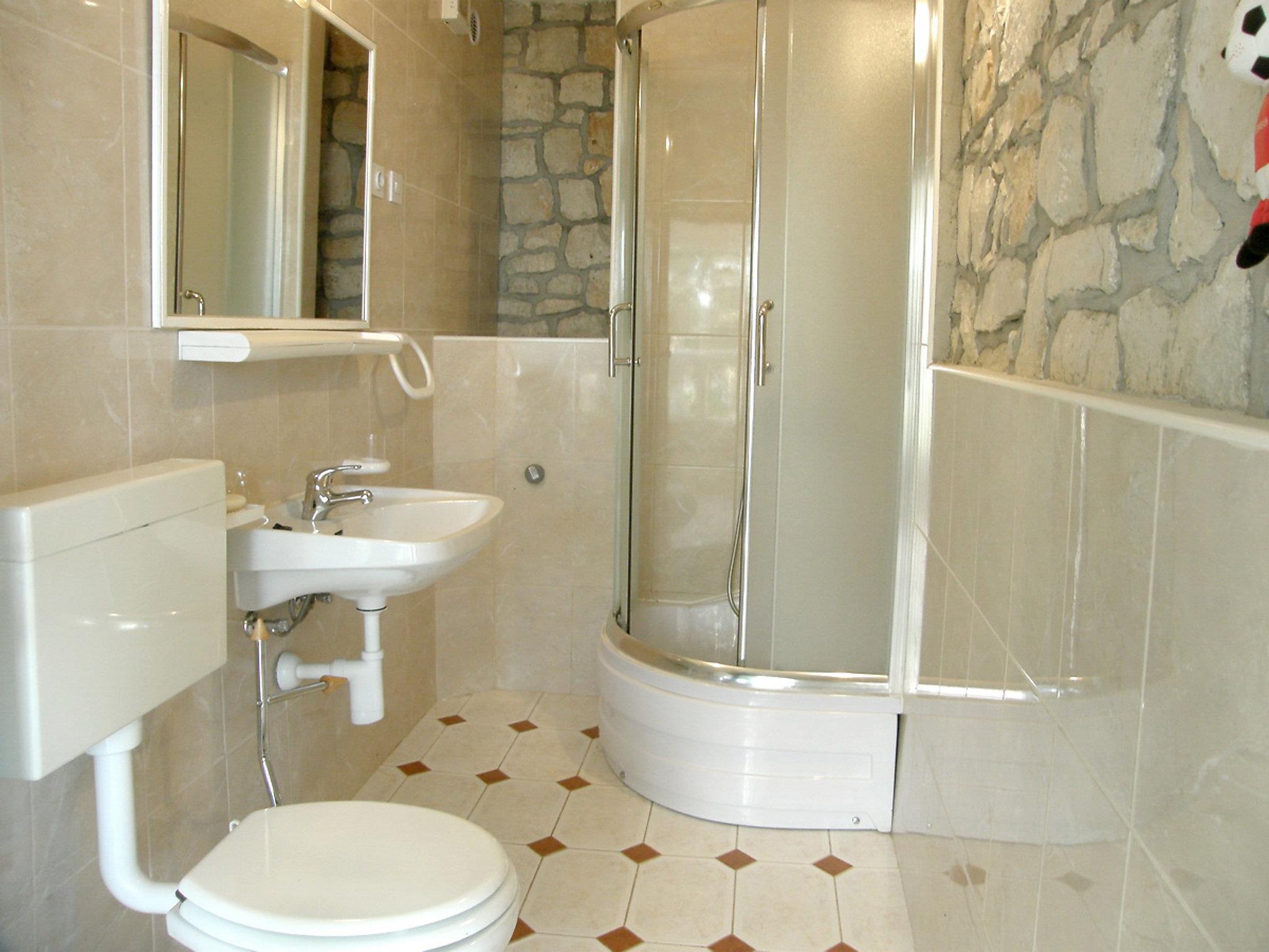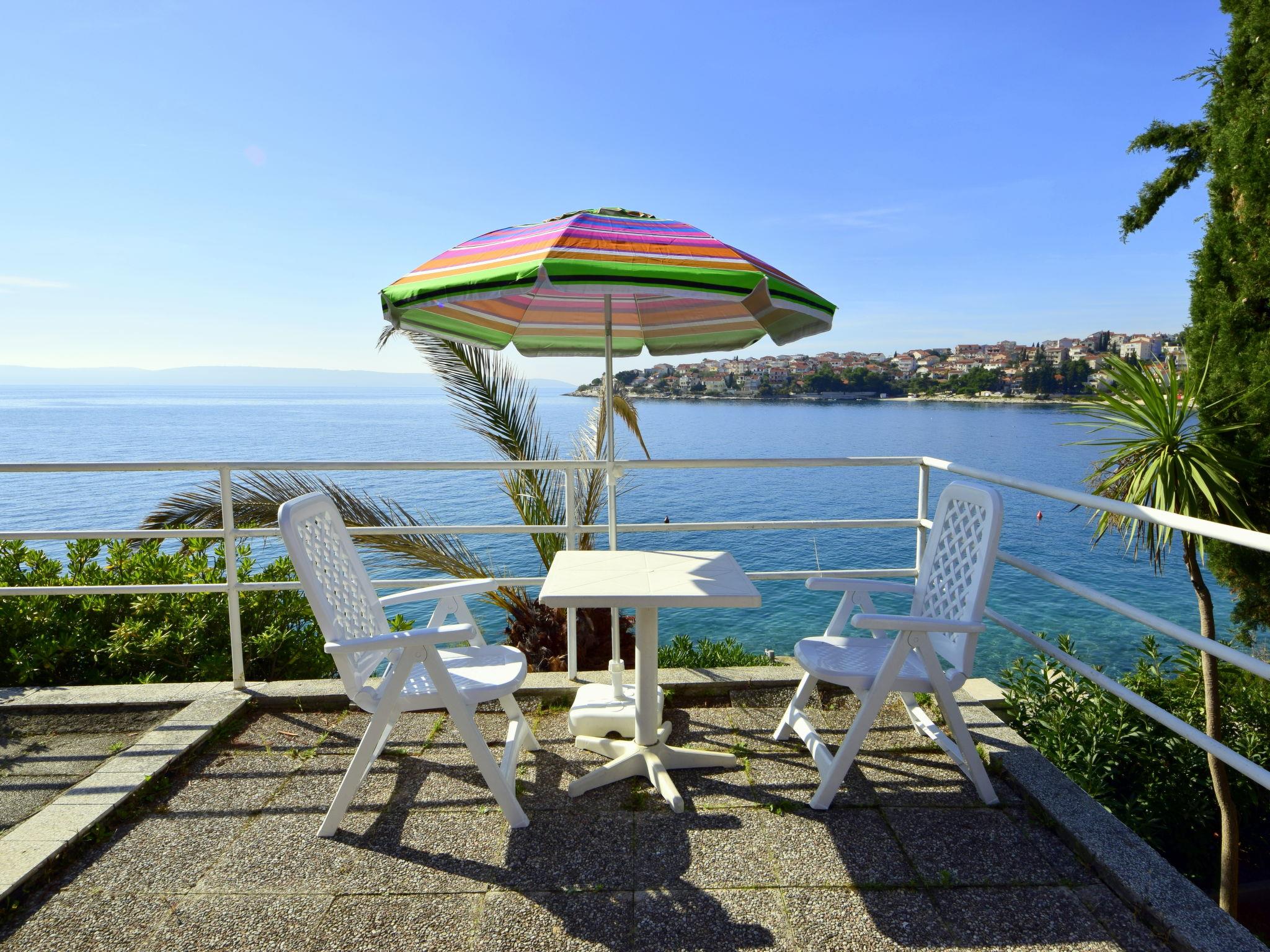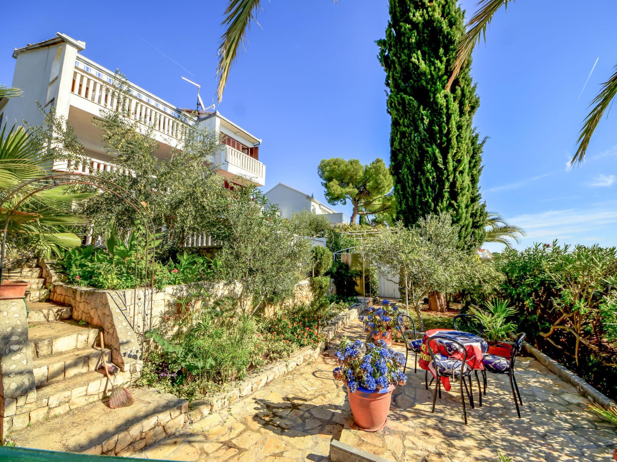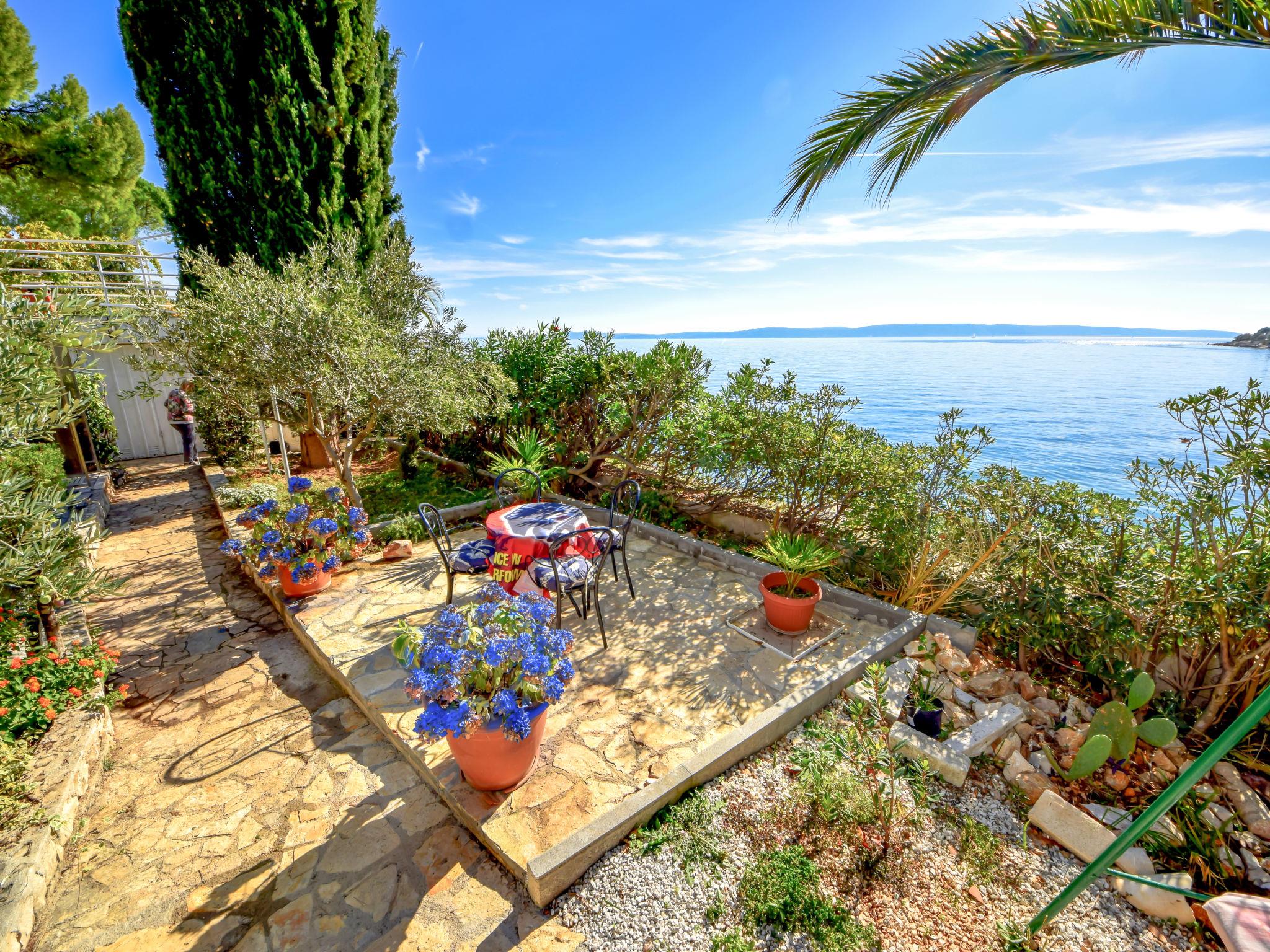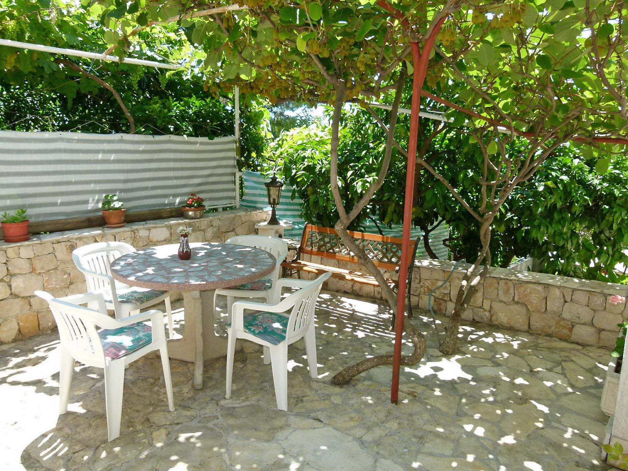 Okrug gornji (Ciovo) 5 km from Trogir: Beautiful, comfortable 2-family house "Tija". In the district of Mavarstica 1.5 km from the centre of Okrug gornji, in a sunny position, 20 m from the sea, south facing position. For shared use: property 700 m2 (fenced). Outdoor shower. Private: garden furniture. In the house: internet access. Parking (for 2 cars) at the house on the premises. Shop 1.5 km, restaurant 300 m, bus stop 1.7 km, pebble beach 400 m, rocky beach 20 m, diving center 500 m.