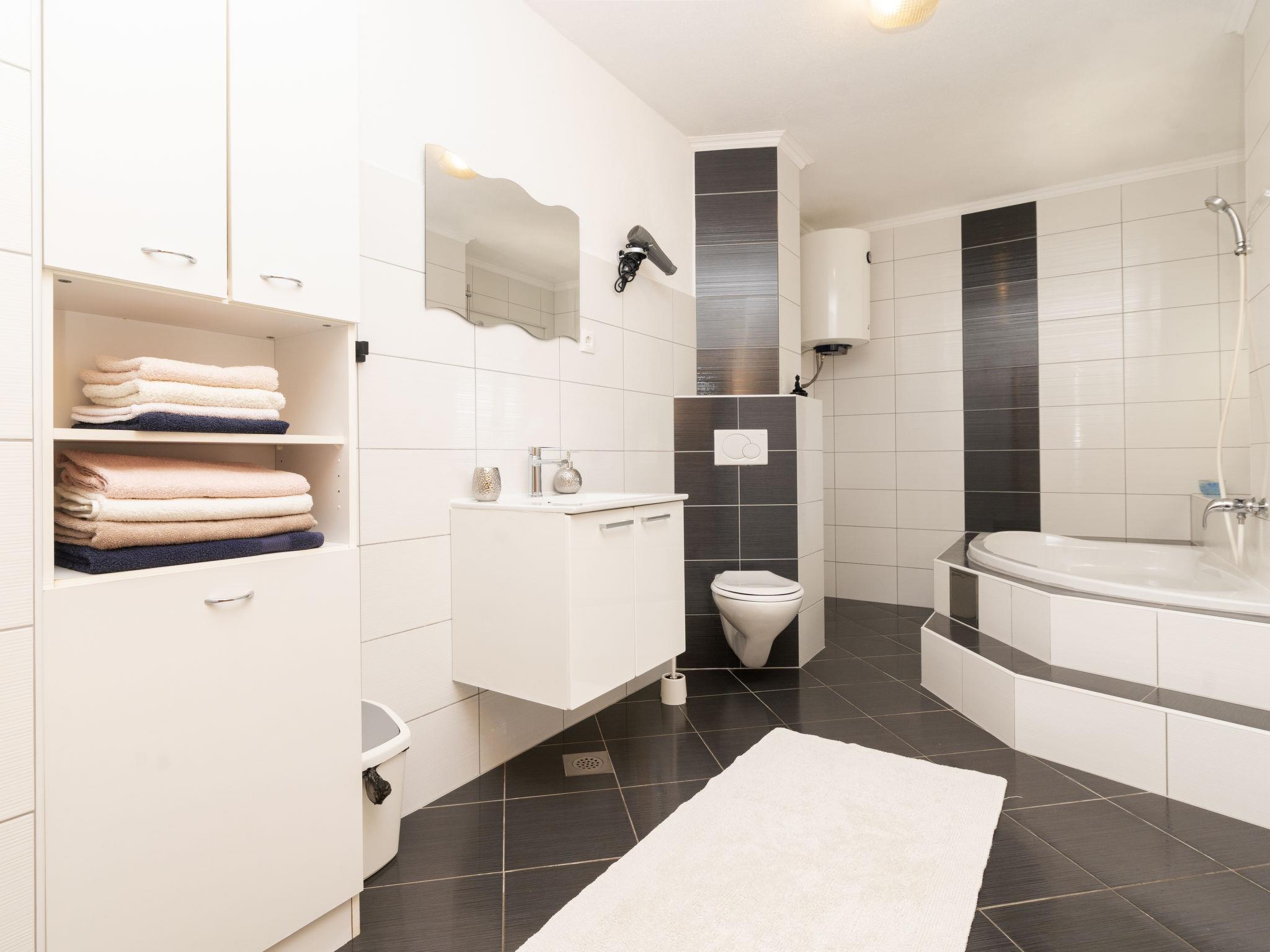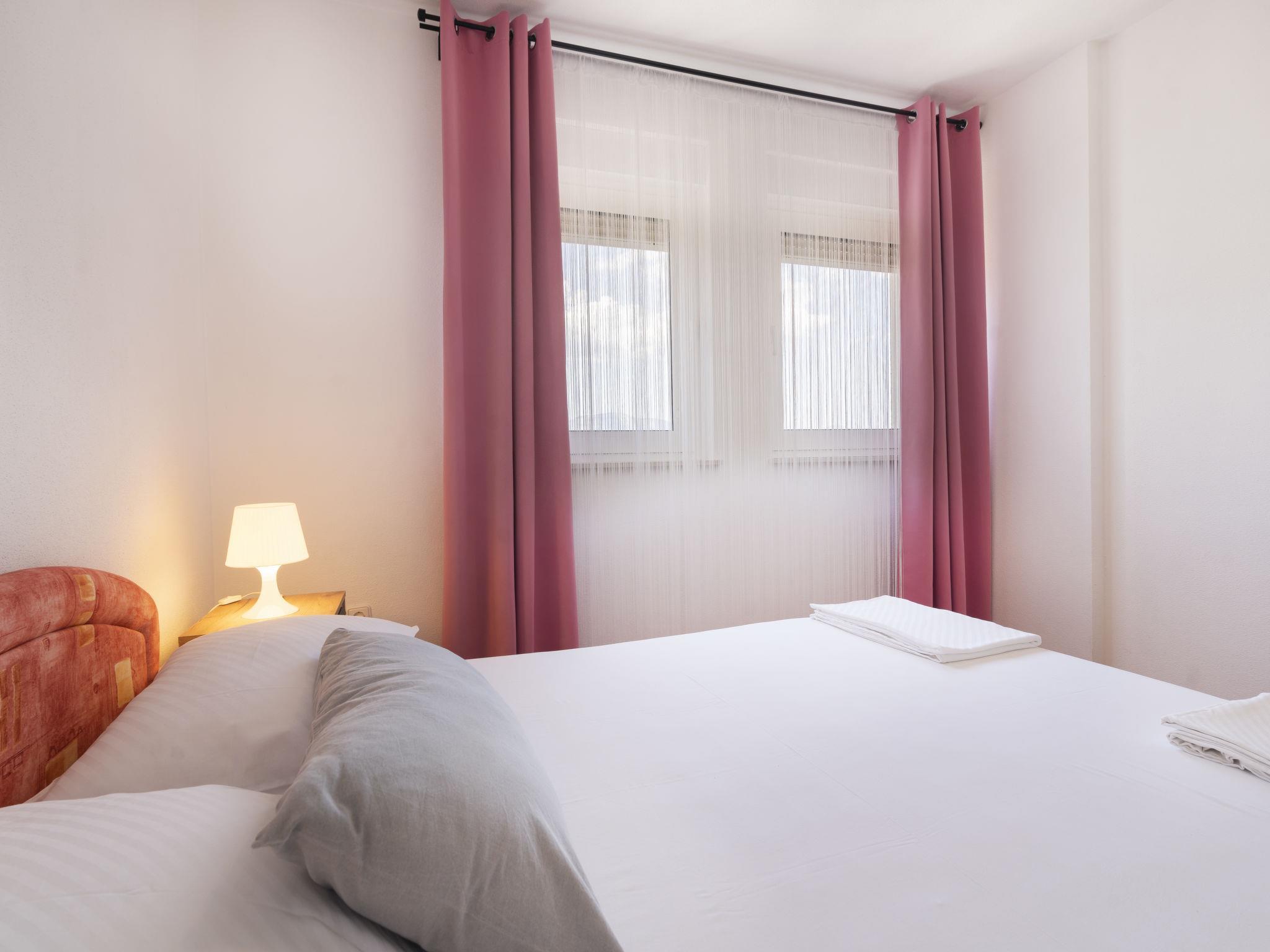 3-room apartment 55 m2 on 2nd floor, west facing position. Living/dining room with satellite TV and air conditioning. Exit to the balcony. 1 room with 1 french bed (160 cm, length 200 cm). 1 room with 1 french bed (160 cm, length 190 cm). Exit to the balcony. Open kitchen (2 hot plates, dishwasher, microwave, freezer). Bath/WC with corner bath. Balcony 5 m2, balcony 3 m2. Balcony furniture. View of the sea. Facilities: hair dryer. Internet (WiFi, free).