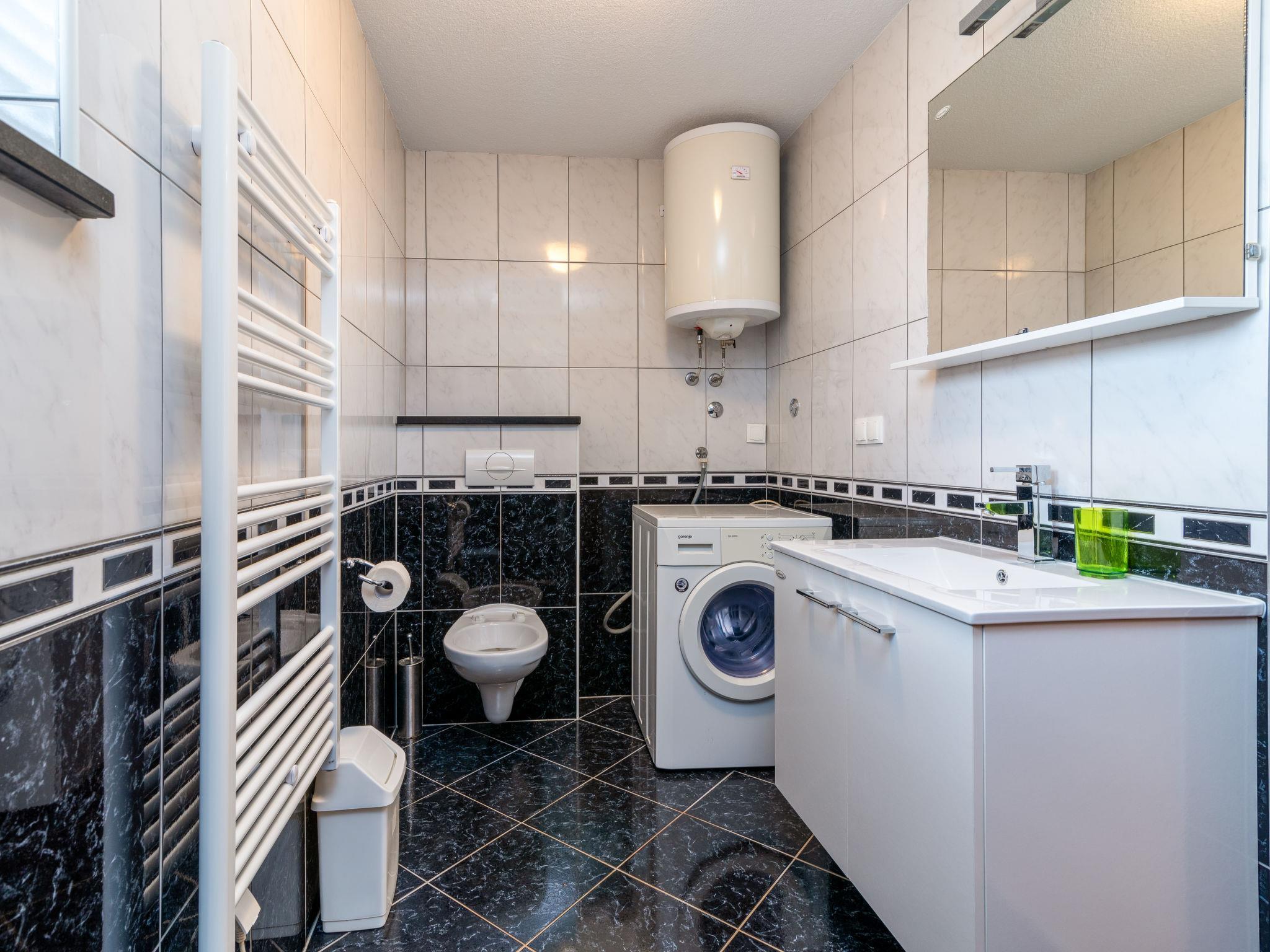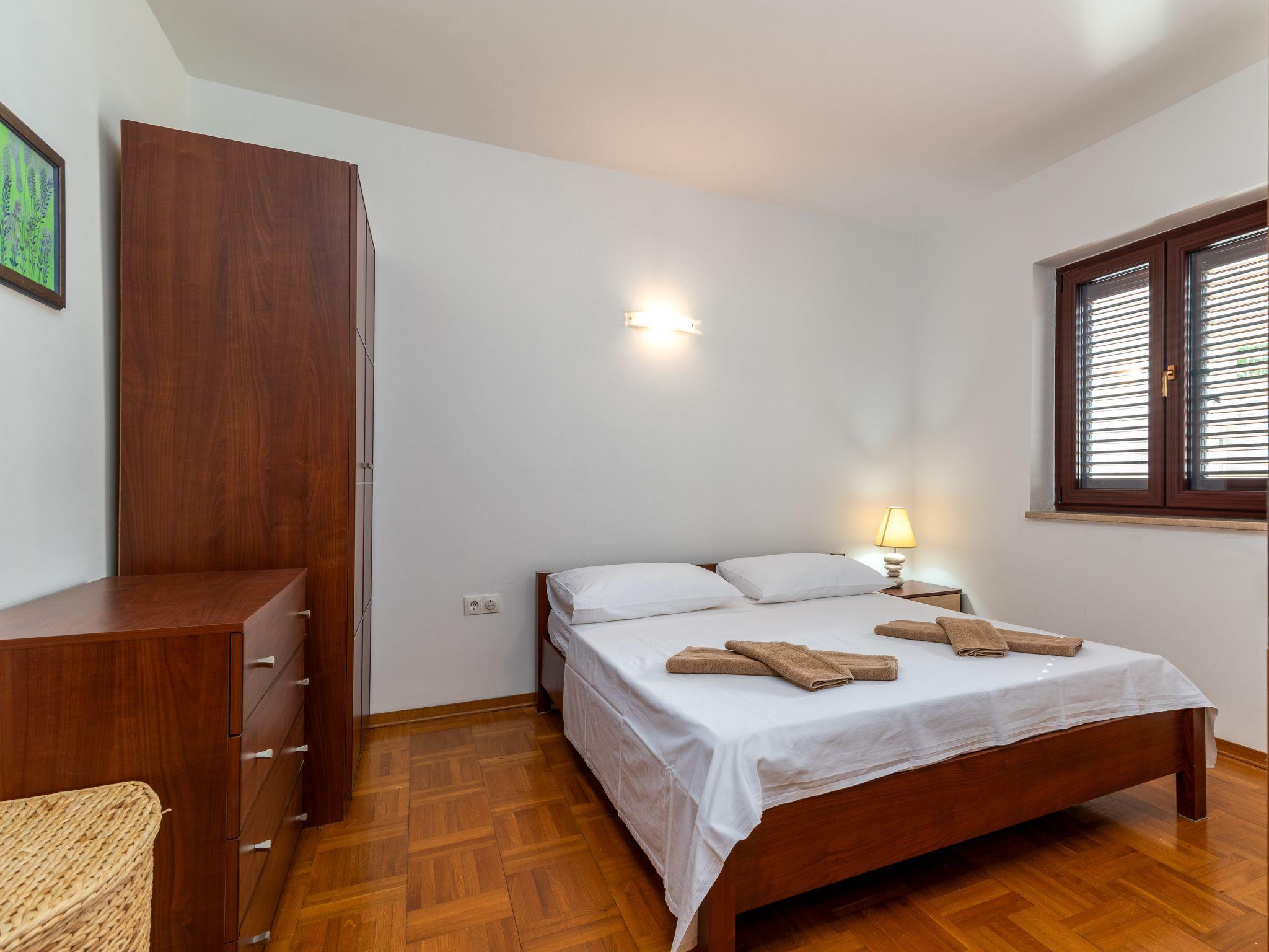 Slatine (Ciovo) 6 km from Trogir: Single-family house "Robert", 2 storeys. In a sunny, elevated position, 30 m from the sea, 30 m from the beach, road to cross, north facing position. For shared use: property 800 m2 (fenced), garden. Private: outdoor shower, terrace (5 m2), garden furniture, barbecue. In the house: internet access. Parking (for 3 cars) at the house on the premises. Shop 550 m, restaurant 350 m, bus stop 94 m, shingle beach 30 m, rocky beach 50 m. Please note: airfield 9 km from the property.
