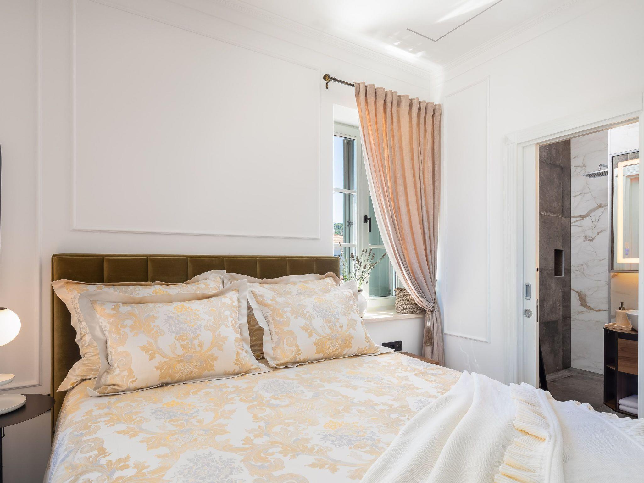 Venturing outside, the villa unveils its truly majestic outdoor living spaces. The centerpiece is the spacious infinity heated pool, complemented by a jacuzzi, inviting guests to relax and unwind while soaking in the serene atmosphere. For those who love al fresco dining, the outdoor kitchen with a barbecue is perfect for hosting memorable meals under the stars. The terrace, equipped with sun loungers, offers a tranquil spot to bask in the glorious Dalmatian sunshine.