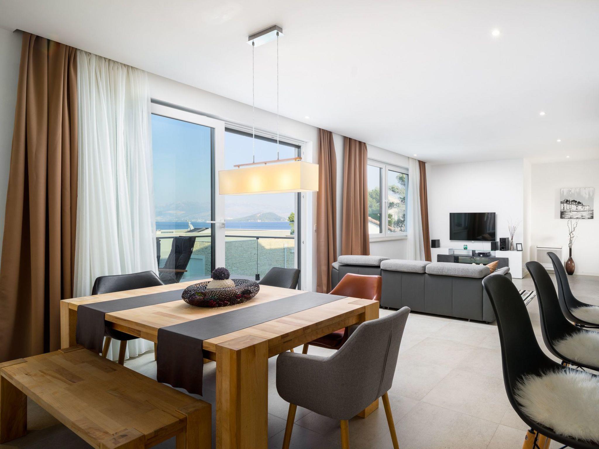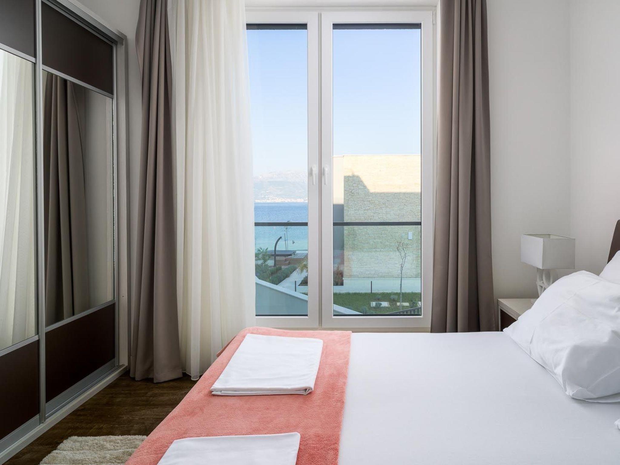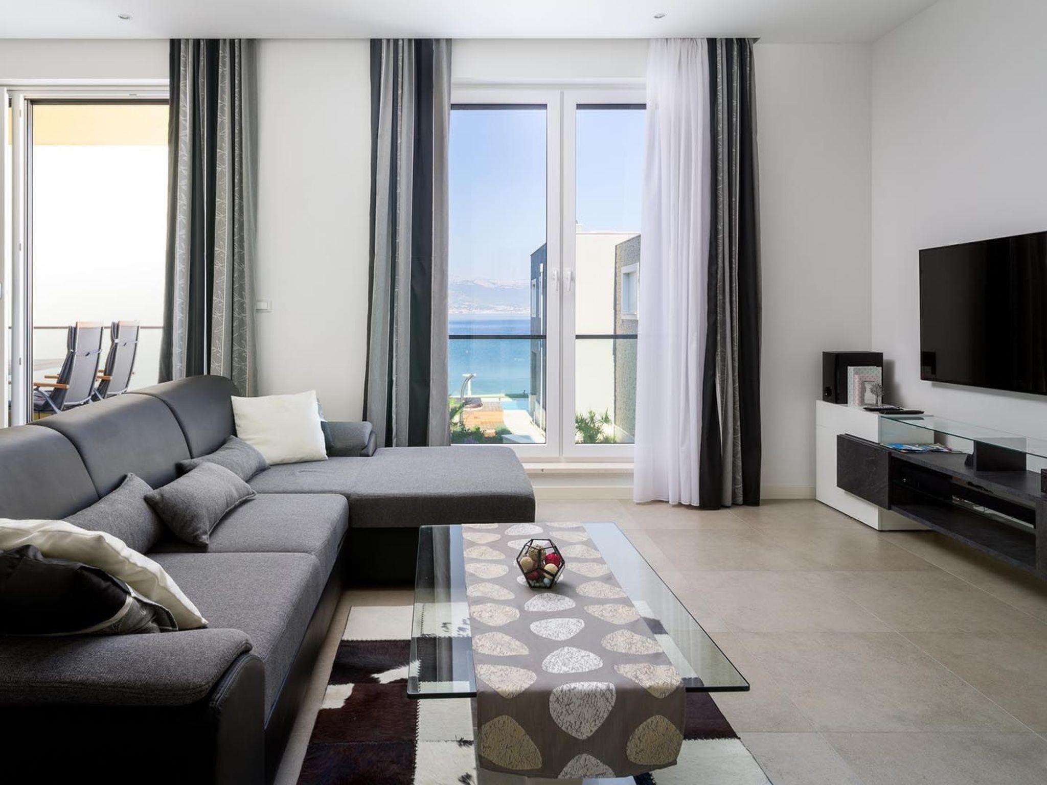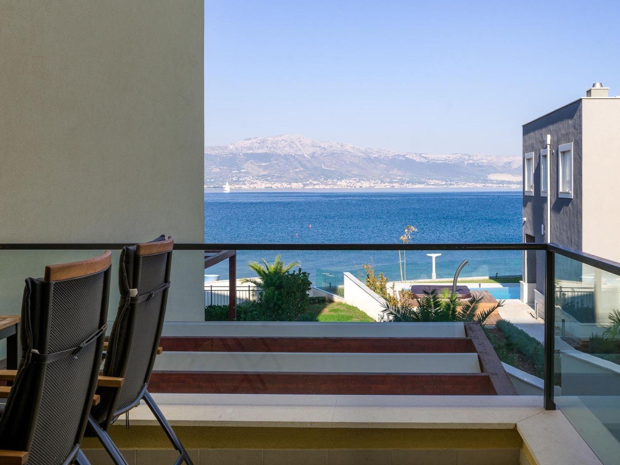 This superbly decorated and elegant villa is part of a newly built luxurious beachfront complex Golden, situated just 10 m away from the beautiful pebble beach and crystal clear sea with a stunning panoramic view of the coast, mountains and the city of Split.