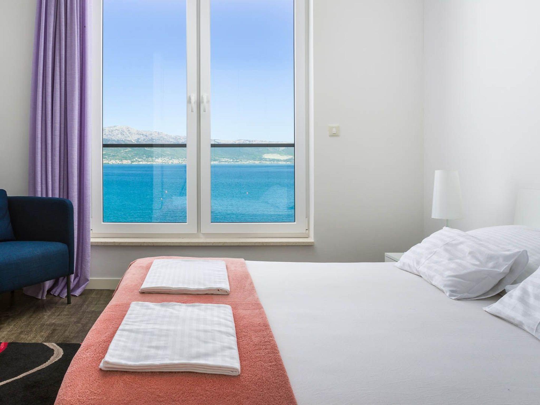 This superbly decorated apartment is part of a newly built luxurious beachfront complex Golden, situated just 10 m away from the beautiful pebble beach and crystal clear sea with a stunning panoramic view of the coast, mountains and the city of Split.