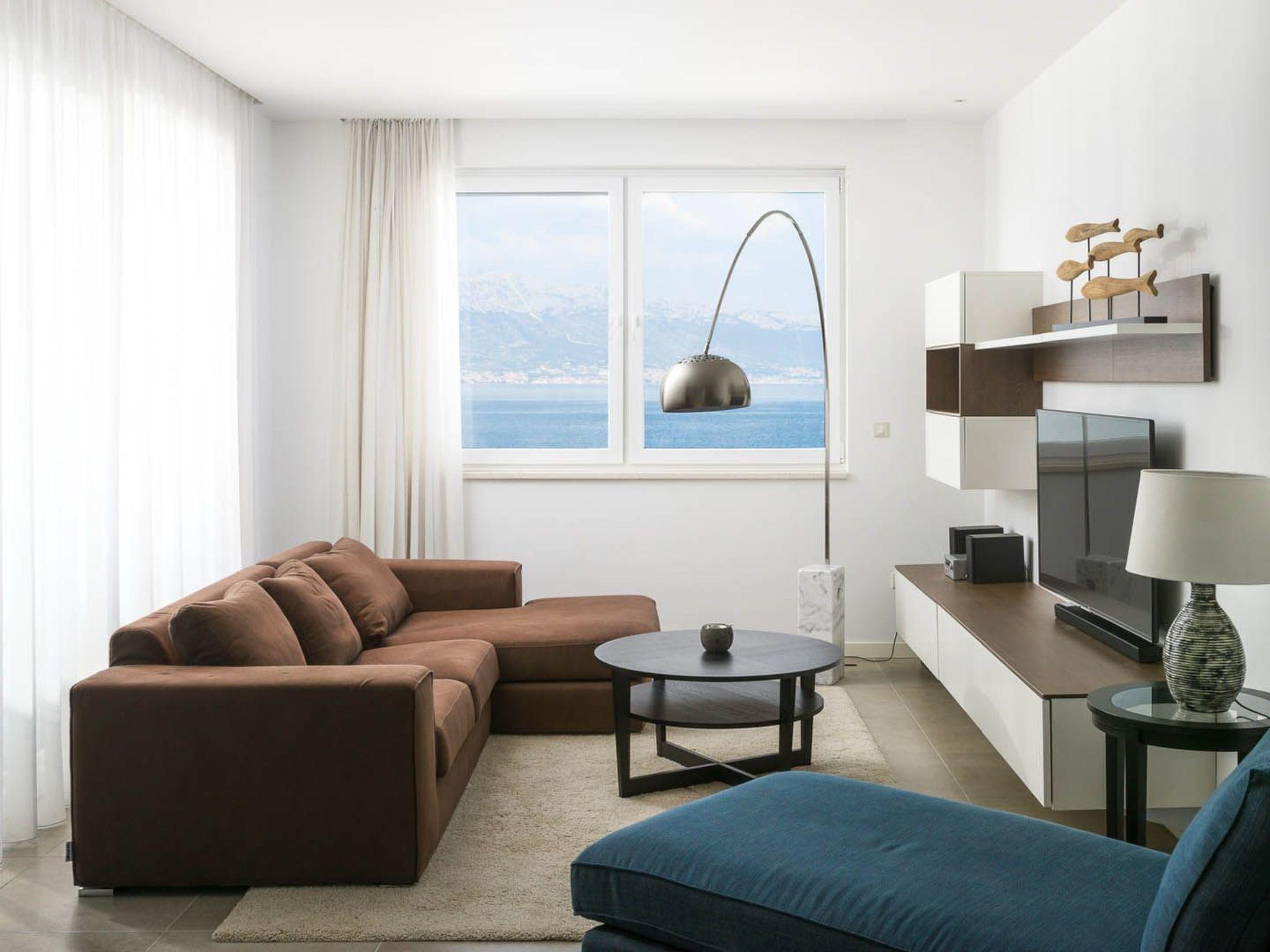 This superbly decorated apartment is part of a newly built luxurious beachfront complex Golden, situated just 10 m away from the beautiful pebble beach and crystal clear sea with a stunning panoramic view of the coast, mountains and the city of Split.