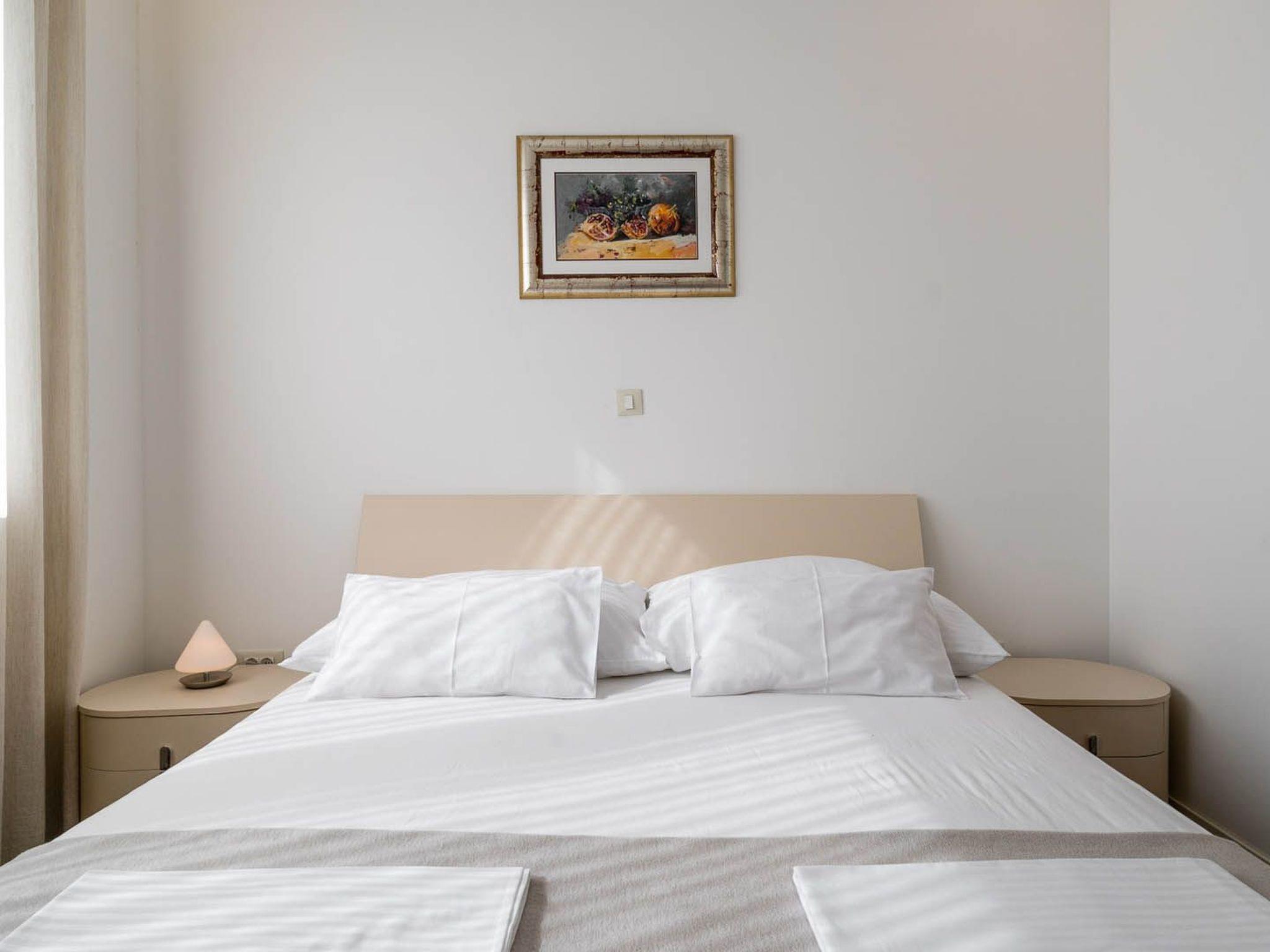 Luxurious apartment Golden A2 consists of 3 double bedrooms with adjoining bathrooms, contemporary living room, well equipped open concept kitchen and a spacious roof terrace with a breathtaking seaview. Sliding glass door leads from the living room to a beautiful seaview balcony equipped with outdoor furniture. The apartment is suitable accommodation for 6 persons. Apartment Golden A2 is fully air conditioned and equipped with SAT-TV, Wi-fi, safe, iron and ironing board, washing machine, electric outdoor barbecue, hair dryer, stove, oven, hood, refrigerator with freezer, dish washer, electric kettle and coffee maker. Baby cot and high chair, as well as berth for boats, are available on request.