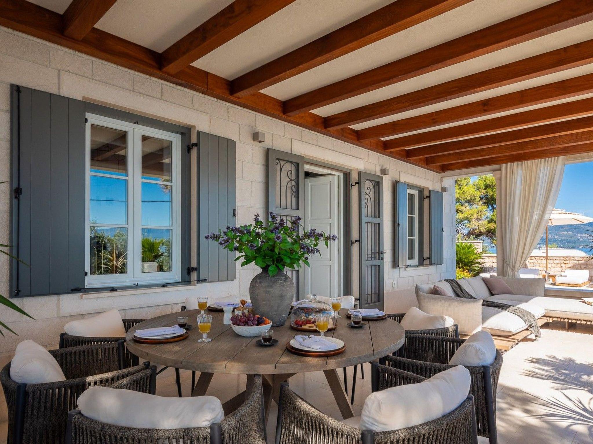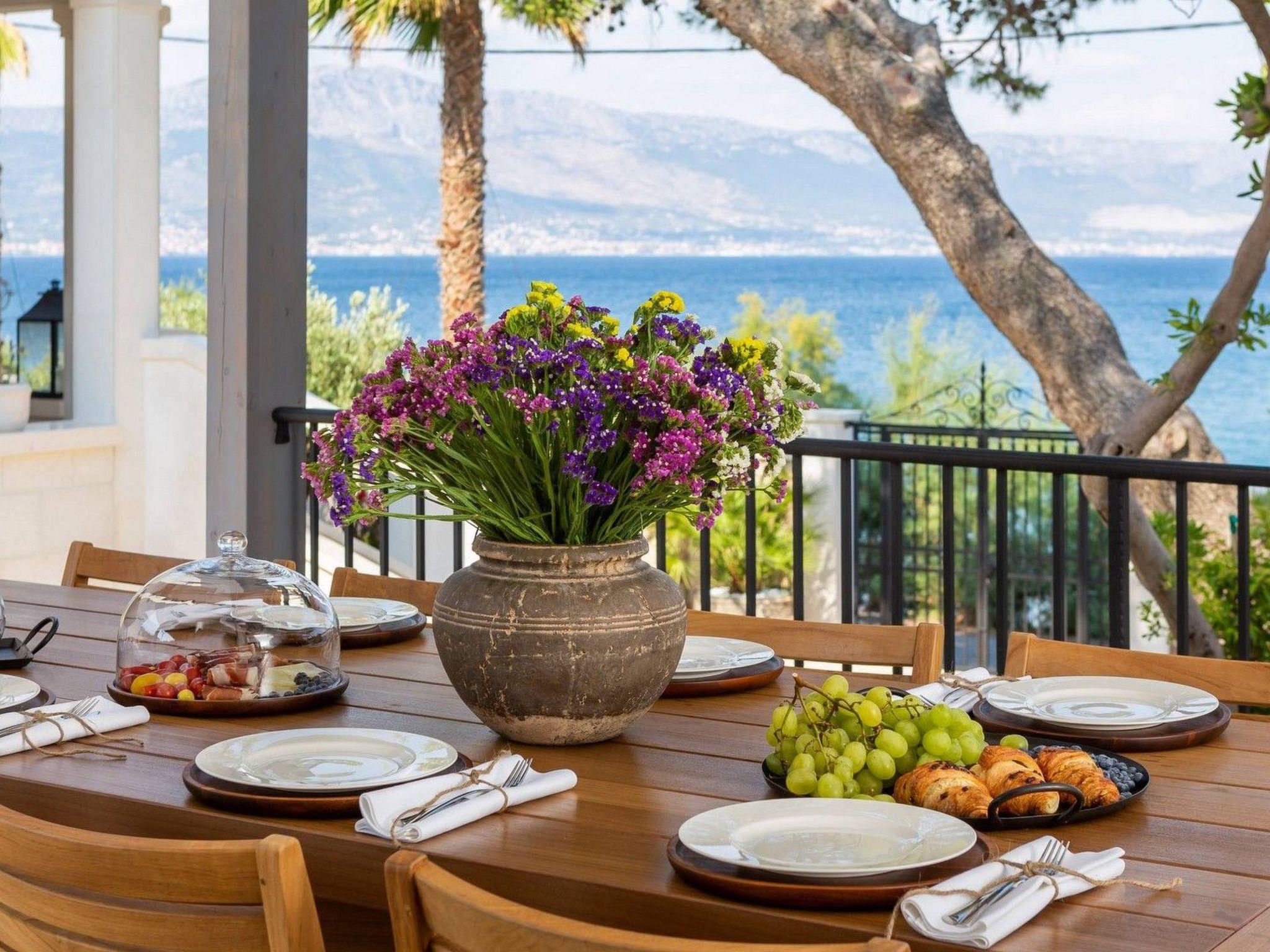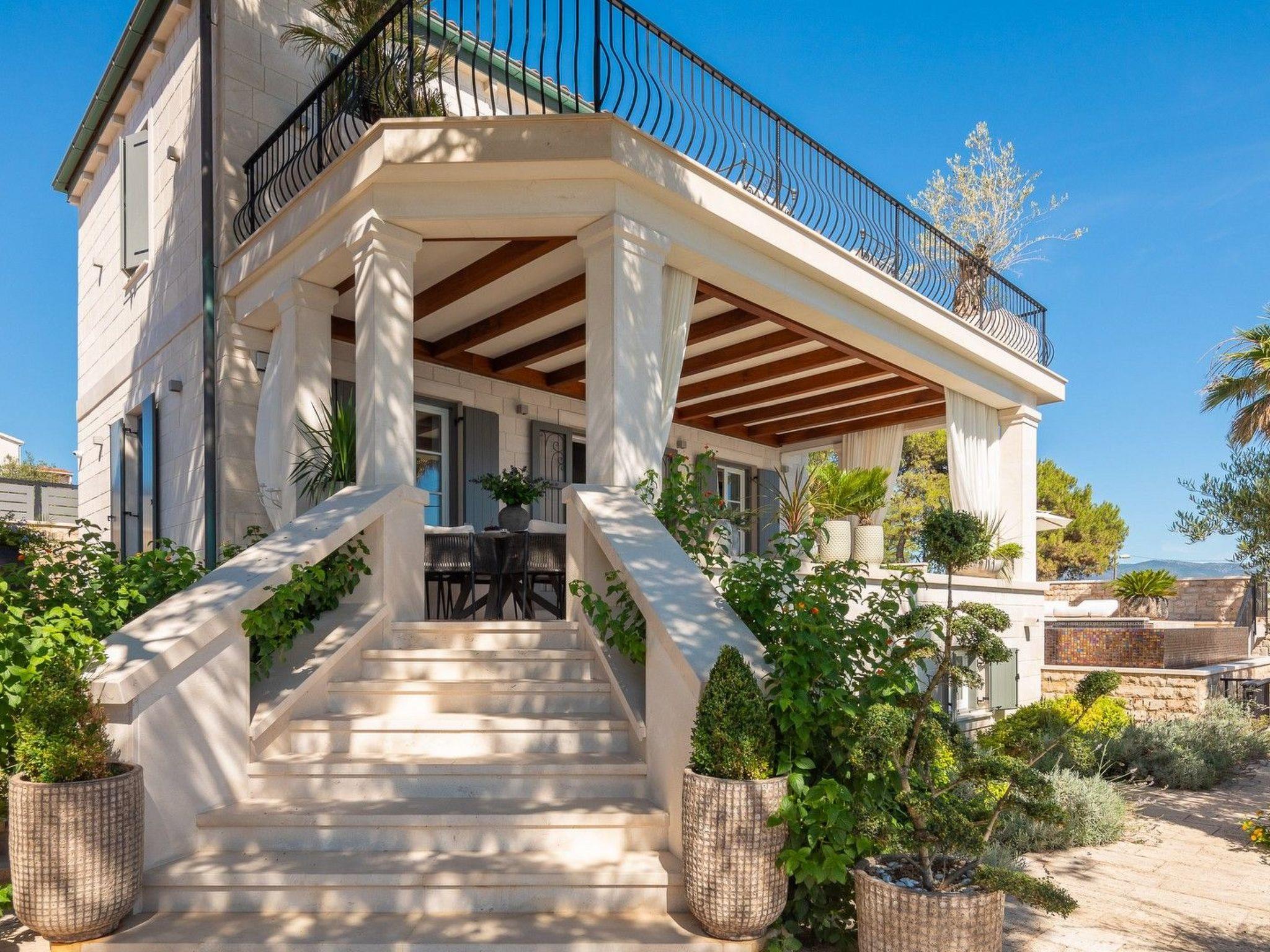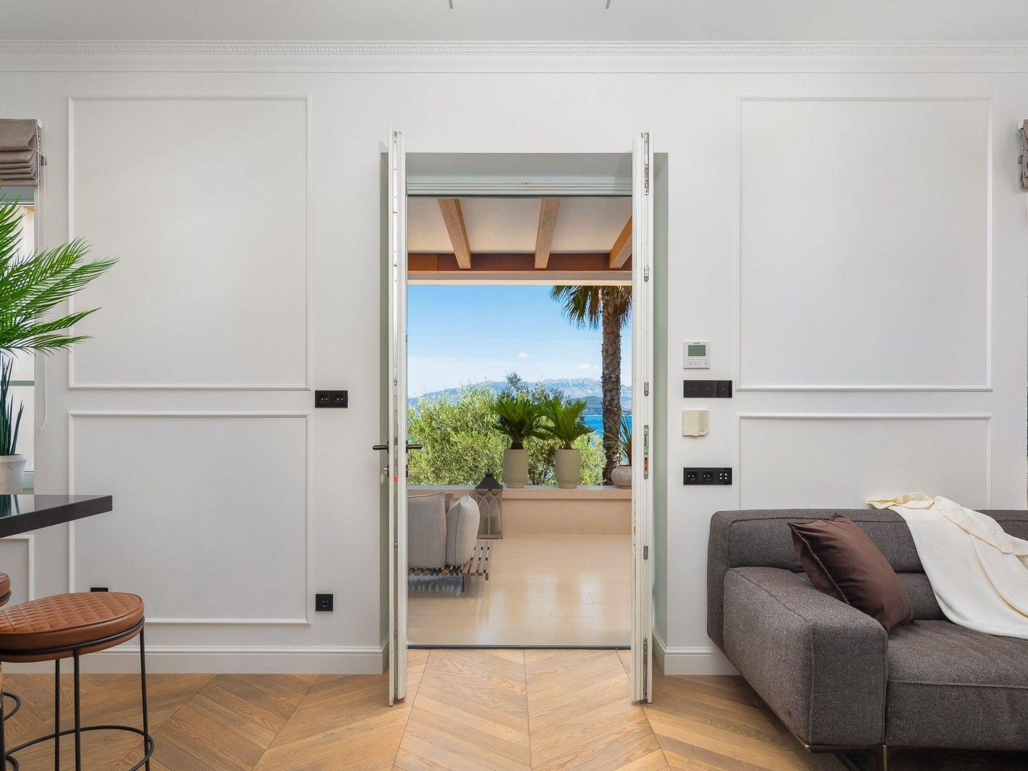 This villa blends elegance, luxury, and functionality. Situated just 5 meters from the beach and crystal-clear sea, the villa offers panoramic views of the coast, mountains, and the city of Split.
