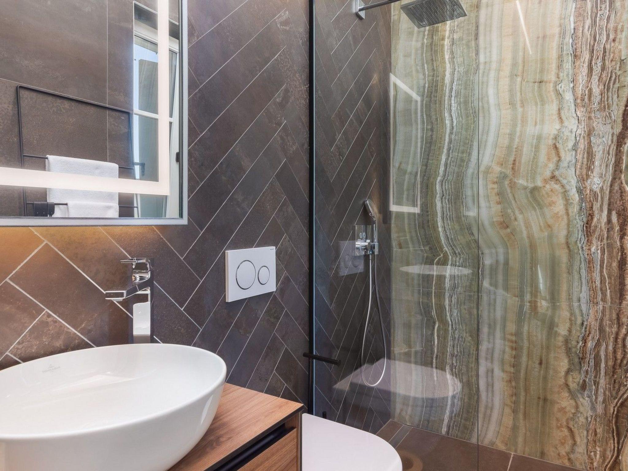 Some of the highlights of this villa include the Mediterranean garden featuring a heated infinity pool (50 m2), jacuzzi, and sun loungers. For those who wish to spend more time outdoors, the villa offers a fully equipped outdoor kitchen with a barbecue grill and a table with seating for 10 people. Next to the outdoor kitchen is a well equipped gym with air condition and TV, a Finnish sauna for 4 people and shower. Also, outside the house, guests have access to a toilet.