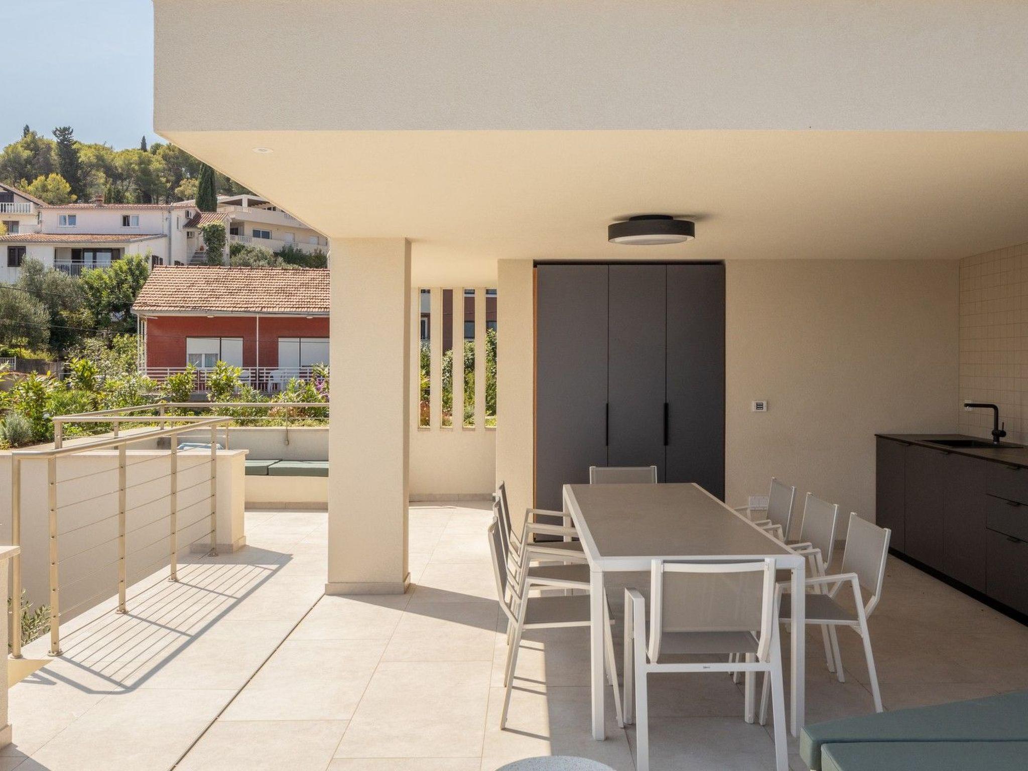 Villa Terra is a new luxurious and elegant holiday villa situated in a quiet area of village Slatine on island Ciovo, conveniently located just 7 km from UNESCO protected city of Trogir and 13 km from Split airport.