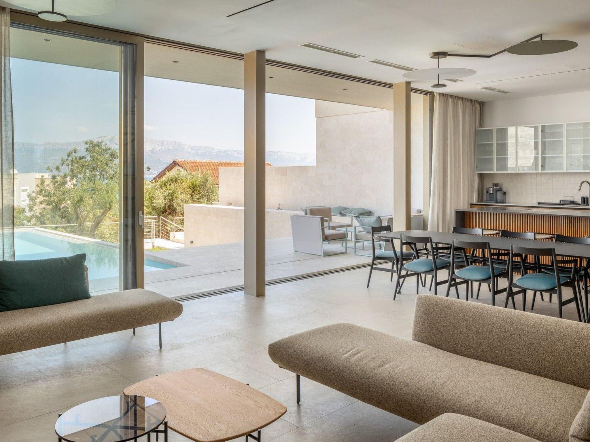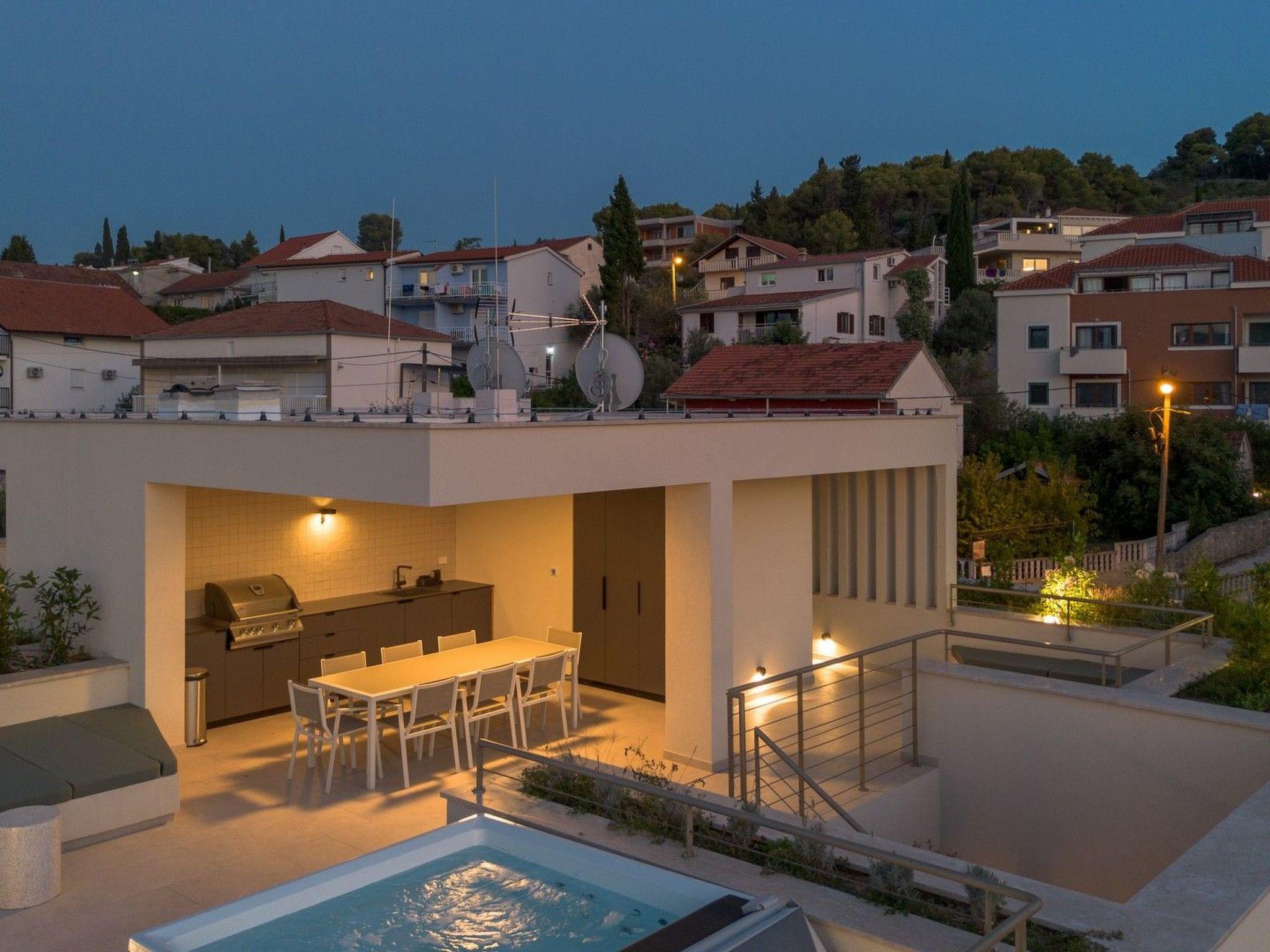 Villa Aqua is a new luxurious and elegant holiday villa situated in a quiet area of village Slatine on island Ciovo, conveniently located just 7 km from UNESCO protected city of Trogir and 13 km from Split airport.