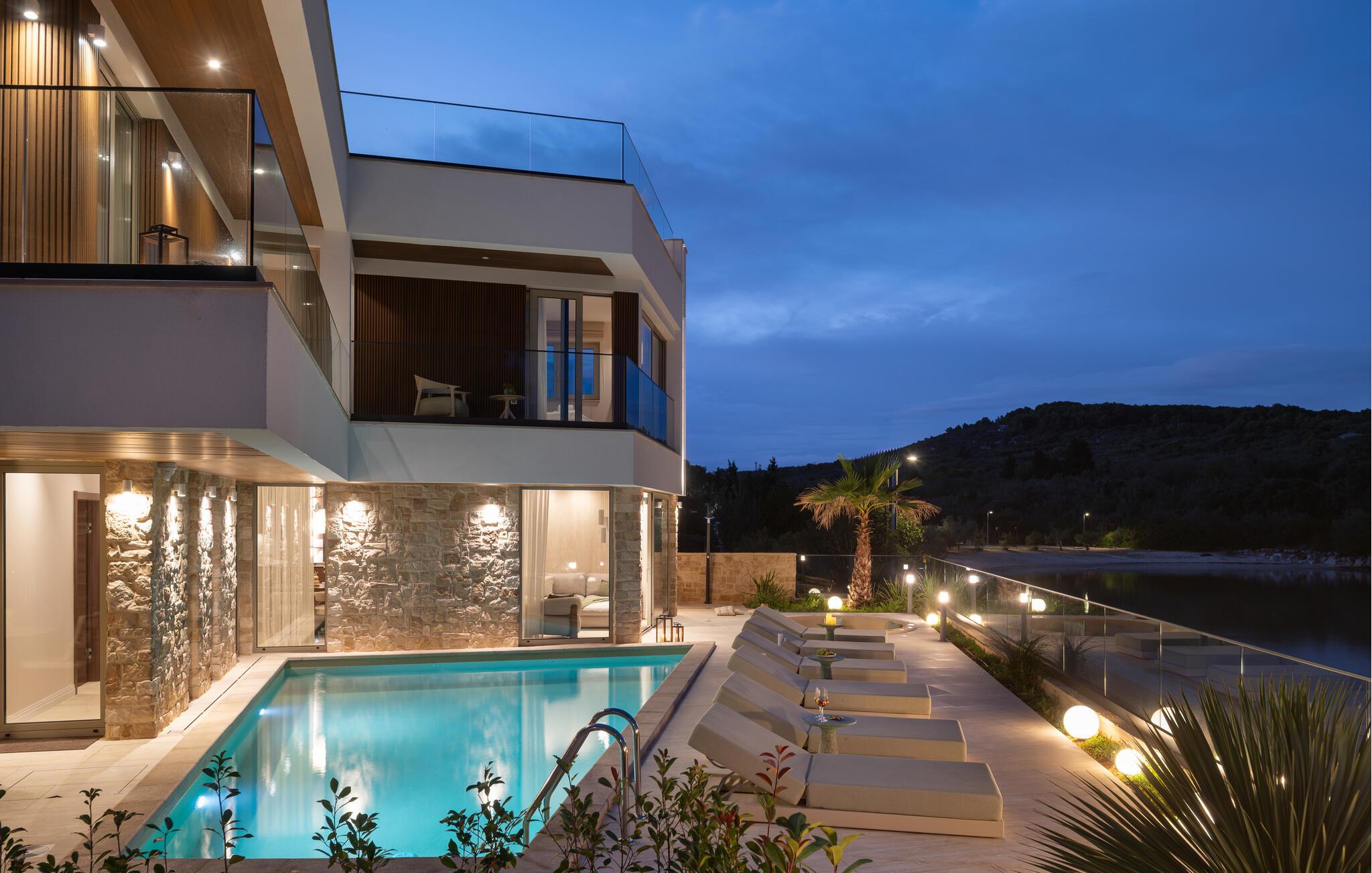 Forkæl jer selv med sensationel udsigt over vandet og dage fyldt med luksus i dette moderne feriehus med pool.