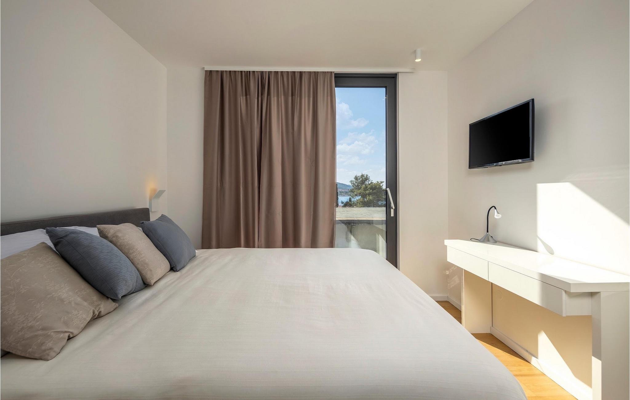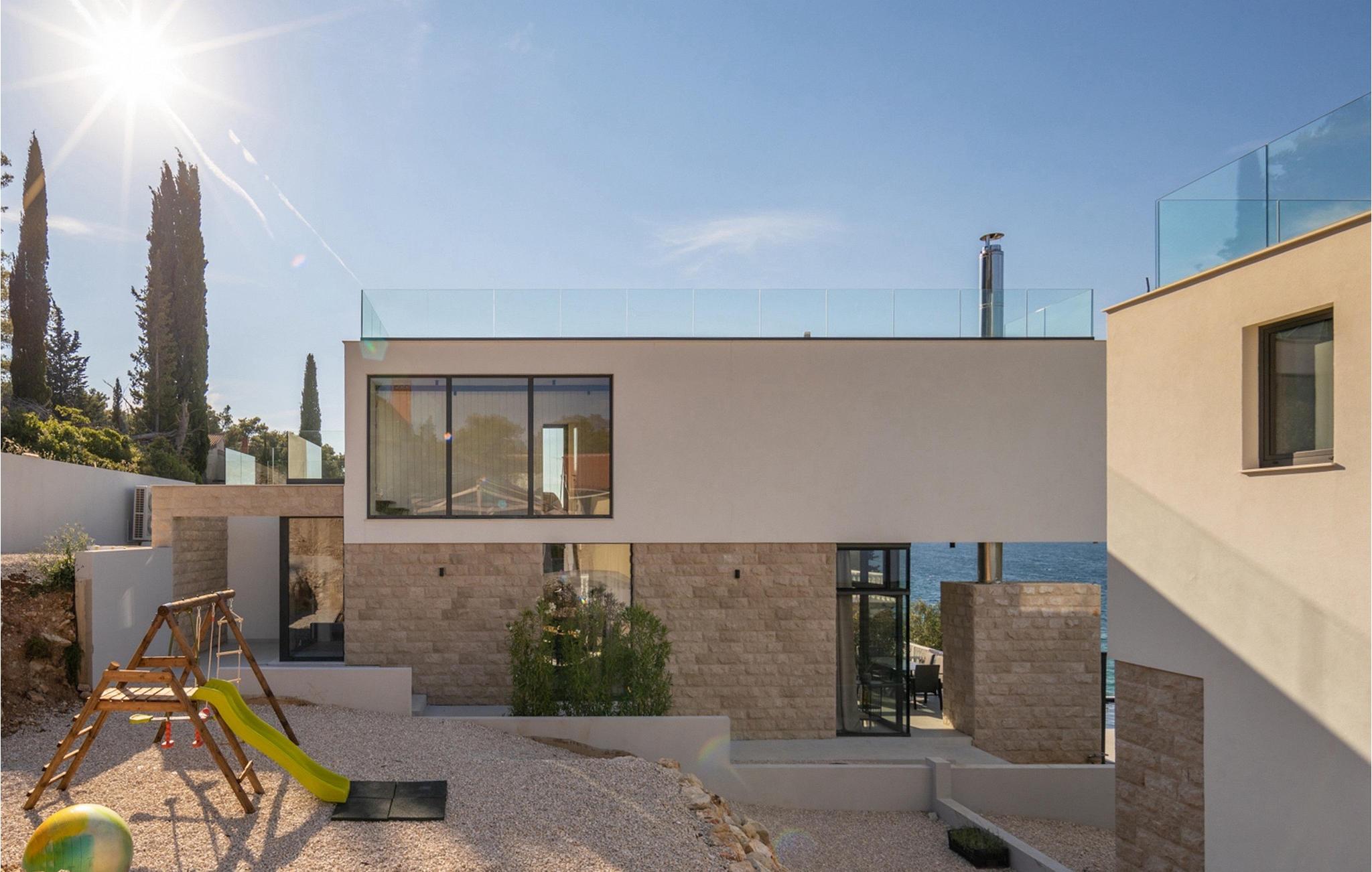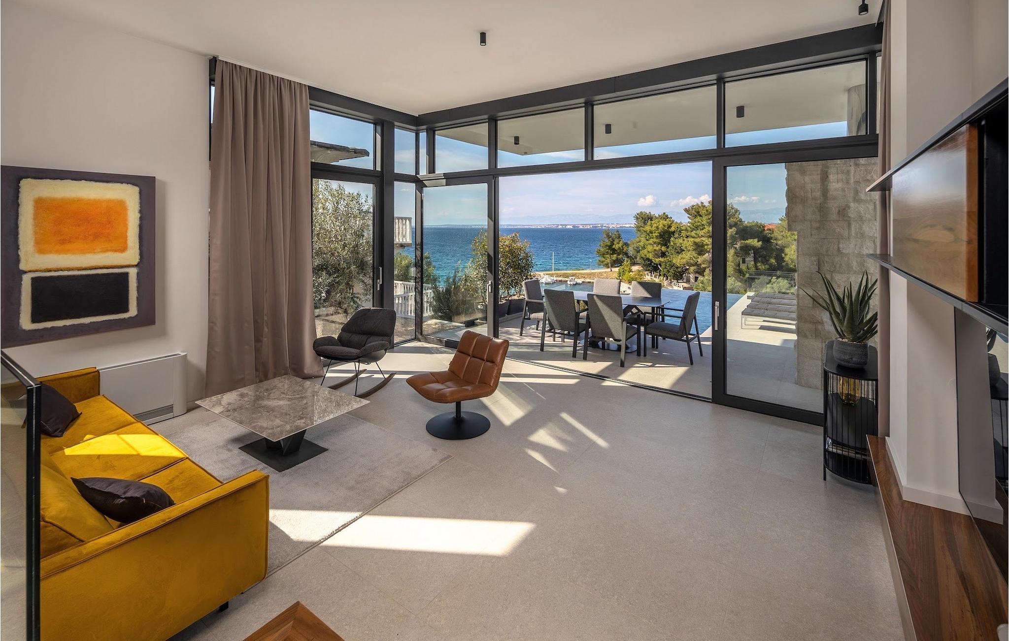 Drømmer du om en afslappende familieferie i Kroatien? Så er Villa Sunlife det perfekte valg. Med sin fantastiske beliggenhed direkte ved havet er villaen uden tvivl en helt unik ferievilla. Udenfor er der en privat infinity-pool, hvor du kan forfriske dig selv på varme sommerdage eller nyde sommerbrisen, mens du slapper af på en af liggestolene. Kun få skridt væk ligger en skyggefuld spiseplads med grill. Brug grillen til at vise dine grillfærdigheder og forkæle dine kære. Børn kan nyde en fælles legeplads. Villaen kan rumme i alt 6+2 personer fordelt på tre soveværelser. Stuen er fordelt på to etager og er meget luksuriøst indrettet. På første sal er der et fuldt udstyret køkken, som er forbundet med stue og spisestue. Fra stuen er der direkte adgang til terrassen. På etagen er der tre elegante soveværelser. Hvert af soveværelserne har sit eget moderne badeværelse, aircondition og tv.Villa Sunlife ligger i Kali, en lille landsby på øen Ugljan. Øens smukke natur med dens olivenlunde, vinmarker, skove og sand- og klippestrande gør Ugljan til et paradisisk feriemål. På øen er der fyrreskove, sand- og klippestrande og det krystalblå Adriaterhav. Ugljan er det perfekte udgangspunkt for dagsture til nationalparkerne Telašcica og Kornati. Er du mere interesseret i aktive ferier, finder du vandre- og cykelstier her. Fra Zadar er der daglige færgeforbindelser til øen Ugljan eller til havnen i landsbyen Preko. Zadar er en gammel by, der er værd at se, rig på kulturarv og historiske attraktioner. Den gamle bydel byder på monumenterne fra antikken, middelalderen og renæssancen. I dag er Zadar berømt for havorgelet og lysinstallationen "Pozdrav suncu" (hilsen til solen). Den berømte Alfred Hitchcock sagde, at i Zadar er den smukkeste solnedgang - gå ikke glip af den!