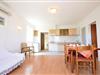 Inde i lejligheden finder I et pænt og lyst interiør. I finder plads til 5 personer i 2 soveværelser og et åbent køkken-opholdsstue og et badeværelse.