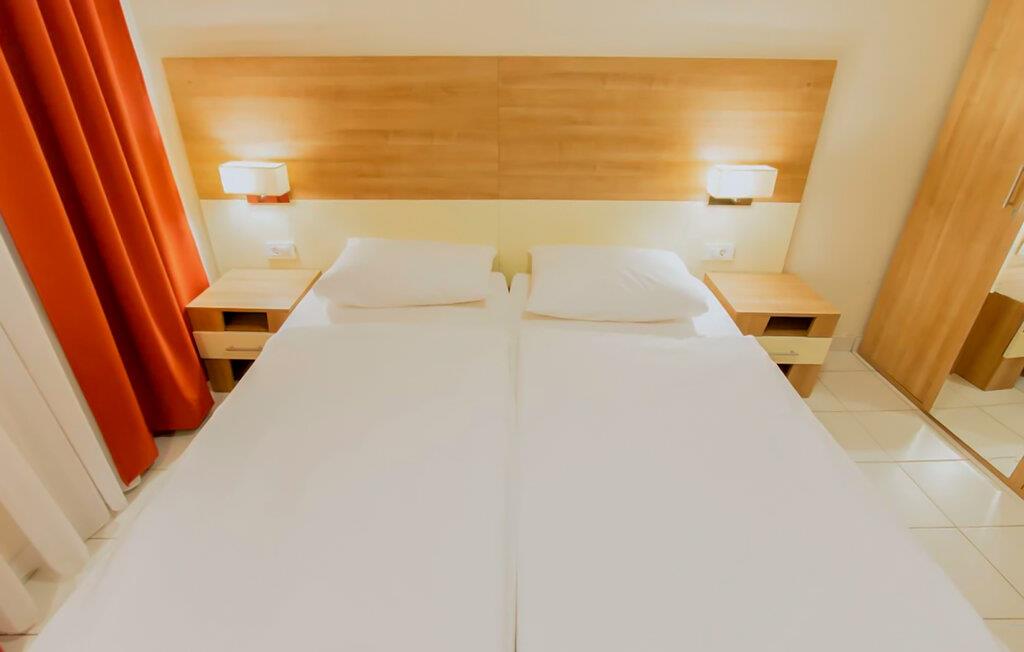Denne lyse og indbydende lejlighed tilbyder praktiske faciliteter og er en komfortabel base for en varieret ferie ved havet. Tilbered middelhavsretter, planlæg jeres aktiviteter over afslappende måltider, og slap af med jeres yndlingsprogrammer efter en lang dag.