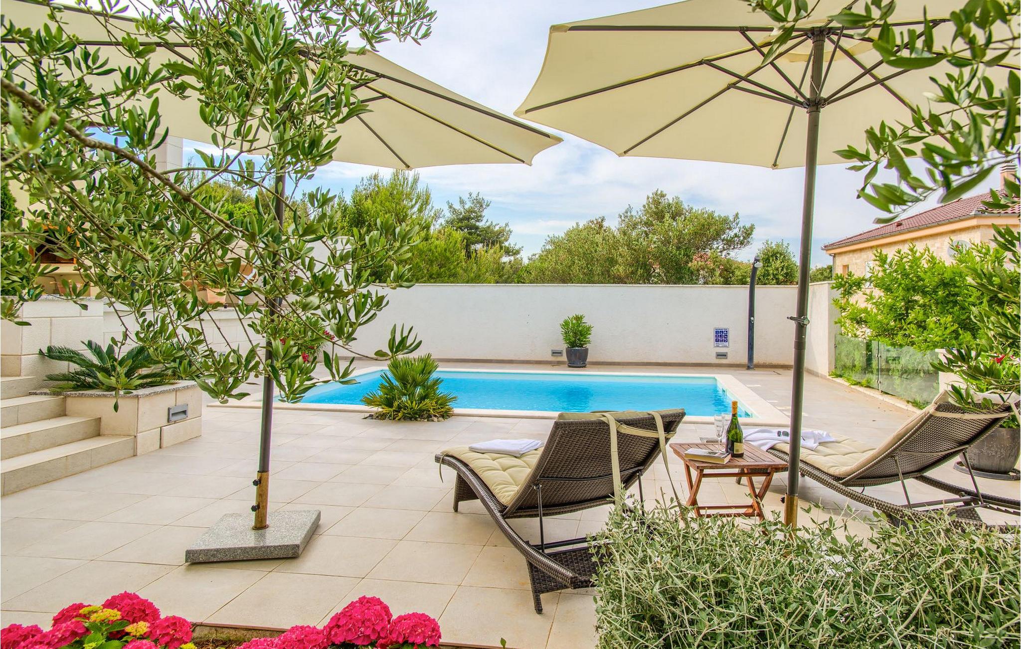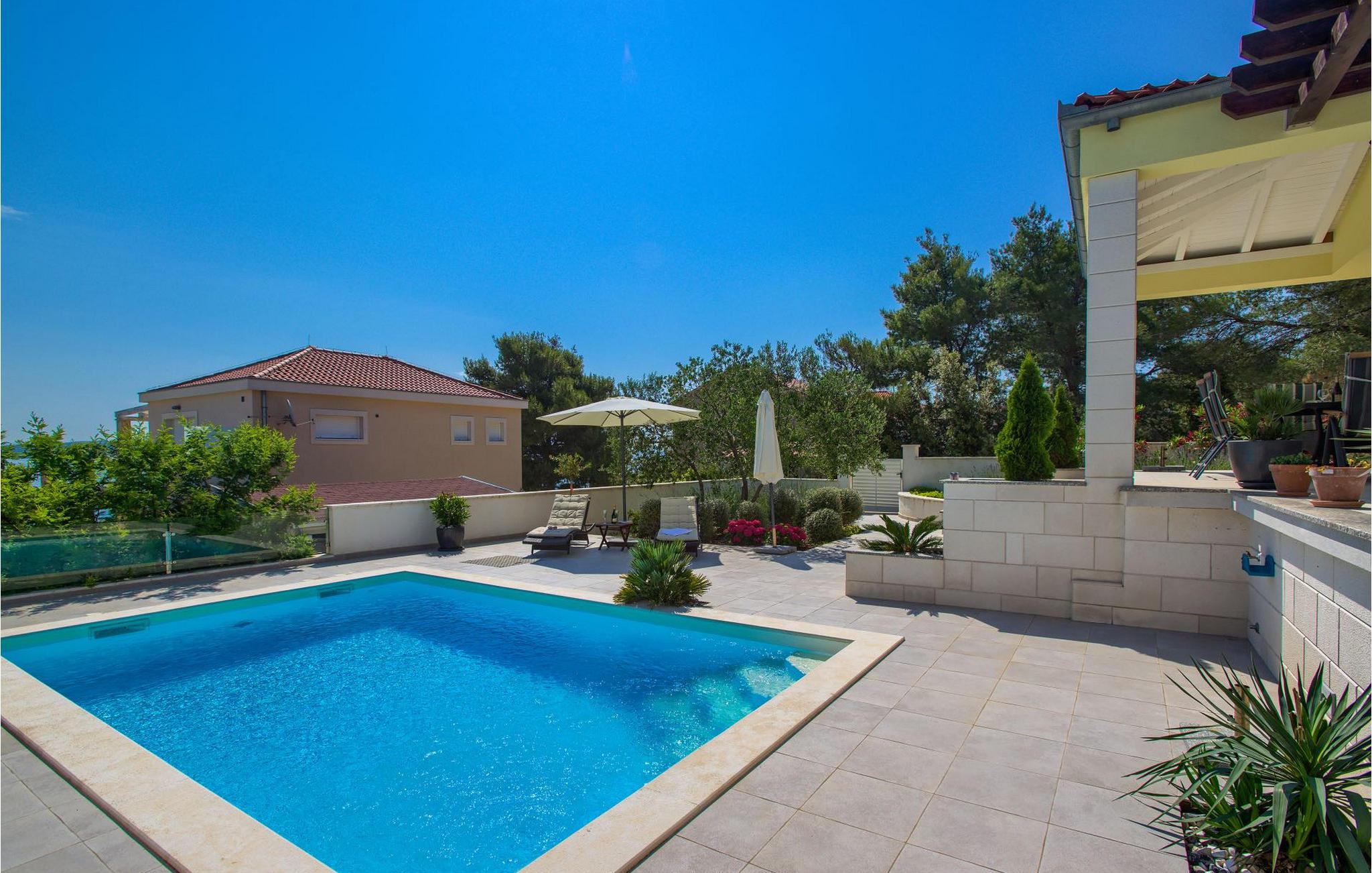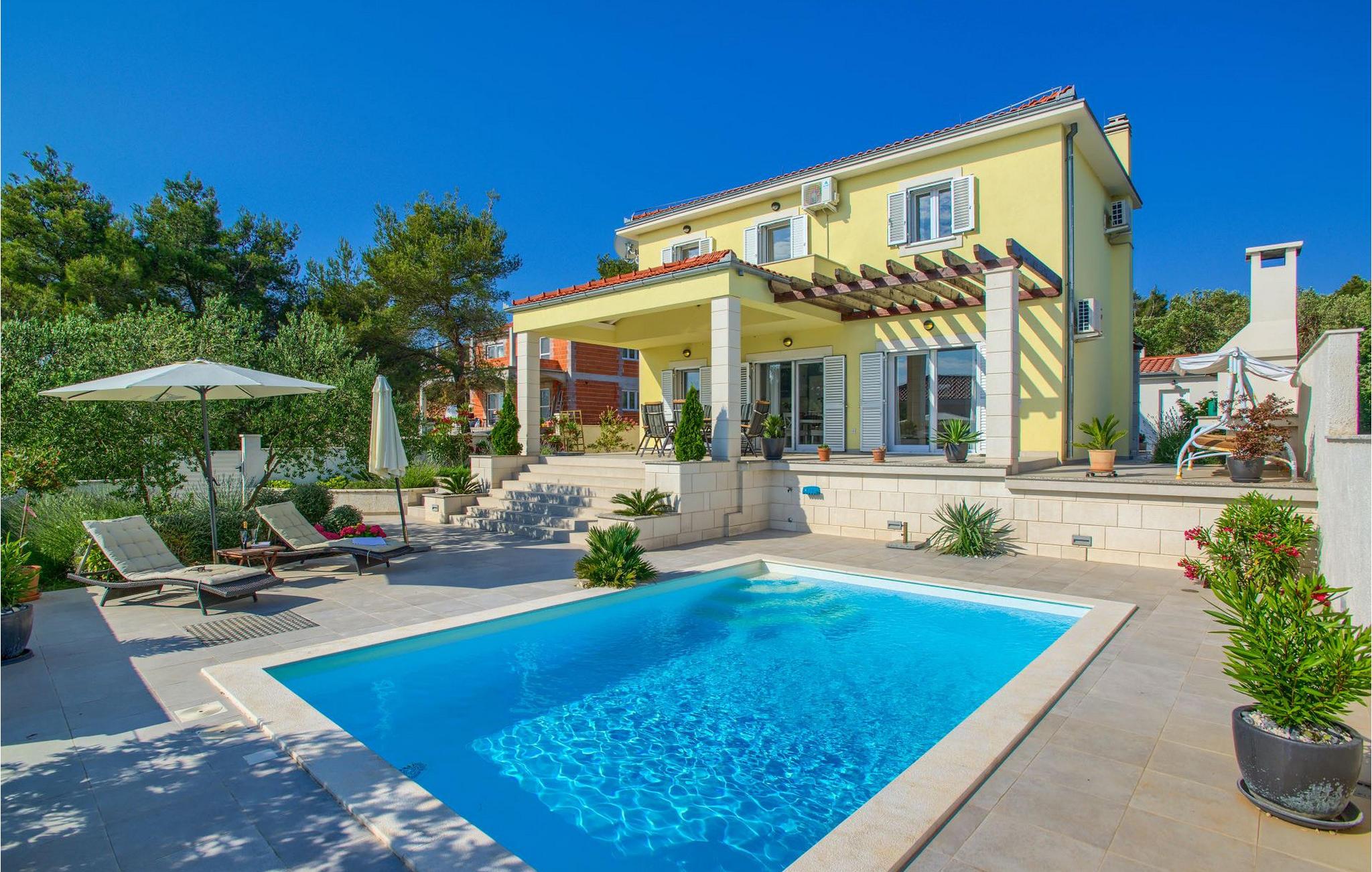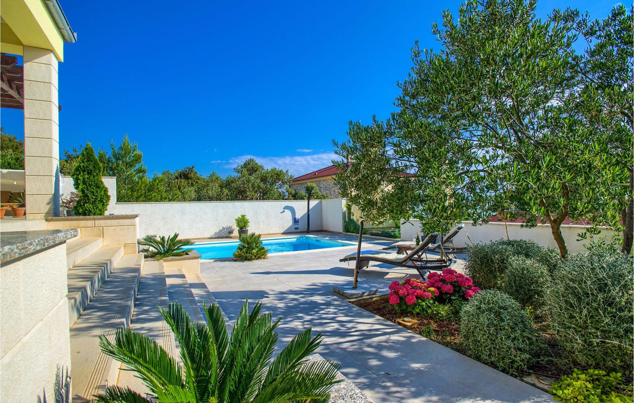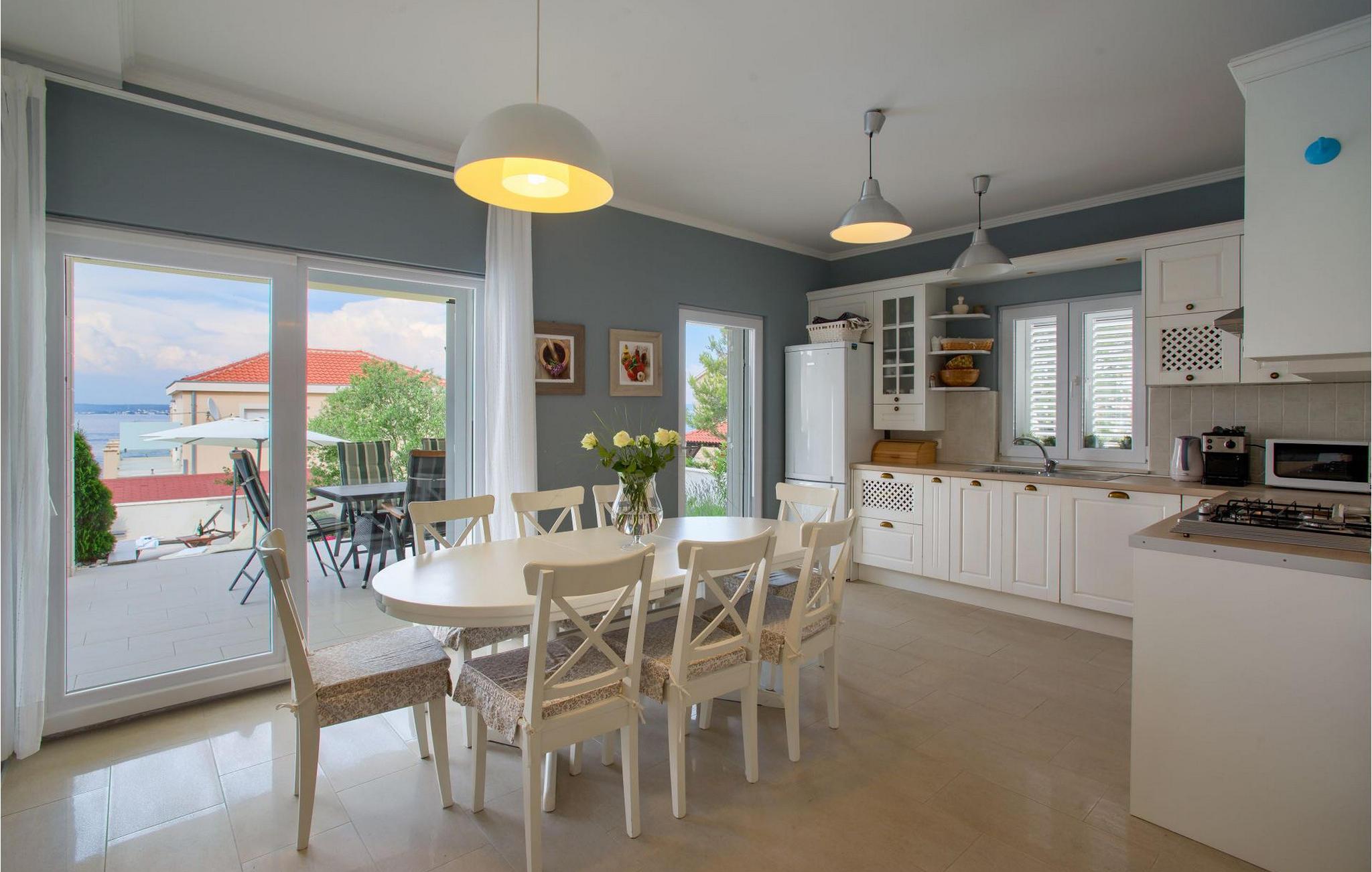 Den smukke Villa Tatijana ligger på øen Ugljan, i umiddelbar nærhed af havet. Den kan rumme op til 8 personer og er ideel til familier, vennegrupper eller par. Udearealet byder på en velholdt have dekoreret med middelhavsplanter, en privat pool med liggestole og en fantastisk havudsigt, som du helt sikkert vil nyde! Der er en overdækket terrasse og en grill til din rådighed - perfekt til at tilberede lækre specialiteter og tilbringe sommeraftenen med dine kære. Den åbne plan stueetagen består af et fuldt udstyret køkken med spiseplads og en stue. Så snart du træder ind i rummet, vil du bemærke den stilrene indretning med enkle farver og pejsen, der giver rummet en hyggelig atmosfære. Der er også fire komfortable soveværelser (et i stueetagen og tre på første sal) og to badeværelser. Bordtennis og dart er til rådighed. Den fuldt klimatiserede villa har internetadgang, privat parkering til fire biler, og ejendommen er fuldt indhegnet. Villa Tatijana er det perfekte valg, hvis du ønsker at tilbringe din afslappende ferie nær havet. Du vil føle dig hjemme her! Villa er beliggende i Kukljica, en lille landsby på øen Ugljan. Fra Zadar er der daglige forbindelser til øen Ugljan med færge til havnen i landsbyen Preko. Zadar er en gammel by med historisk og kulturel arv, der er værd at se. Den berømte Alfred Hitchcock sagde, at Zadar har den smukkeste solnedgang i verden - gå ikke glip af det! Den gamle bydel i Zadar byder på monumenter fra oldtiden, middelalderen og renæssancen, og i dag er den berømt for symfoni af Havorgelet og lysinstallationen "Pozdrav Suncu" (Greeating the Sun). I Kukljica finder du tætte fyrreskove, sand- og klippestrande og det krystalklare Adriaterhav! Kukljica er perfekt til daglige ture til nationalparken Telašcica og nationalparken Kornati. Hvis du leder efter en mere aktiv ferie, så gå ikke glip af vandre- og cykelstier.