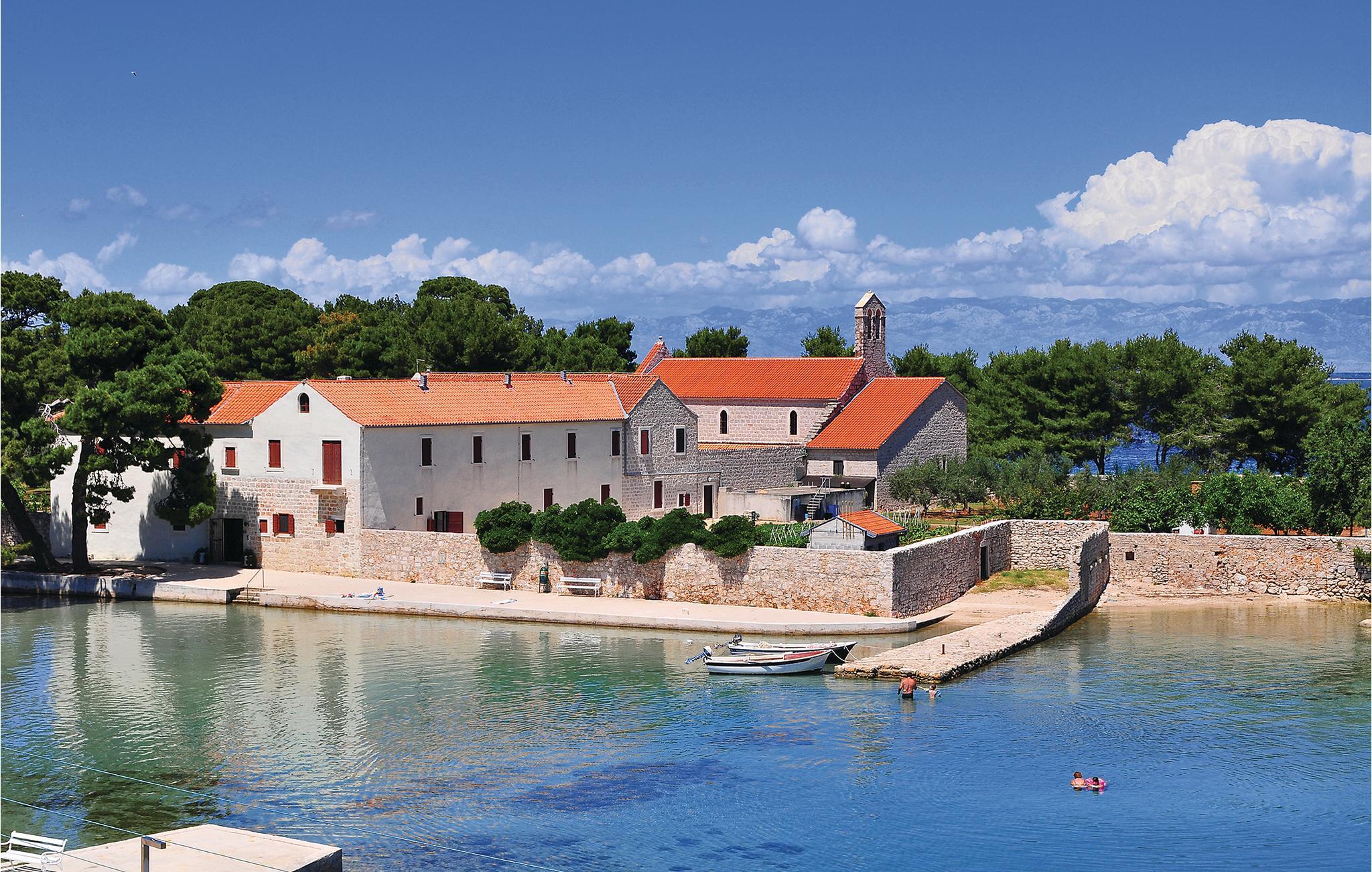 Dette feriehus ligger i et strandresort, der også har en restaurant, en legeplads, et udendørs fitnesscenter, paddletennis- og tennisbaner samt cykeludlejning. På Ugljan kan I opdage de rolige kyststier, der fører jer gennem duftende fyrreskove og til små bugter med krystalklart vand. Svøm og snorkel ved afsidesliggende strande, hvor havet glitrer i bløde grønne nuancer. Bestig Sv. Mihovil-fæstningen og nyd panoramaudsigten over øerne.