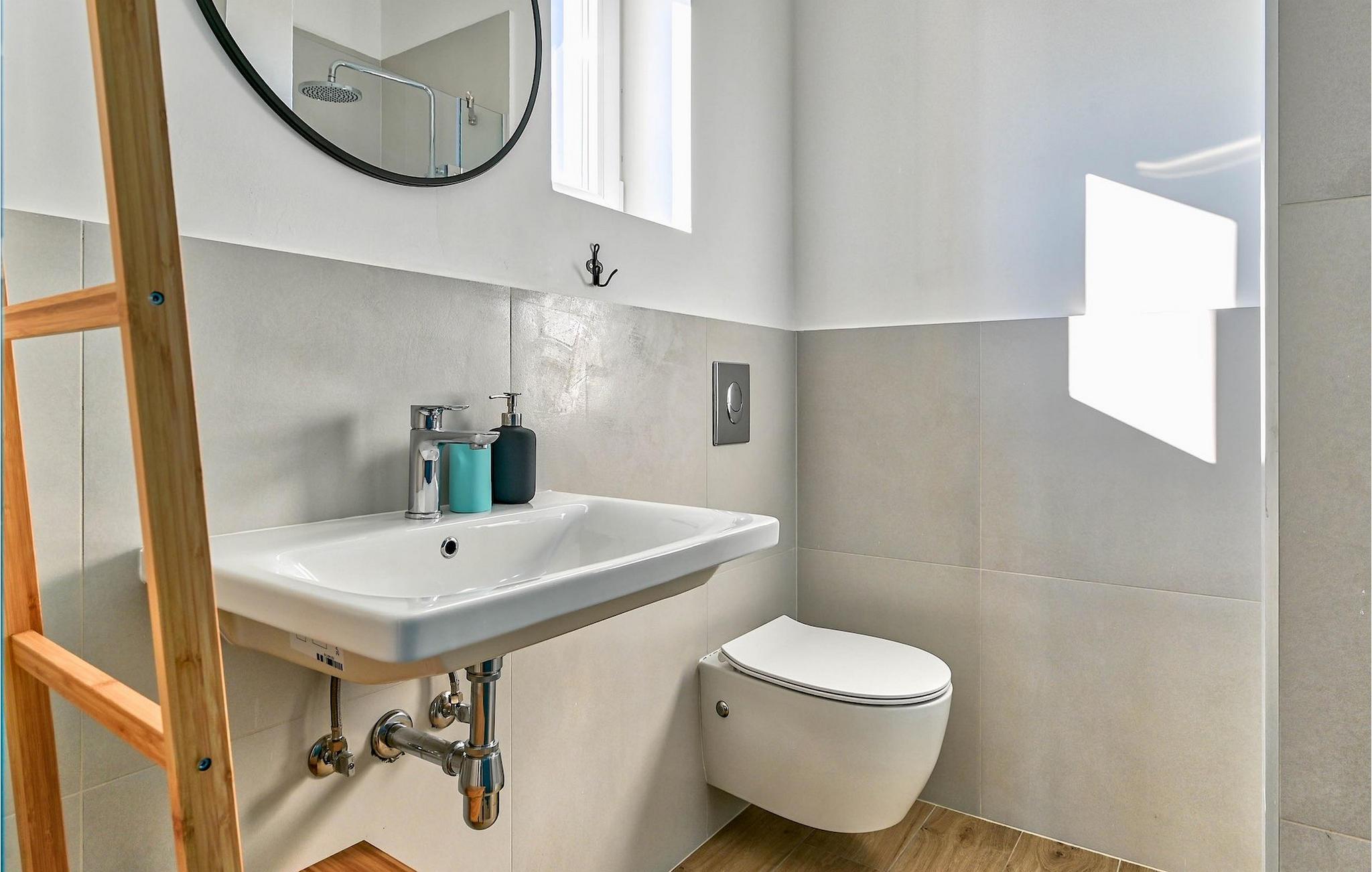 Badeværelse (nr. 1) - WC. Varmt og koldt vand. Bruser