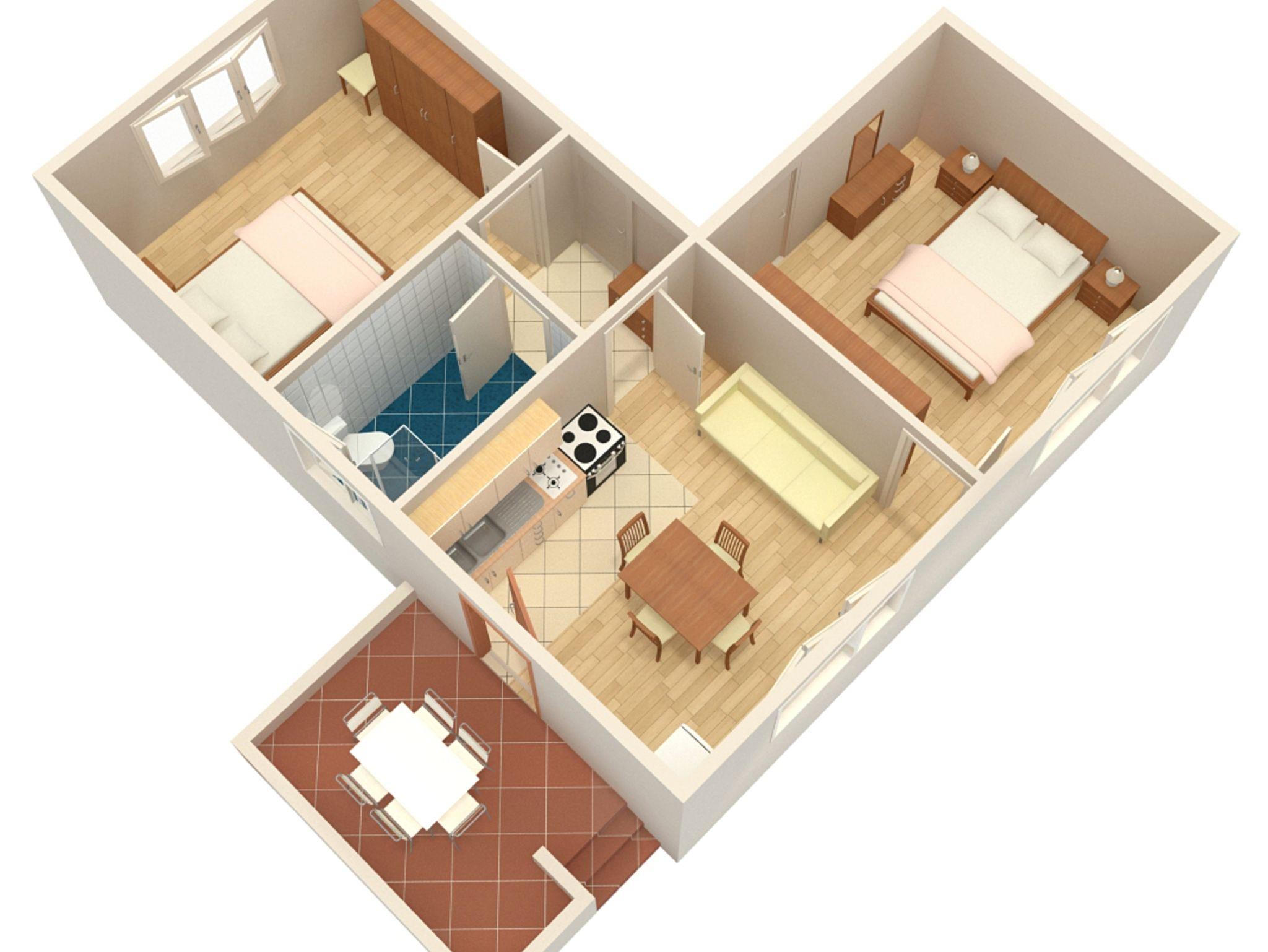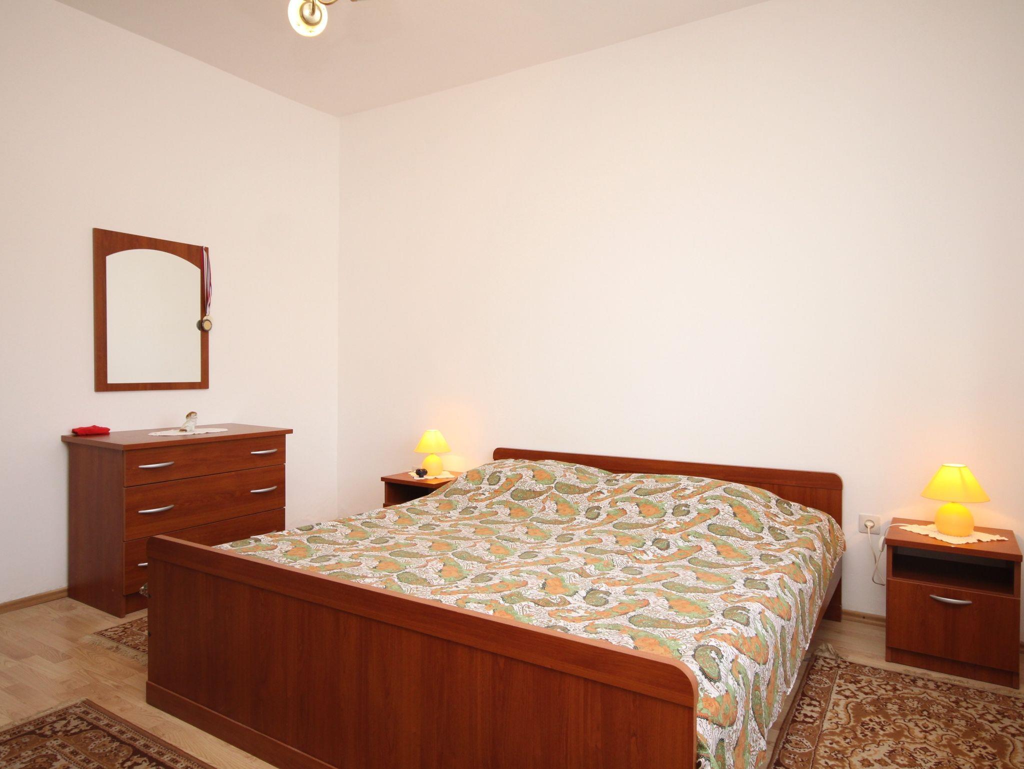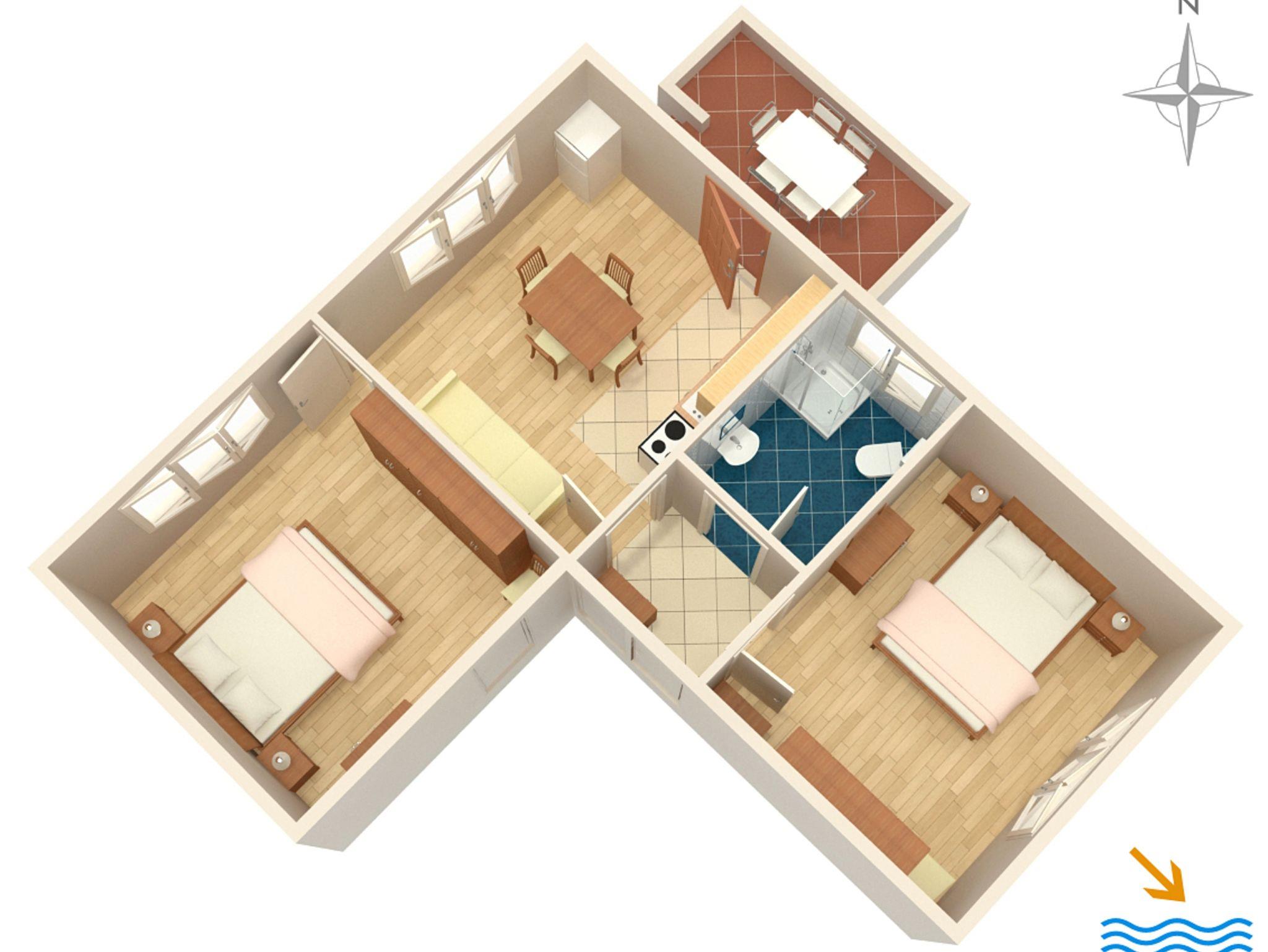 Ferienwohnung bietet Platz für 5 Gäste. Die Betten sind in Schlafzimmern, die es 2 gibt, und in Esszimmer, innerhalb einer Gesamtfläche von 50m2, angeordnet. Die Gäste haben eine eigene Terrasse zur Verfügung, auf der sie in warmen Sommernächten genießen können. Das Apartment bietet Meerblick. Es ist erlaubt, Speisen auf dem Gemeinschafts-Grill vorzubereiten. IM PREIS INBEGRIFFEN: Kurtaxe, Endreinigung, Klimatisierung, Parkplatz, Internet, Föhn, Liegestühle. Die Verfügbarkeit zusätzlicher Dienstleistungen in Ihrem reservierten Termin und die Preise derselben (falls nicht aufgeführt) müssen im Voraus überprüft werden. Zusätzliche Dienstleistungen die in der Zahlungsaufforderung nicht aufgeführt sind werden direkt beim Vermieter bezahlt, angenommen der Gast nutzt auch diese.