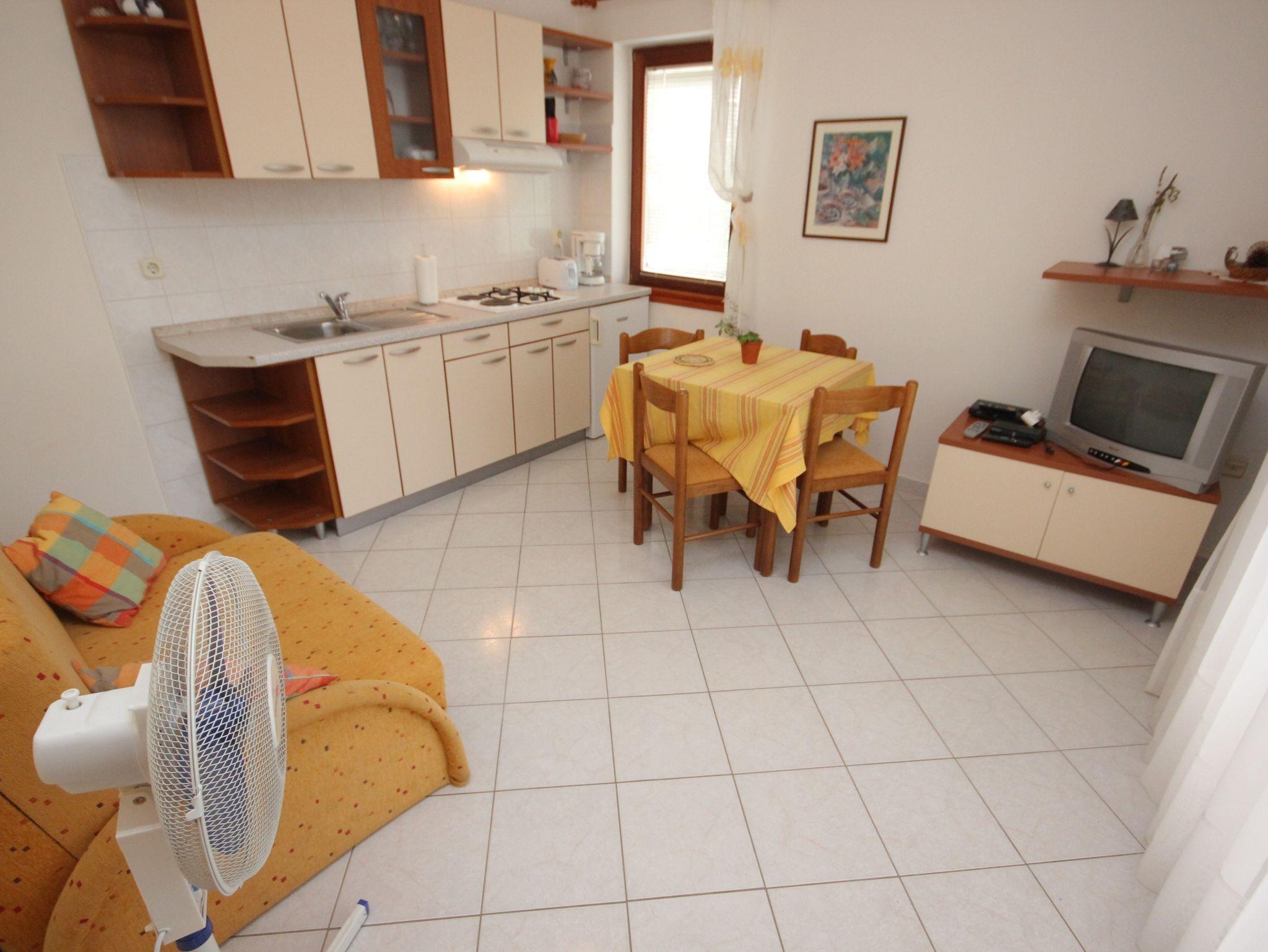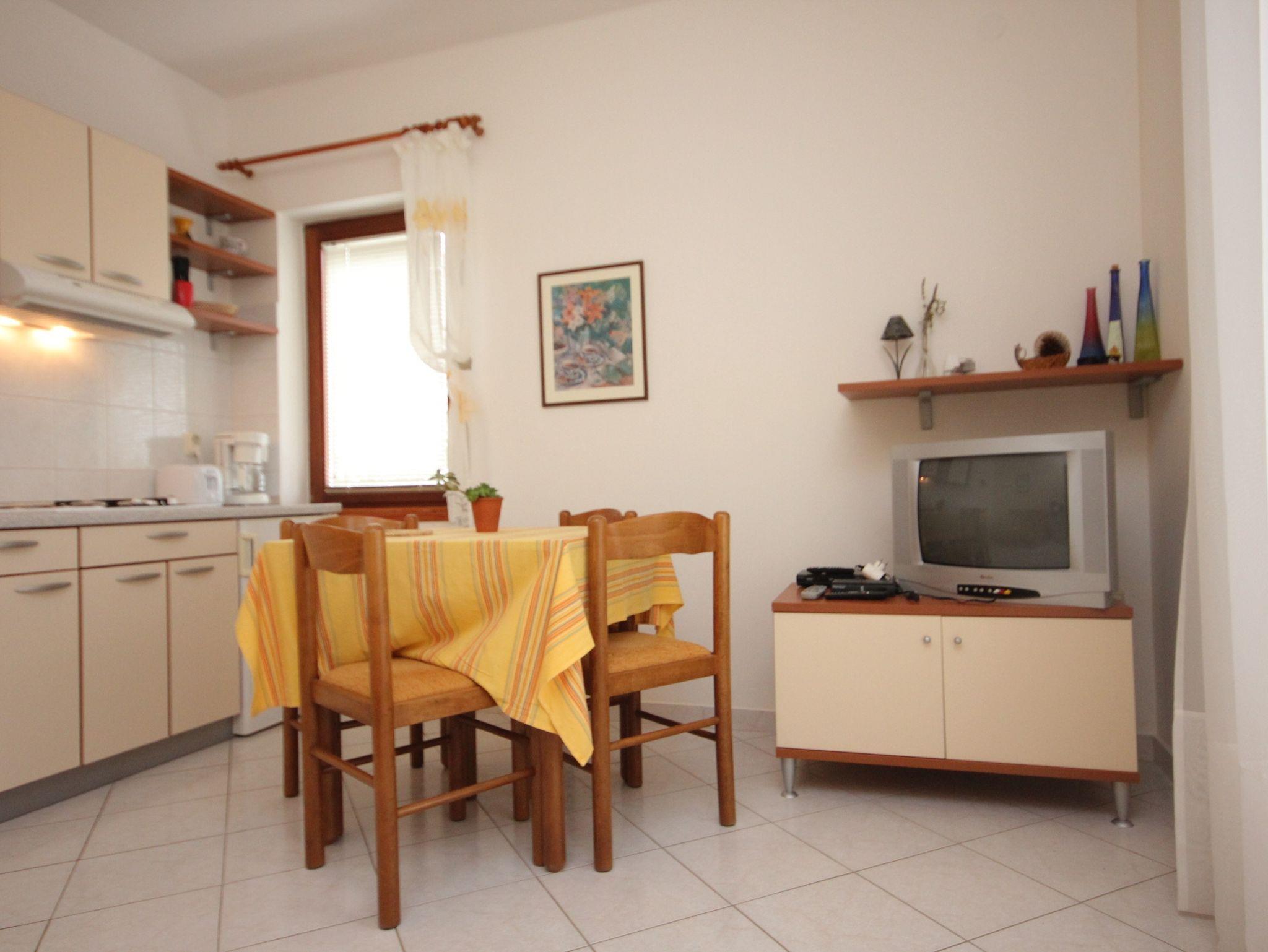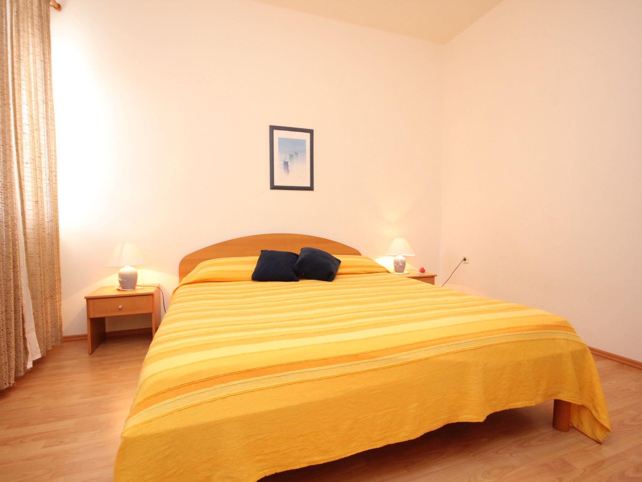 Ferienwohnung bietet Platz für 3 Gäste. Die Betten sind in Schlafzimmern, die es 1 gibt, und in Esszimmer, innerhalb einer Gesamtfläche von 30m2, angeordnet. Die Gäste haben eine eigene Terrasse zur Verfügung, auf der sie in warmen Sommernächten genießen können. Das Apartment bietet Meerblick. Es ist erlaubt, Speisen auf dem Gemeinschafts-Grill vorzubereiten. IM PREIS INBEGRIFFEN: Kurtaxe, Endreinigung, Klimatisierung, Parkplatz, Internet, Kinderbett. VERBINDLICHE ZUSÄTZLICHE KOSTEN: Aufzahlung für Kurzaufenthalte (prozentualer Zuschlag pro Nächtigungsanzahl: 30% - 1, 20% - 2, 10% - 3). Die Verfügbarkeit zusätzlicher Dienstleistungen in Ihrem reservierten Termin und die Preise derselben (falls nicht aufgeführt) müssen im Voraus überprüft werden. Zusätzliche Dienstleistungen die in der Zahlungsaufforderung nicht aufgeführt sind werden direkt beim Vermieter bezahlt, angenommen der Gast nutzt auch diese.
