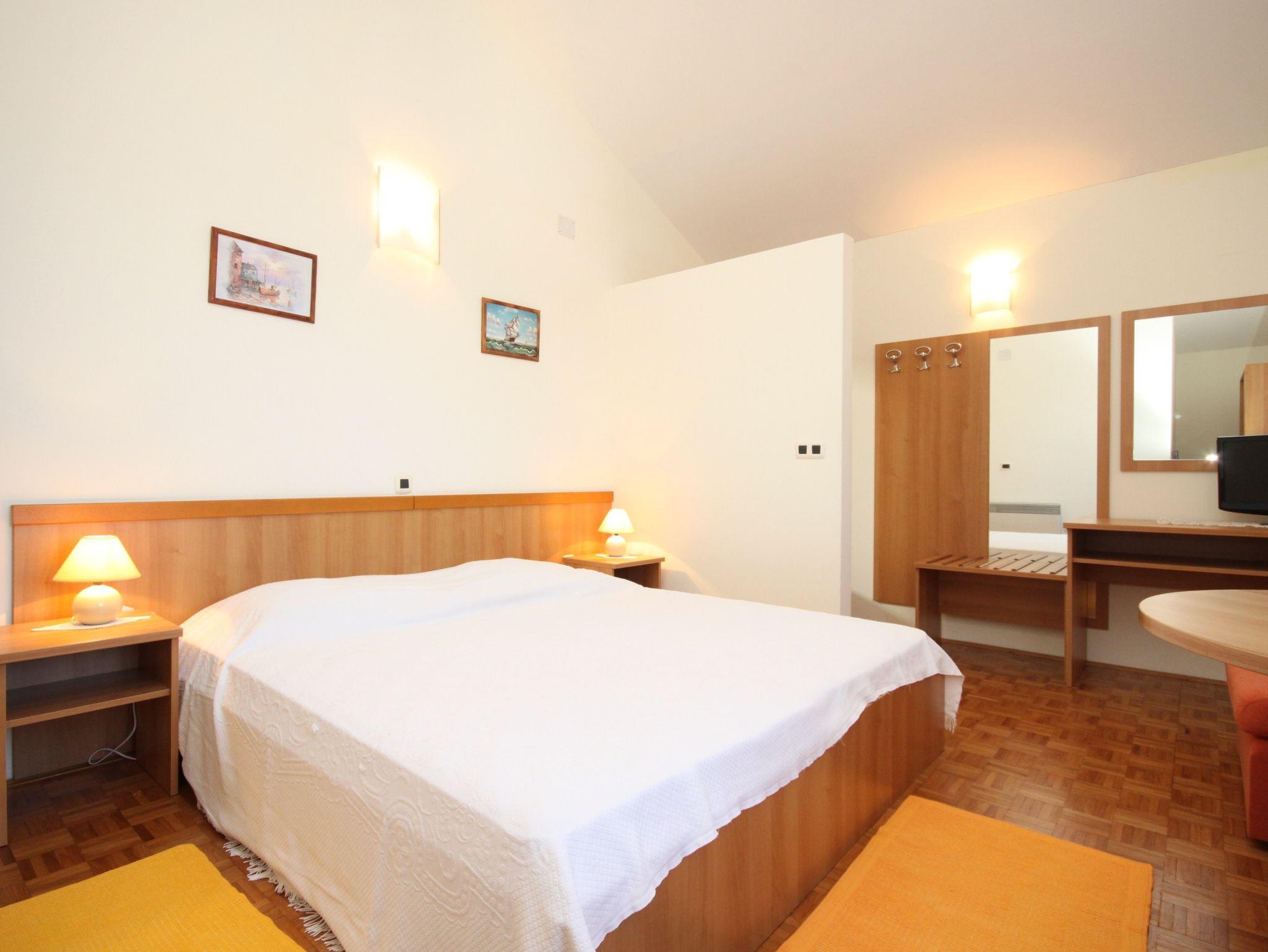 Zimmer bietet Platz für 2 Gäste. Die Betten sind in Schlafzimmern, die es 1 gibt, innerhalb einer Gesamtfläche von 22m2, angeordnet. Die reservierte Unterkunftseinheit hat keinen Balkon und keine Terrasse. Die reservierte Unterkunftseinheit ist ein Zimmer mit eigenem Badezimmer ohne die Möglichkeit der Nutzung einer Küche. IM PREIS INBEGRIFFEN: Endreinigung, Parkplatz, Internet, Bootsanlegeplatz, Föhn. VERBINDLICHE ZUSÄTZLICHE KOSTEN: Kurtaxe (Erwachsene 0,93 € - 1,50 € Nacht/Person, Kinderermäßigung 12 - 17 Jahre), Aufzahlung für Kurzaufenthalte (prozentualer Zuschlag pro Nächtigungsanzahl: 30% - 1, 20% - 2, 10% - 3). UNVERBINDLICHE ZUSÄTZLICHE KOSTEN: Frühstück (14,00 €, 50% Nachlass für Kinder zwischen 4 und 12 Jahren, Kinder bis 4 Jahre sind frei.). Die Verfügbarkeit zusätzlicher Dienstleistungen in Ihrem reservierten Termin und die Preise derselben (falls nicht aufgeführt) müssen im Voraus überprüft werden. Zusätzliche Dienstleistungen die in der Zahlungsaufforderung nicht aufgeführt sind werden direkt beim Vermieter bezahlt, angenommen der Gast nutzt auch diese. Ermäßigung auf den Grundpreis: Gratistag 14=13 (bei einem Aufenthalt von 14 Tagen oder mehr erhalten Sie einen Gratistag für den Aufenthalt bis 31.12.26).