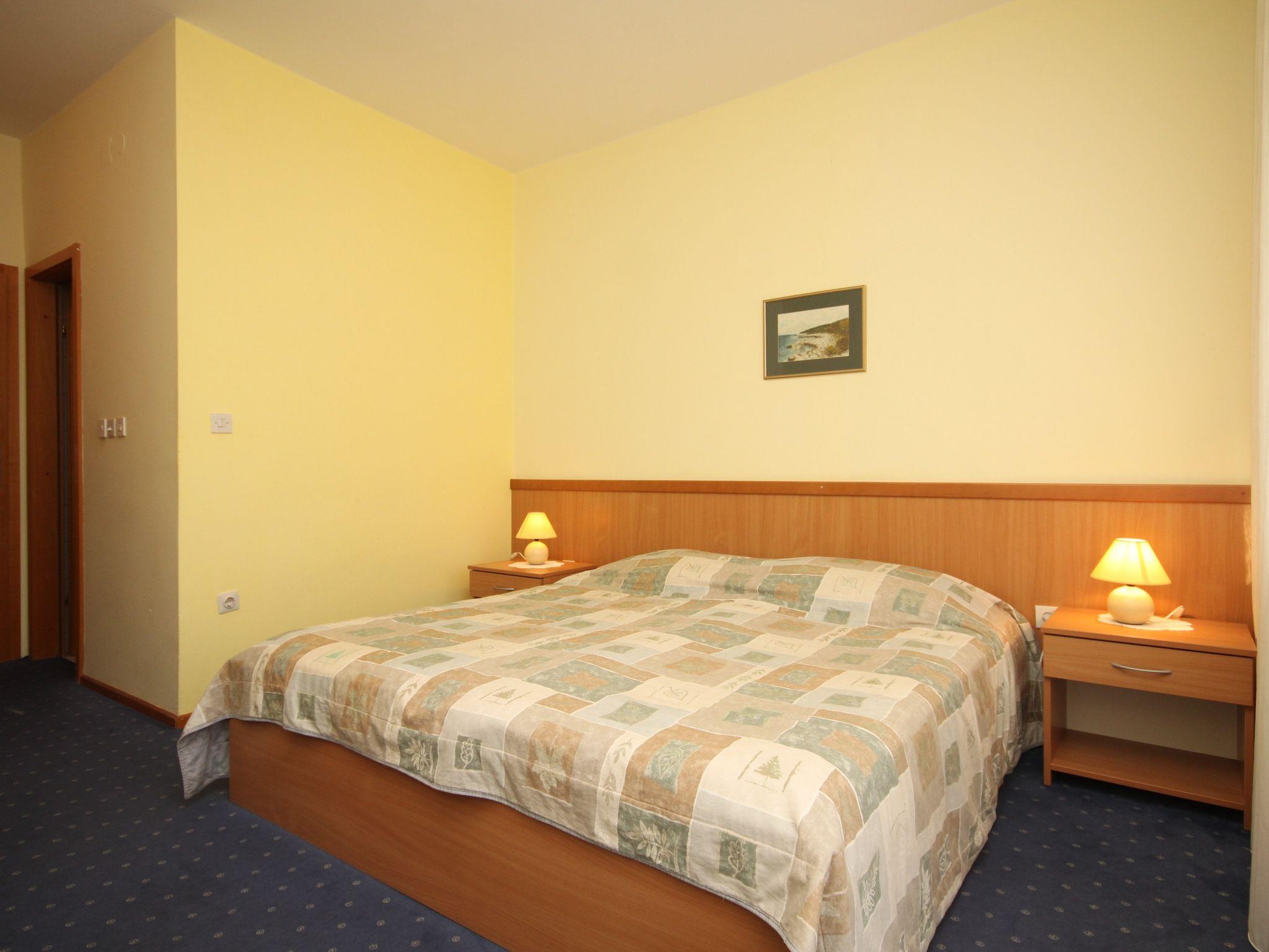 Zimmer bietet Platz für 2 Gäste. Die Betten sind in Schlafzimmern, die es 1 gibt, innerhalb einer Gesamtfläche von 18m2, angeordnet. Die Gäste haben einen eigenen Balkon zur Verfügung, auf der sie in warmen Sommernächten genießen können. Die reservierte Unterkunftseinheit ist ein Zimmer mit eigenem Badezimmer ohne die Möglichkeit der Nutzung einer Küche. IM PREIS INBEGRIFFEN: Endreinigung, Parkplatz, Internet, Bootsanlegeplatz, Föhn. VERBINDLICHE ZUSÄTZLICHE KOSTEN: Kurtaxe (Erwachsene 0,93 € - 1,50 € Nacht/Person, Kinderermäßigung 12 - 17 Jahre), Aufzahlung für Kurzaufenthalte (prozentualer Zuschlag pro Nächtigungsanzahl: 30% - 1, 20% - 2, 10% - 3). UNVERBINDLICHE ZUSÄTZLICHE KOSTEN: Frühstück (14,00 €, 50% Nachlass für Kinder zwischen 4 und 12 Jahren, Kinder bis 4 Jahre sind frei.). Die Verfügbarkeit zusätzlicher Dienstleistungen in Ihrem reservierten Termin und die Preise derselben (falls nicht aufgeführt) müssen im Voraus überprüft werden. Zusätzliche Dienstleistungen die in der Zahlungsaufforderung nicht aufgeführt sind werden direkt beim Vermieter bezahlt, angenommen der Gast nutzt auch diese. Ermäßigung auf den Grundpreis: Gratistag 14=13 (bei einem Aufenthalt von 14 Tagen oder mehr erhalten Sie einen Gratistag für den Aufenthalt bis 31.12.26).