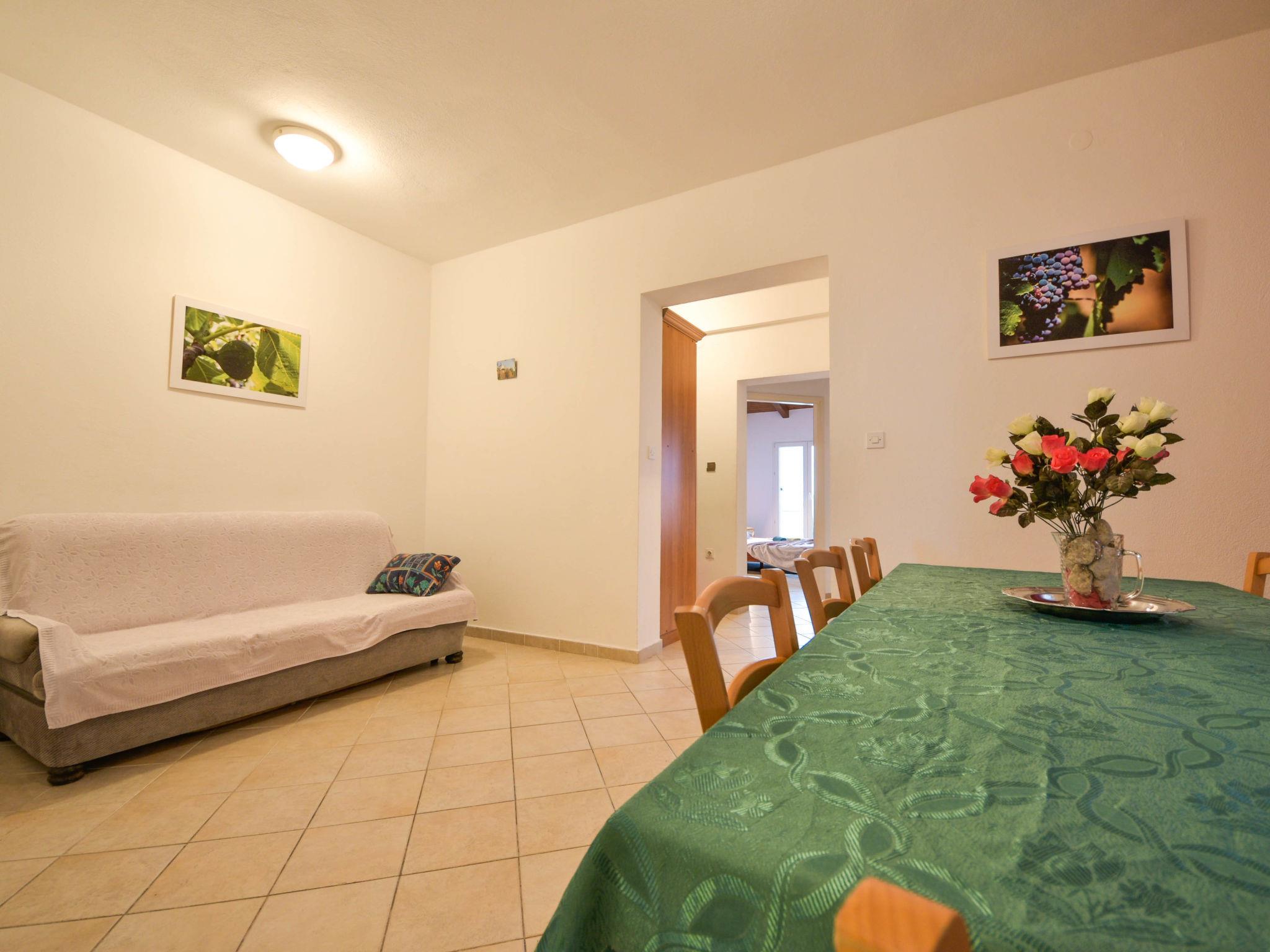 4-room apartment 63 m2, on the upper ground floor. Living/dining room with satellite TV and air conditioning. 1 room with 1 double bed (220 cm), shower/WC. 1 room with 1 double bed (220 cm). Exit to the terrace. 1 room with 1 double bed (220 cm). Exit to the terrace. Kitchenette (4 hot plates, oven). Shower/WC. Air-conditioning (extra). No heating option. Terrace 15 m2, roofed. Terrace furniture. View of the sea. Facilities: Internet (WiFi, free).