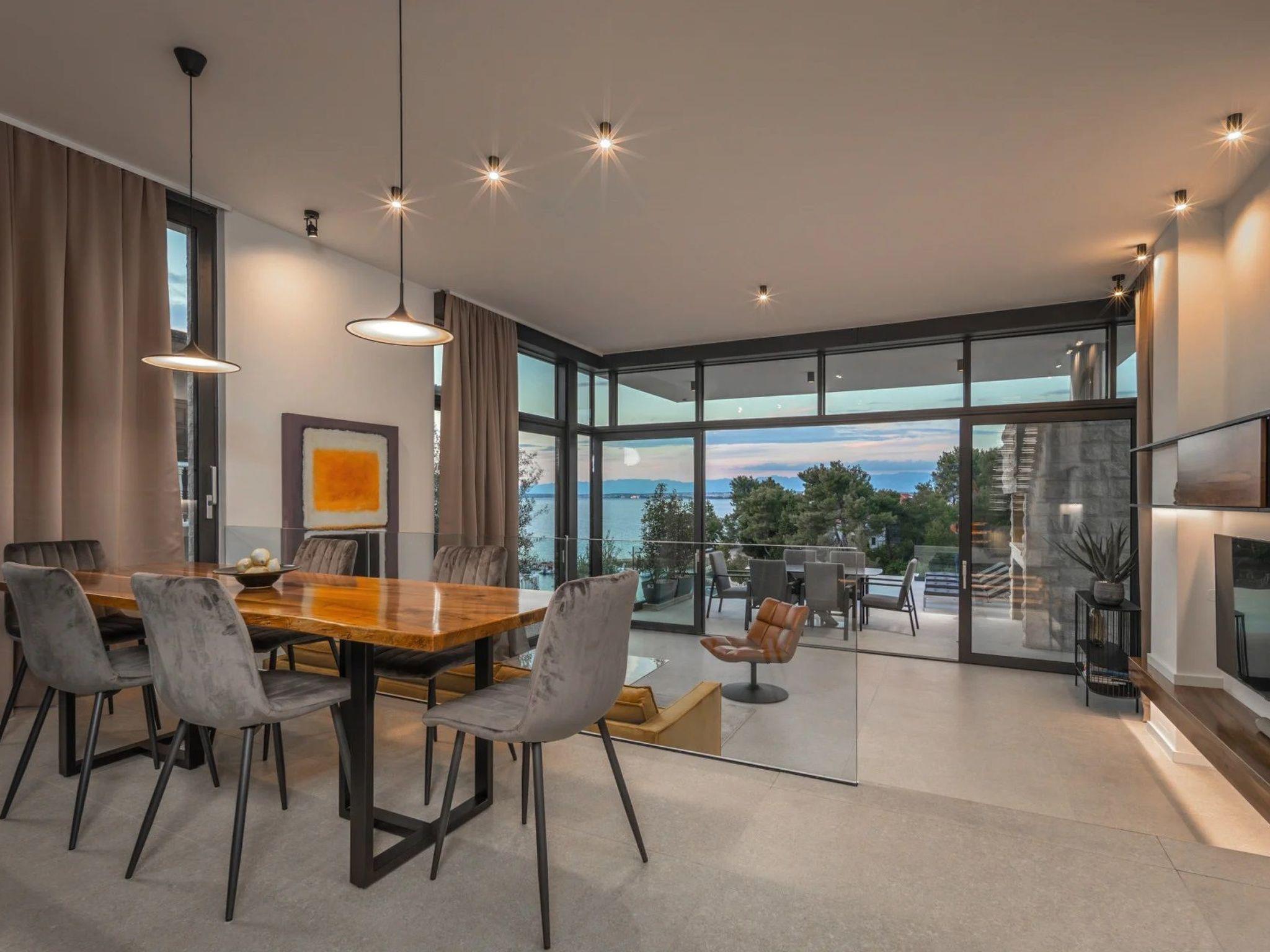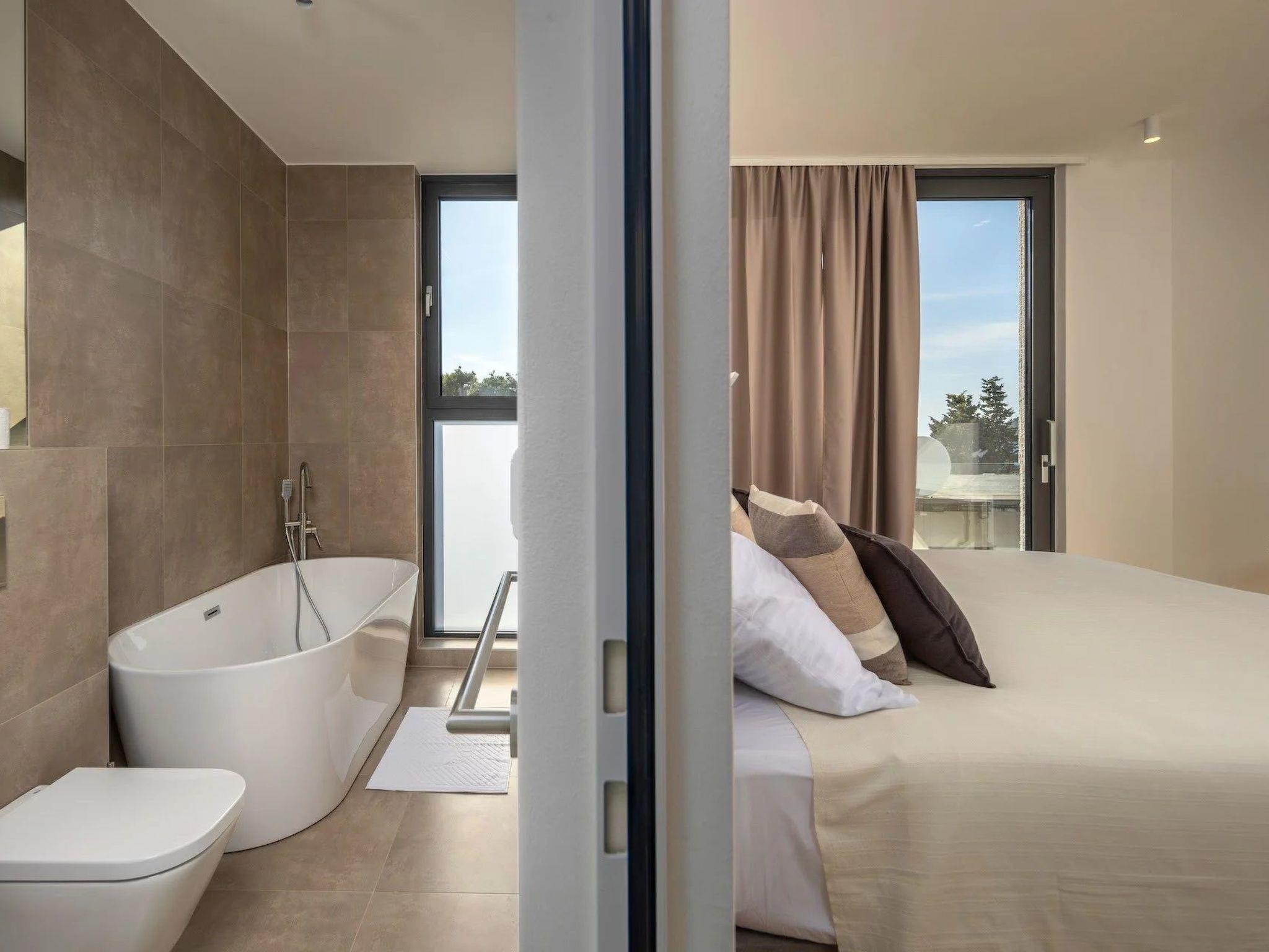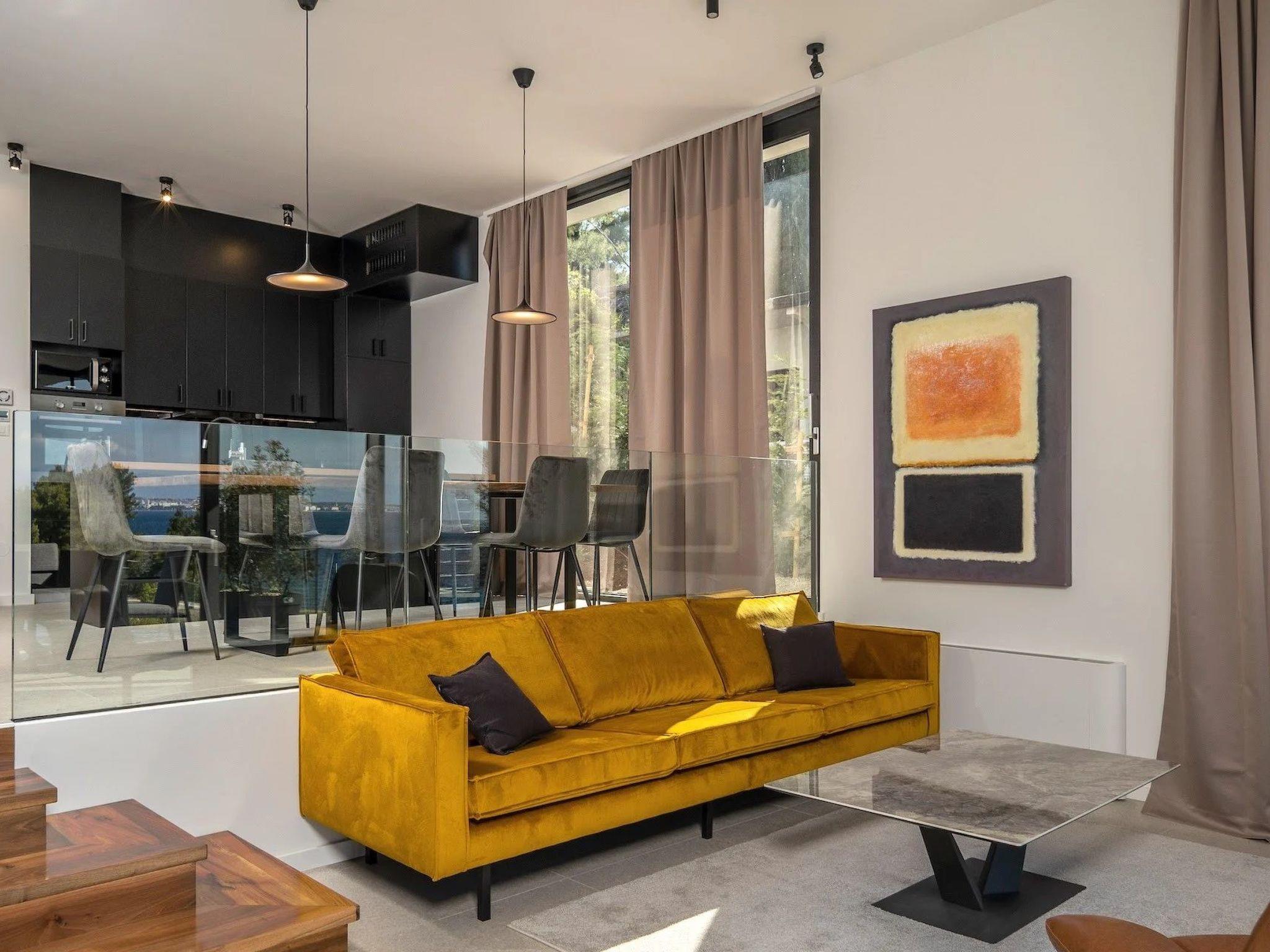 The exterior of the house is just as impressive as its interiors. The highlight is undoubtedly the private infinity pool, a haven for relaxation and enjoyment, flanked by sun loungers for basking in the sun. The terrace offers an al fresco dining area with a BBQ, perfect for enjoying meals under the shade. The garden, reserved solely for the guests' use, houses a children's playground, adding delight for younger visitors.