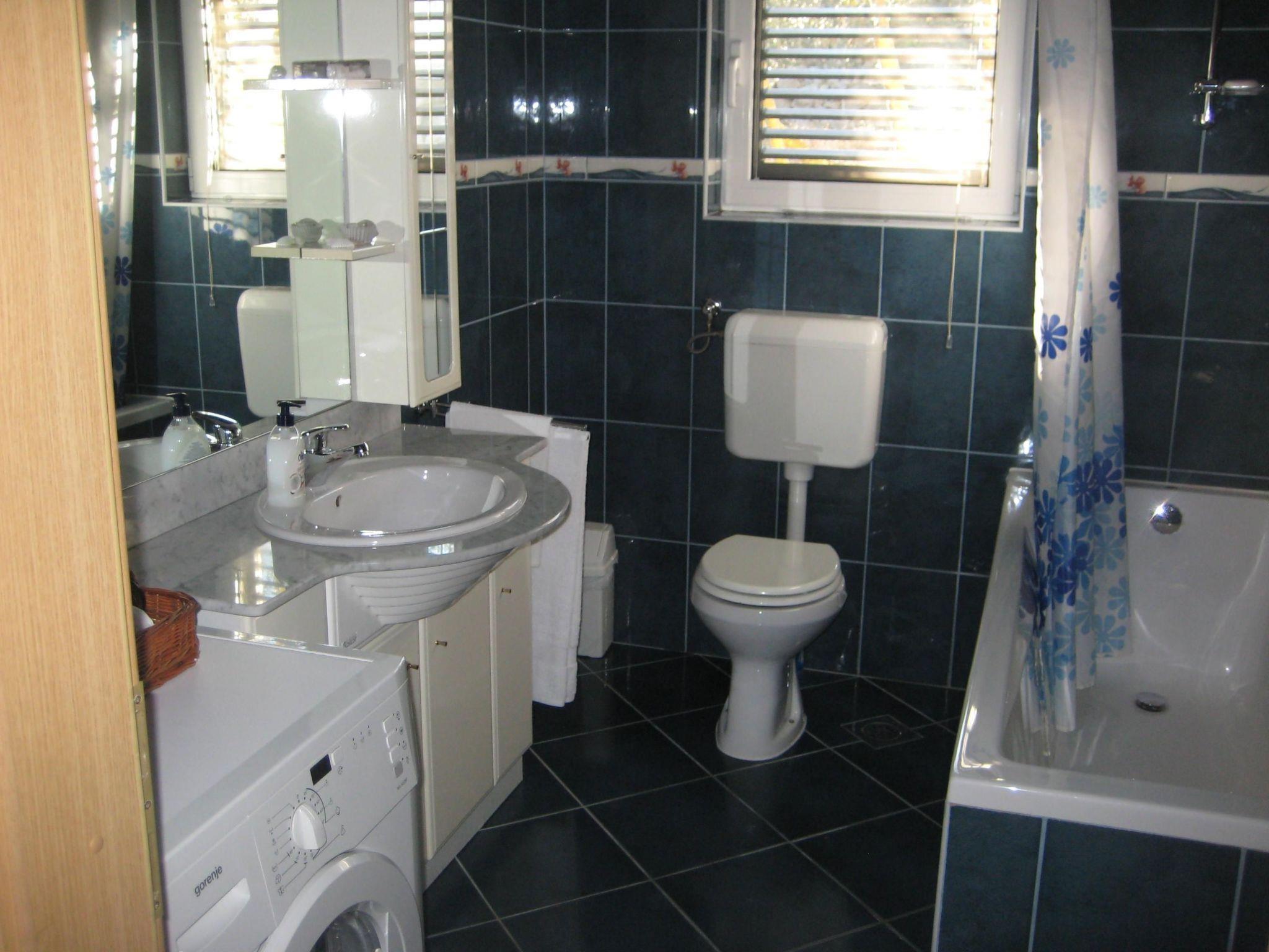 The holiday apartment is on the first floor of a residential house and can accommodate three people. It has a bedroom with a queensize double bed, bedside tables and a wardrobe. The living and dining room has a sofa, two armchairs, a TV with cable channels, a DVD player, a radio, air conditioning and Internet access. It also has a big dining table with six chairs. The open kitchen is fully-equipped with a stove, oven, fridge with freezer compartment, microwave and toaster. The living room looks out towards the terrace and the sea. The bathroom provides a shower bath, hairdryer and washing machine.