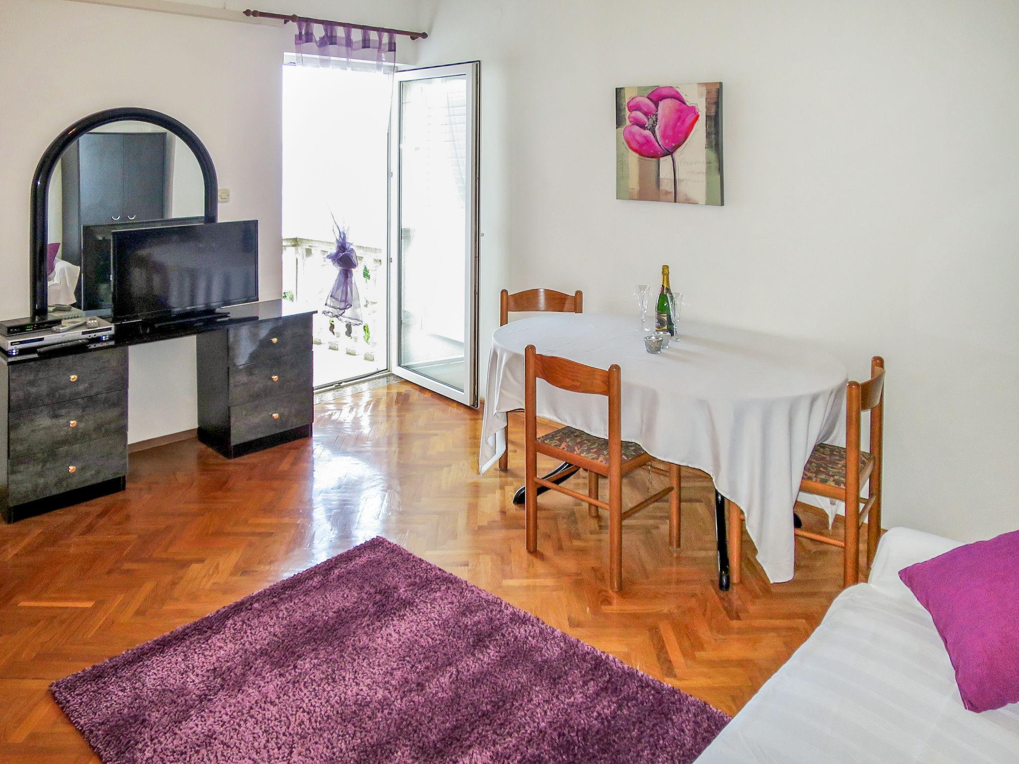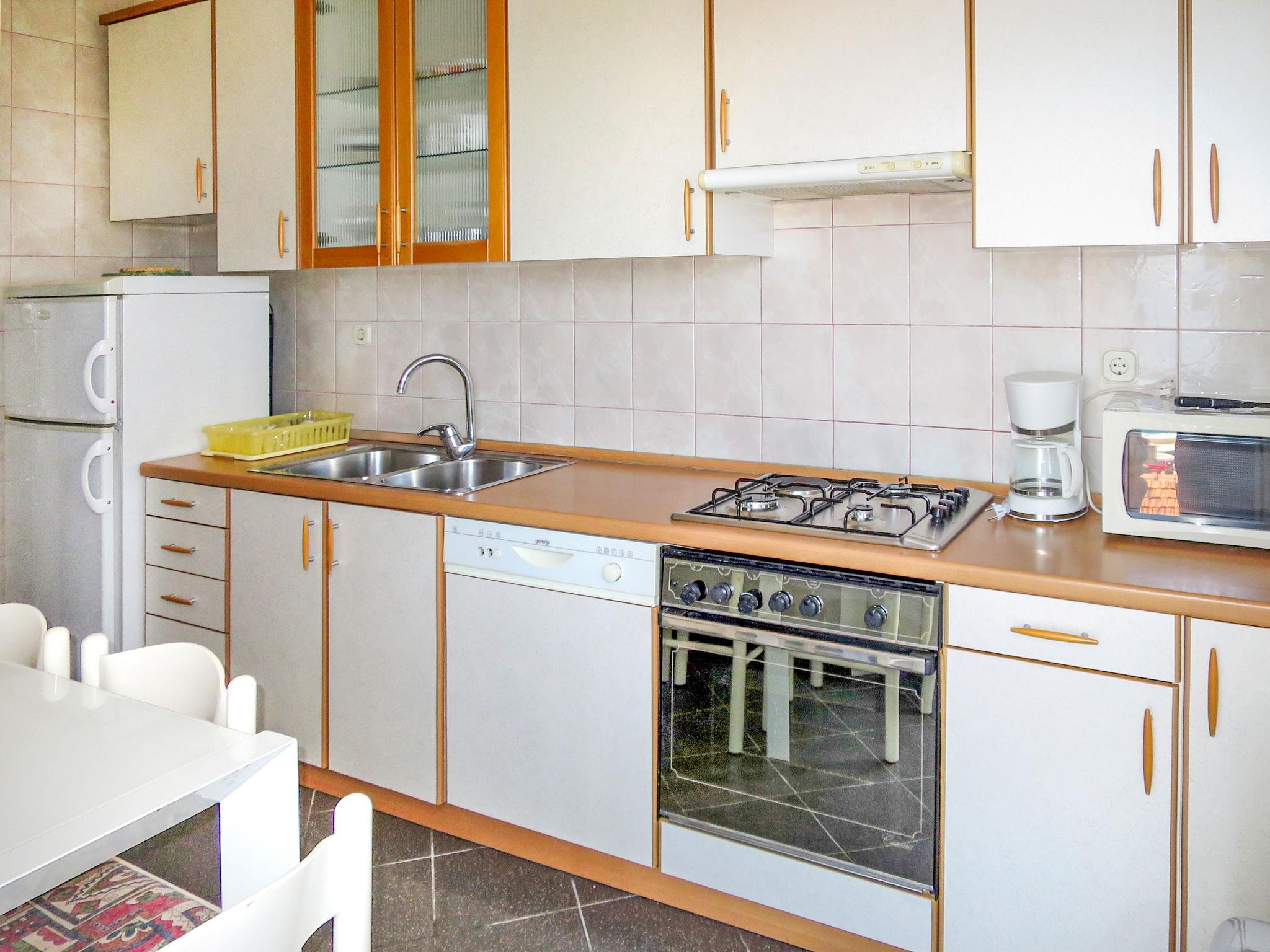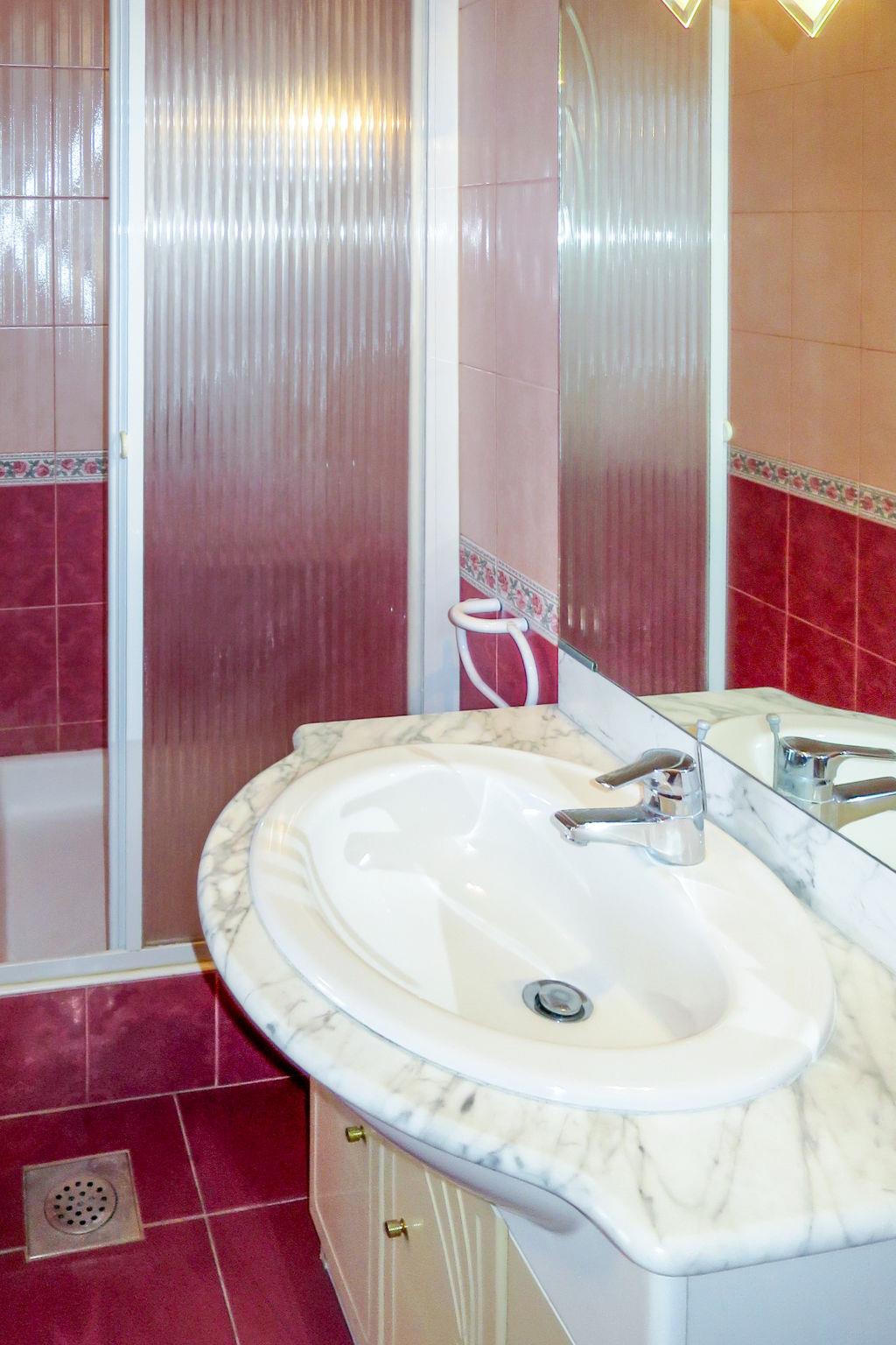 3-room apartment 95 m2 on 1st floor. Living/dining room with 1 double sofabed (150 cm), kitchen corner, shower/WC and satellite TV (flat screen), DVD. Exit to the balcony. Entrance hall with air conditioning. 1 room with 1 french bed, shower/WC and TV. Exit to the balcony. 1 room with 1 double bed and shower/WC. Exit to the balcony. Kitchen (1 hot plate, oven, dishwasher, 3 gas rings, toaster, kettle, microwave, freezer, electric coffee machine) with dining table. Exit to the balcony. No heating option. Balcony. Balcony furniture. View of the sea. Facilities: children's high chair. Internet (WiFi, free). Maximum 1 pet/ dog allowed.