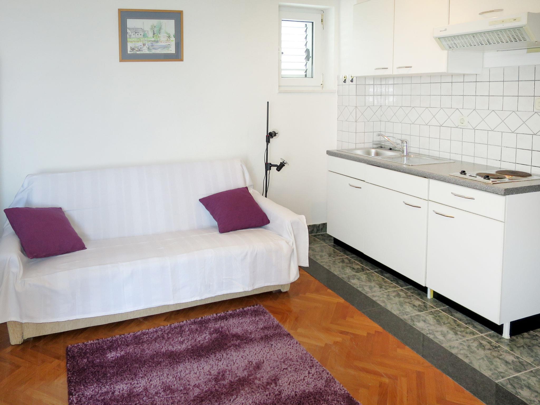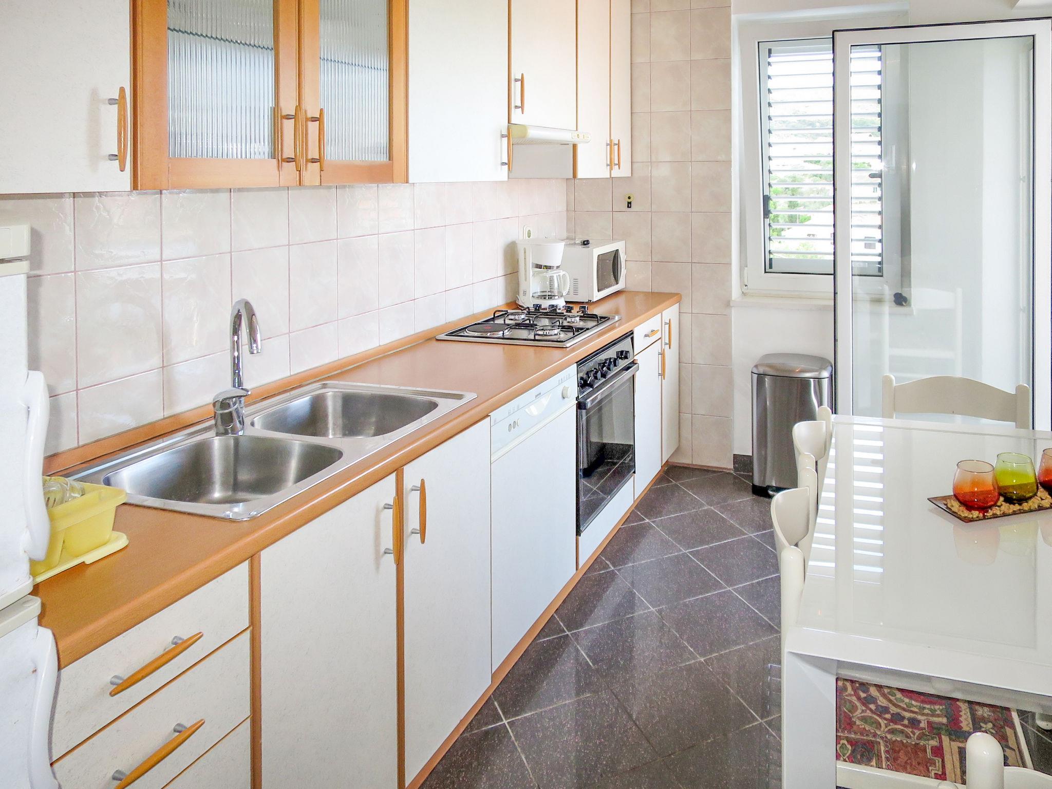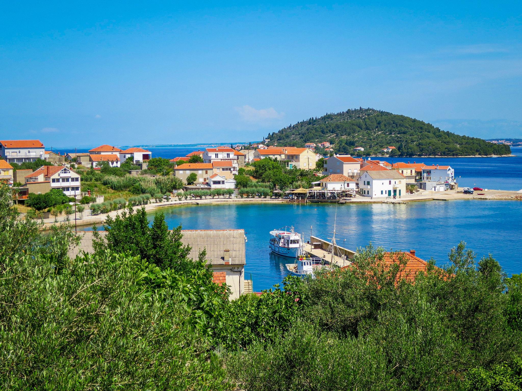 3-family house "Marija". 300 m from the centre of Kali, 4 km from the centre of Preko, on a slope, 100 m from the sea, 100 m from the beach. For shared use: property 350 m2 with plants and flowers. Outdoor shower, barbecue. In the house: internet access, washing machine (for shared use). Steep, narrow motor access to the house. Parking on the premises. Shop 300 m, bus stop 11.5 km, ferry 3 km, pebble beach, rocky beach 100 m. Please note: the owner lives in the same residence. Airfield 19 km from the property.