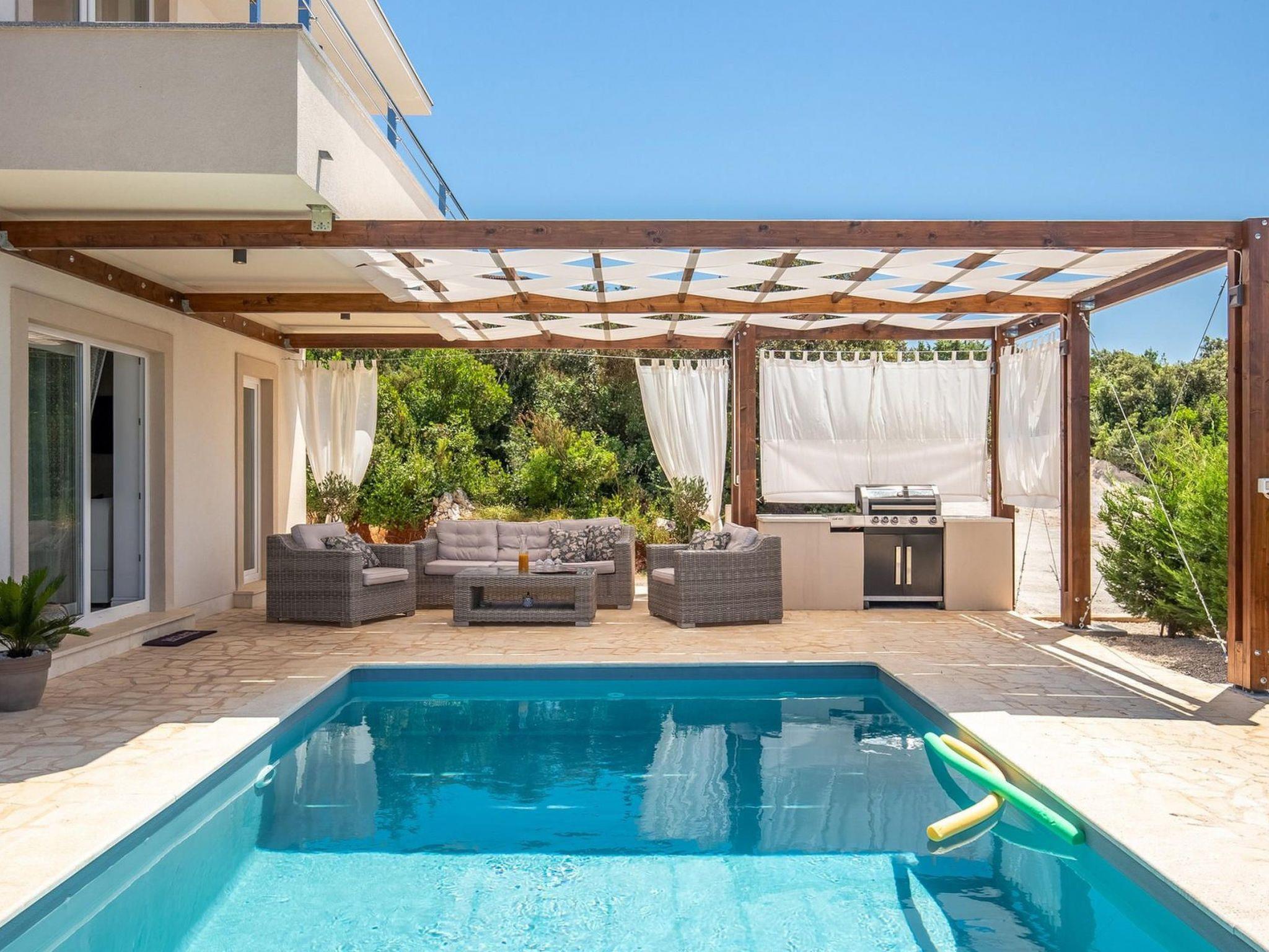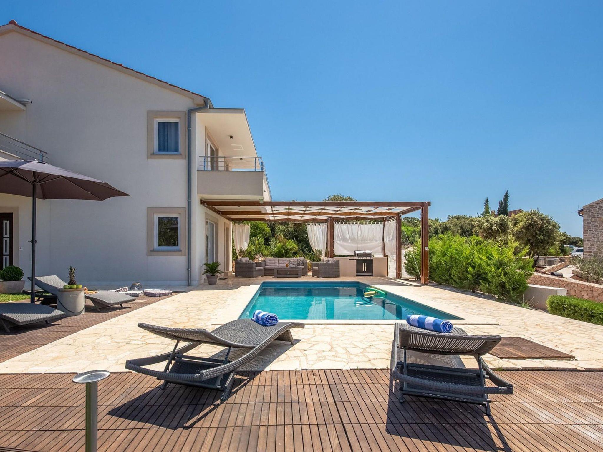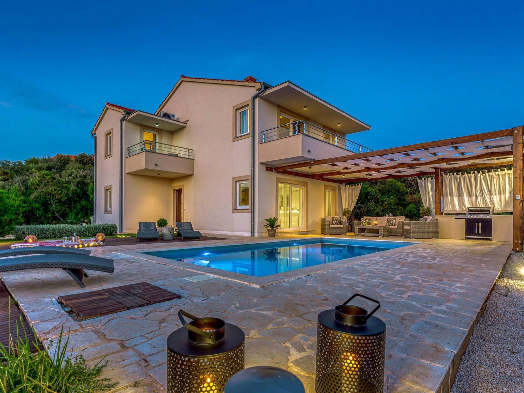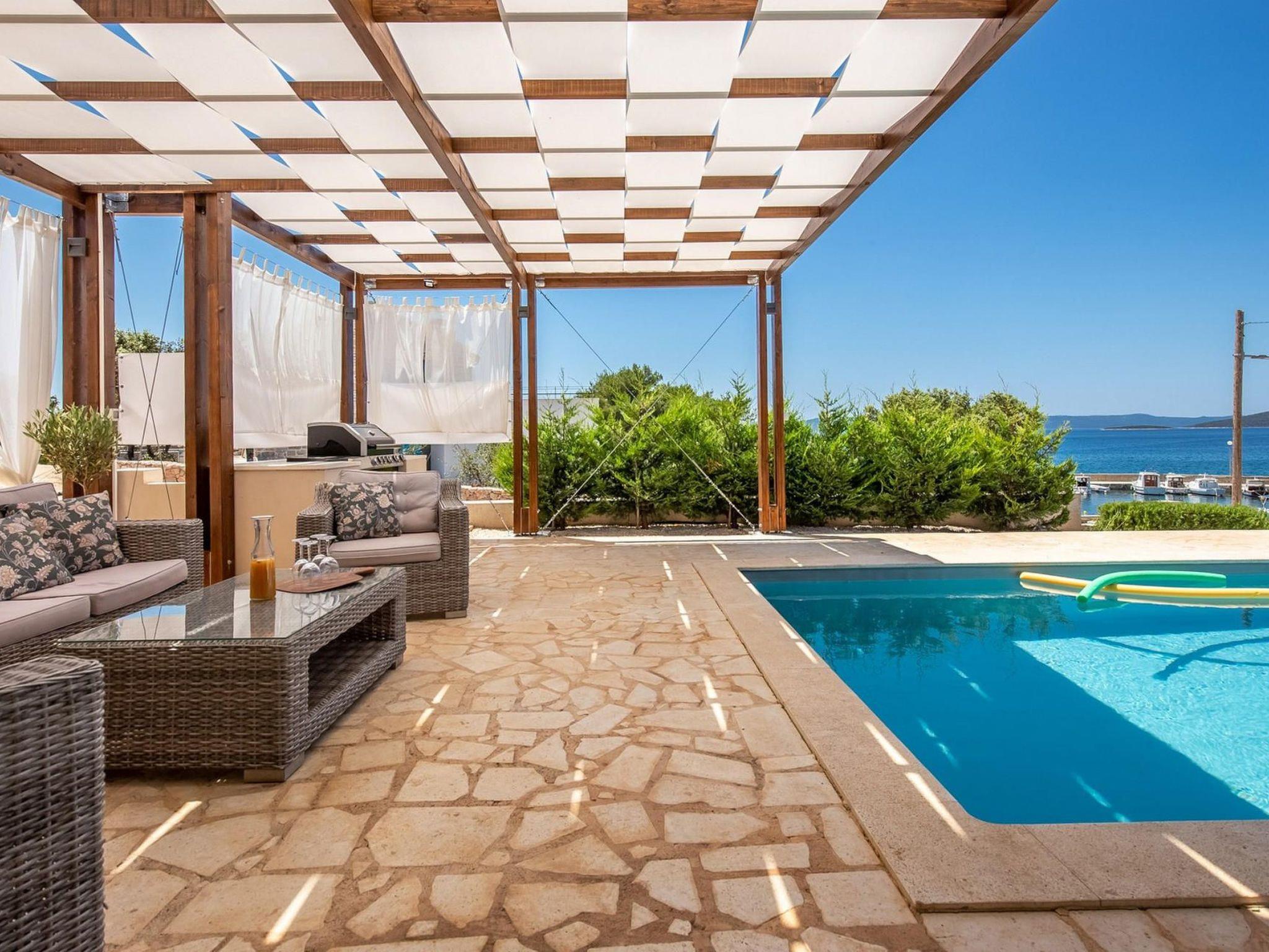 Villa Gellia. It is located in the Zadar archipelago on the island of Ugljan, 20 meters from the sea in a peaceful environment. The island of Ugljan is called the green island, covered with pines, olives, figs, and vines, and is ideal for all lovers of natural beauty.The villa is located in an ideal position, created for enjoying the charms of nature and the beauty of the sea that surrounds it. The panoramic view from the villa will take your breath away every morning.It was built in 2017 and since then it has been serving the owners and satisfied guests who return again and again to enjoy the charms of summer in this magical location.On its 180m2, this villa contains three spacious bedrooms with double beds, one children's bedroom, three beautiful bathrooms, one separate toilet, a modern kitchen and a living room. The lounge area around the pool with barbecue covered by a pergola offers complete privacy with an incredible view of the sunset.