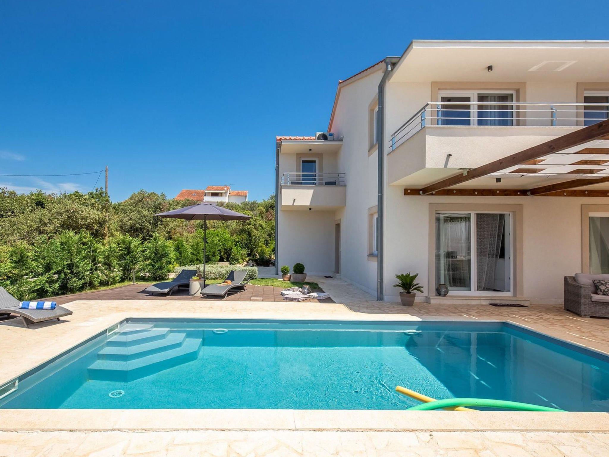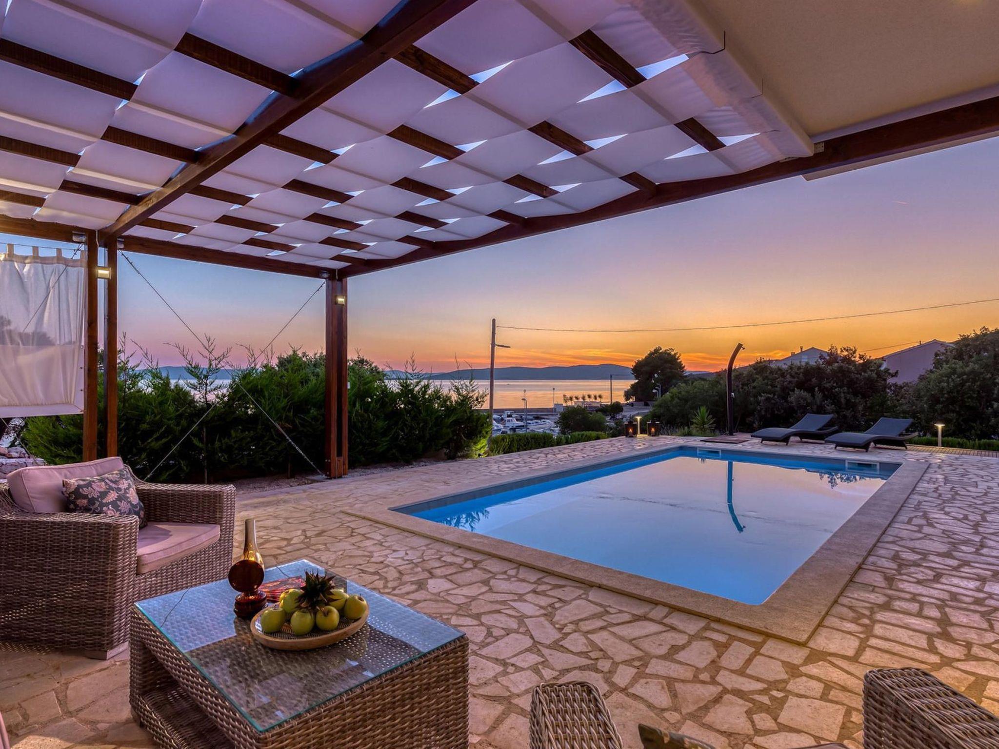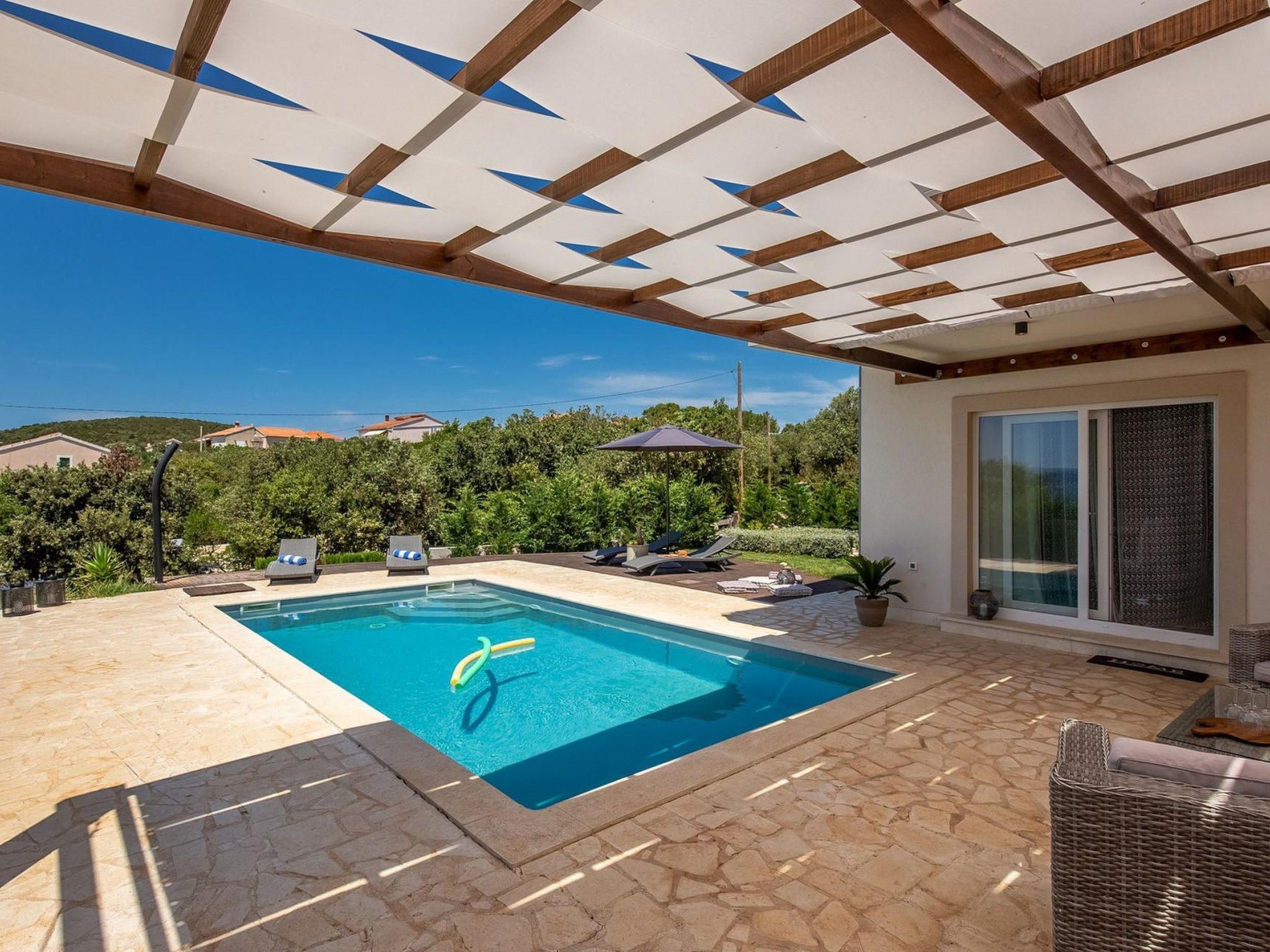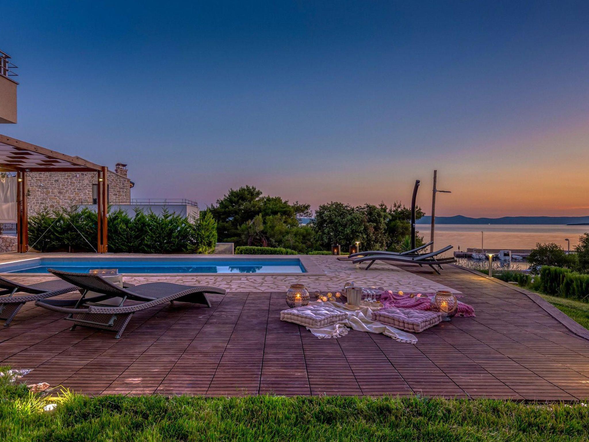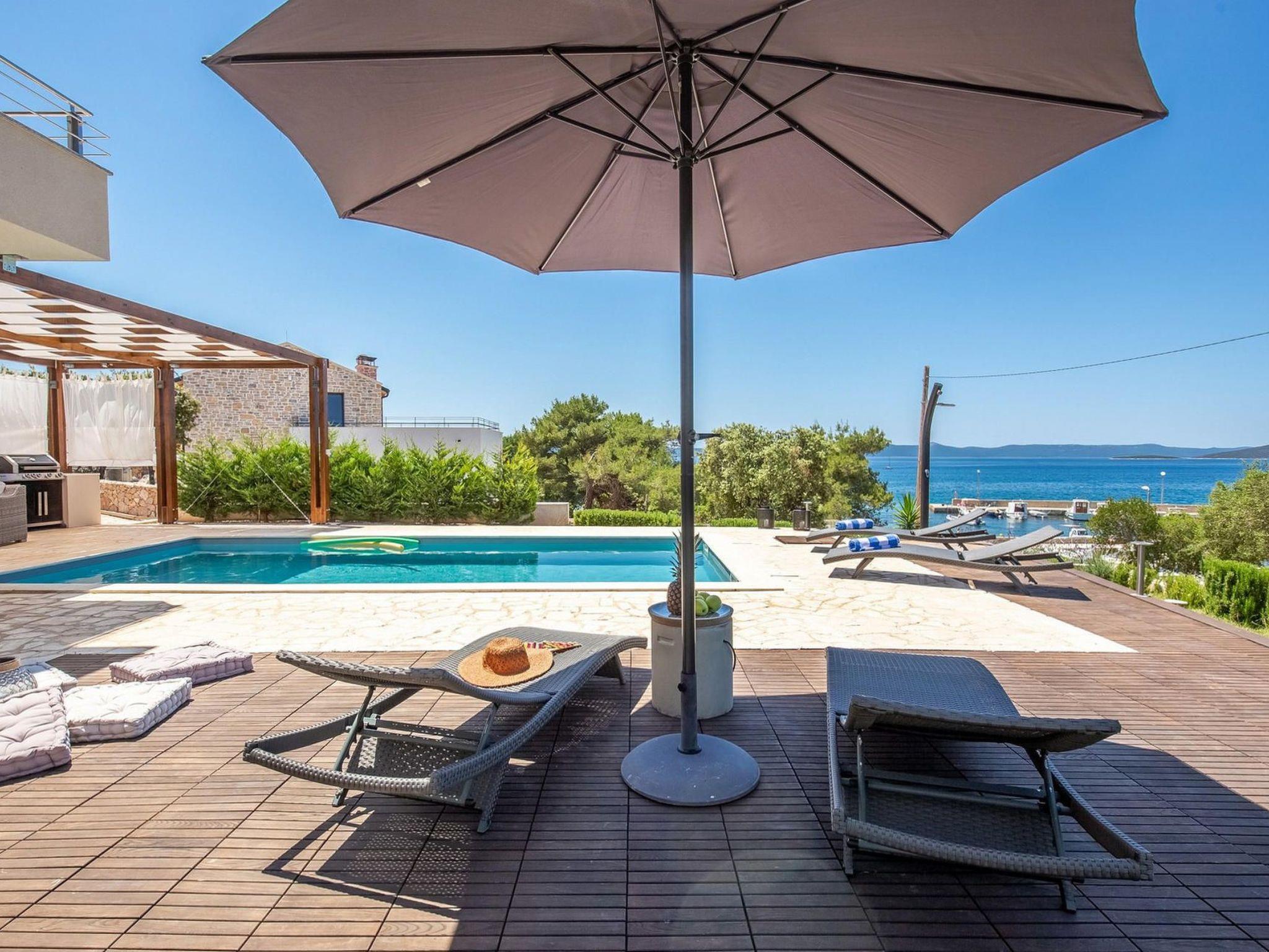 Villa Gellia. It is located in the Zadar archipelago on the island of Ugljan, 20 meters from the sea in a peaceful environment. The island of Ugljan is called the green island, covered with pines, olives, figs, and vines, and is ideal for all lovers of natural beauty.The villa is located in an ideal position, created for enjoying the charms of nature and the beauty of the sea that surrounds it. The panoramic view from the villa will take your breath away every morning.It was built in 2017 and since then it has been serving the owners and satisfied guests who return again and again to enjoy the charms of summer in this magical location.On its 180m2, this villa contains three spacious bedrooms with double beds, one children's bedroom, three beautiful bathrooms, one separate toilet, a modern kitchen and a living room. The lounge area around the pool with barbecue covered by a pergola offers complete privacy with an incredible view of the sunset.