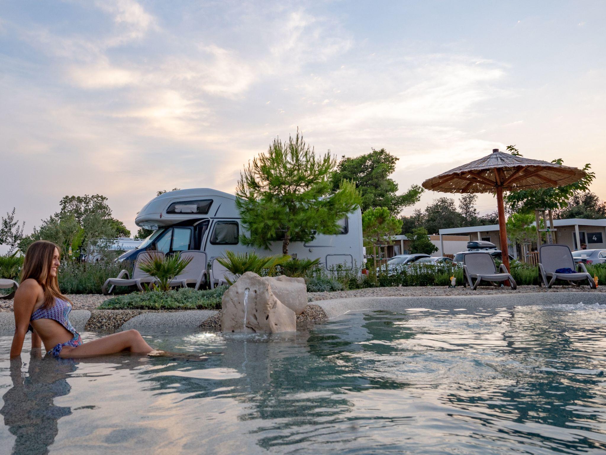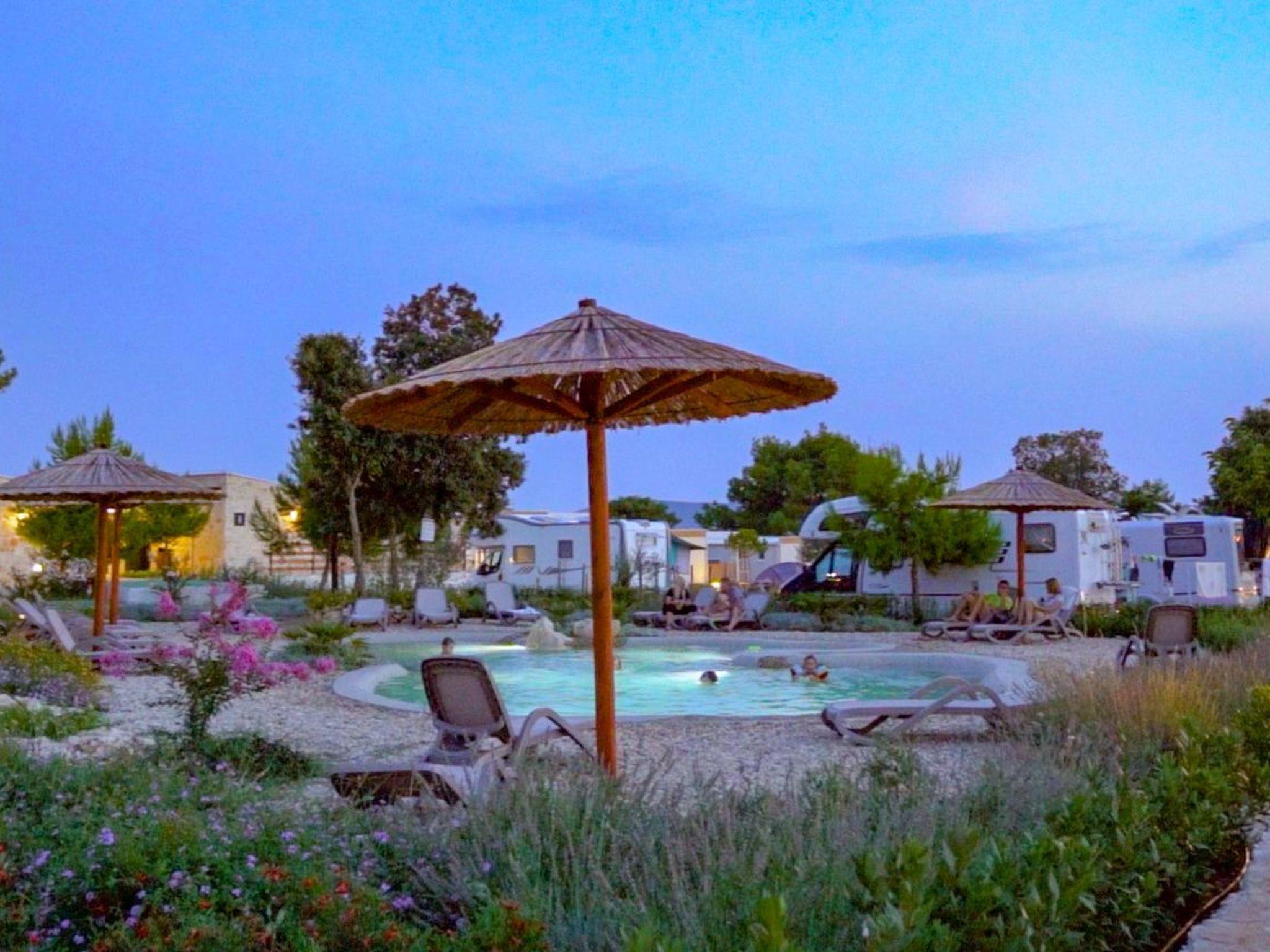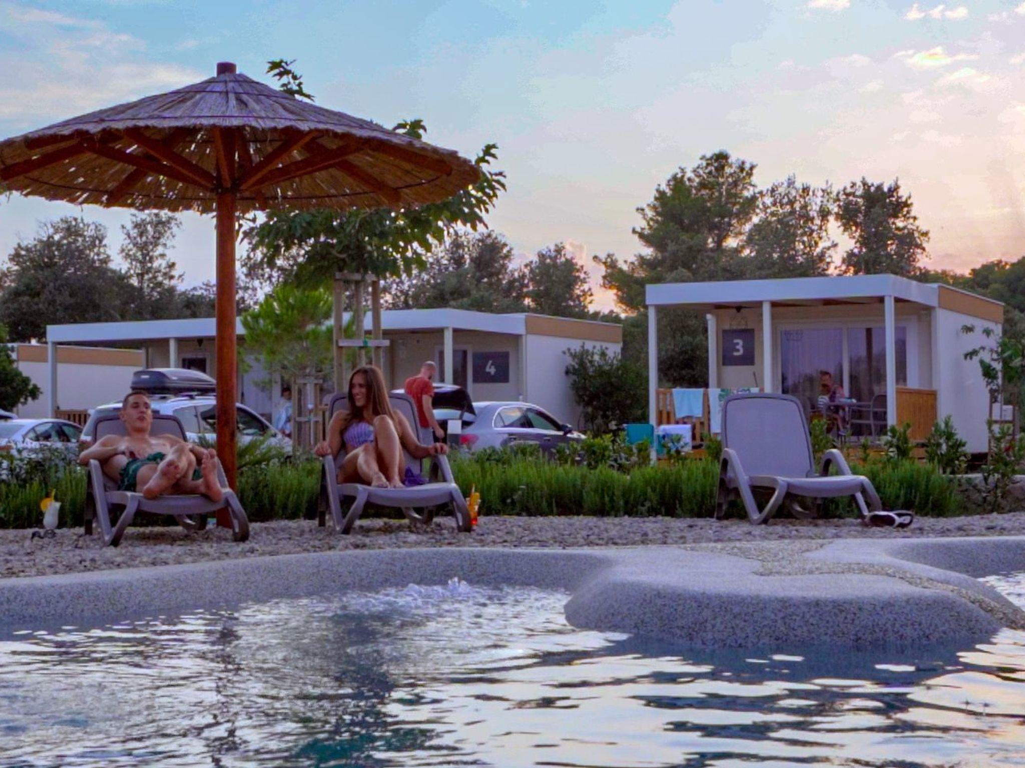 Camping Ugljan is resort in Croatia, on island Ugljan situated on Dalmatian coast, only 20 minutes from Zadar by ferry. Resort is new, 4* with heated outdoor pool, XL 40 m2 premium mobile homes each with additional 30 m2 covered terrace. Mobile homes are situated very close to the sea and there are 3 types: 2-bedroom and 3-bedroom, each with 2 bathrooms and studio with 1 bathroom.