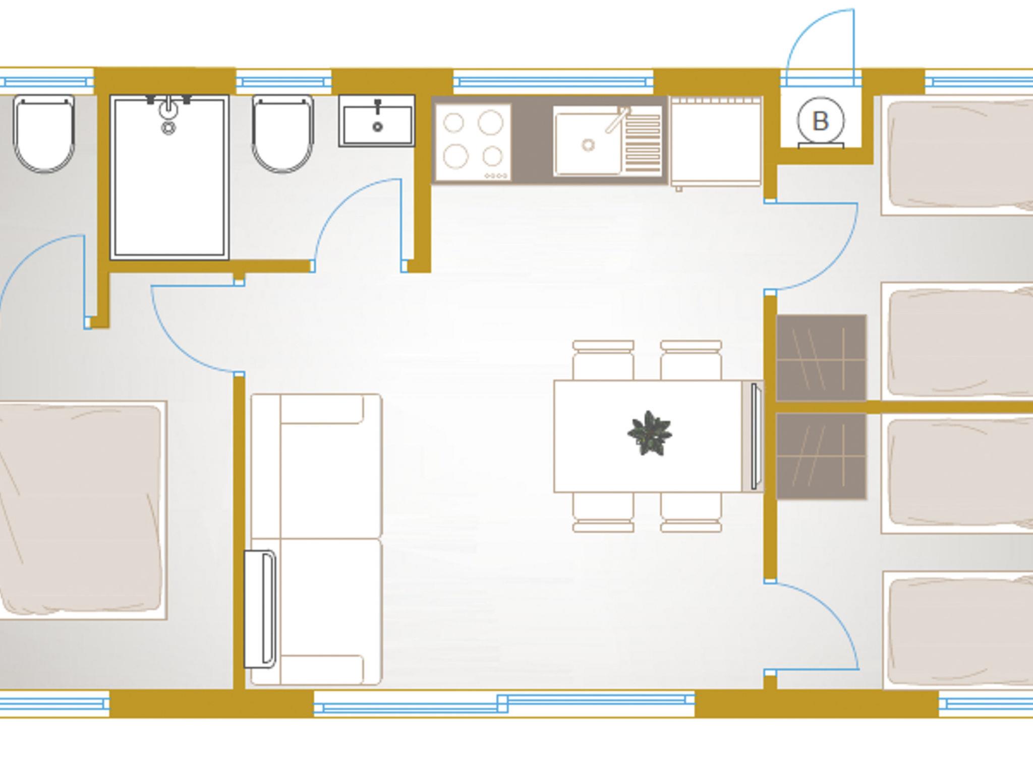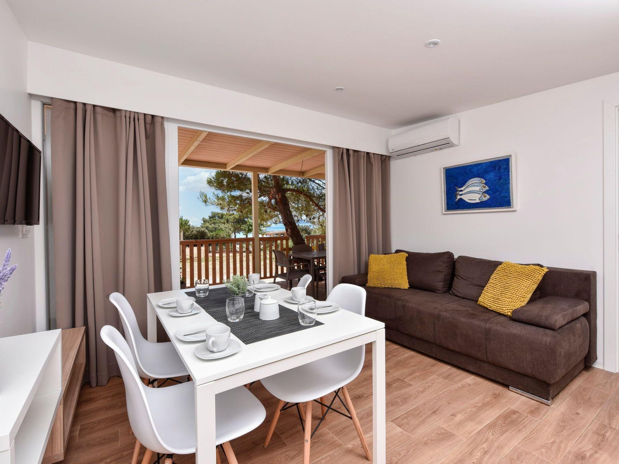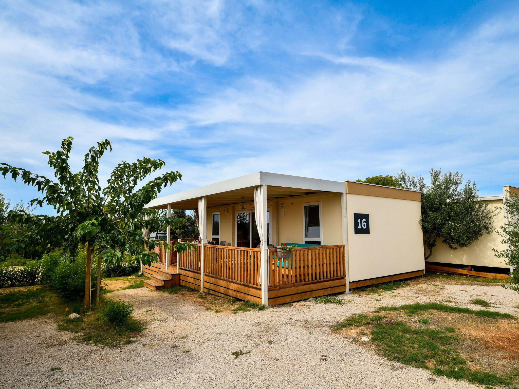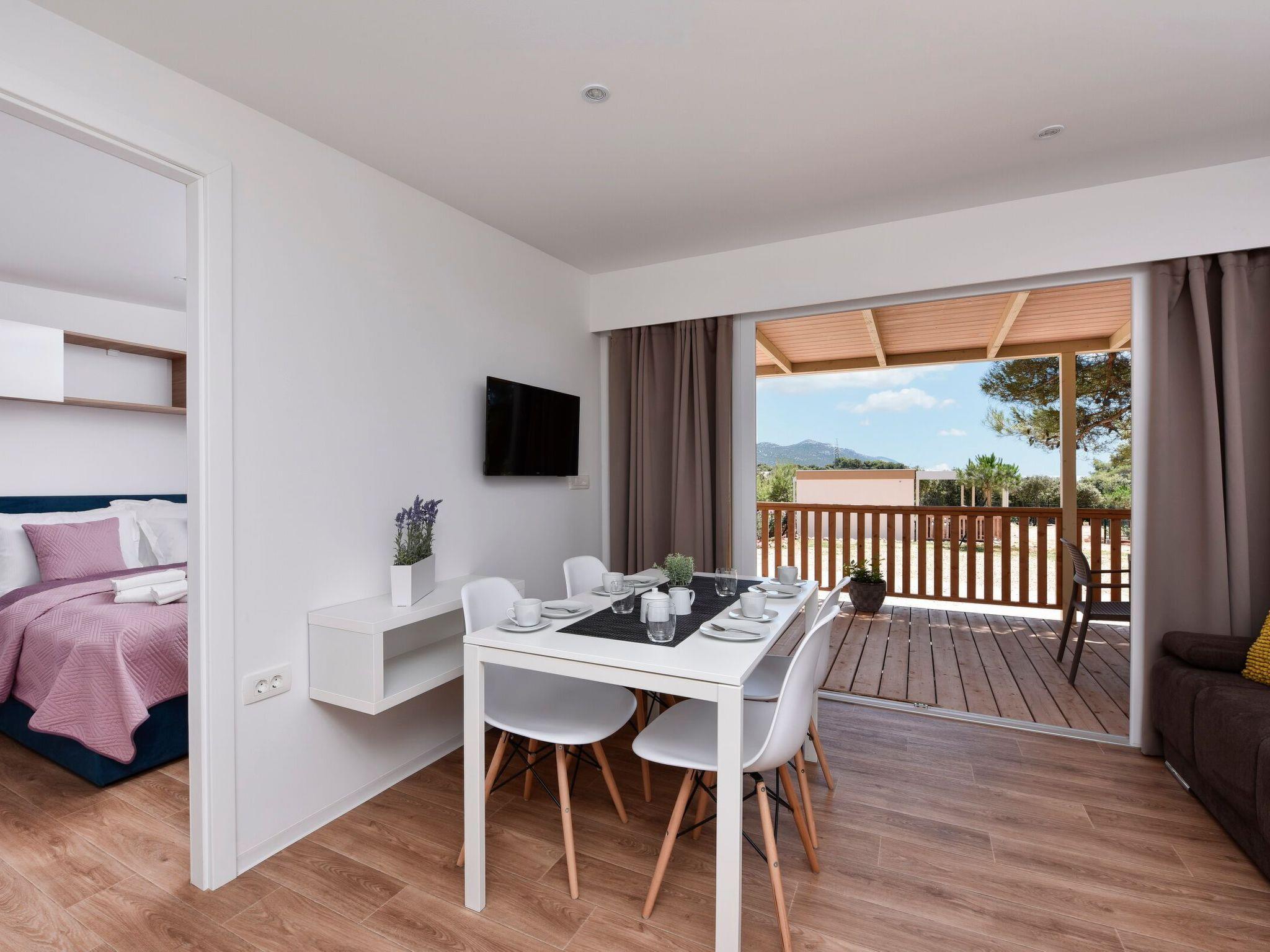 Mobile homes are situated in 4* Camping Ugljan Resort in quite area on sooth west part of Island Ugljan. Mobile homes are situated 10-80 m from the heated outdoor pool and 10-110 m from the beach. Each mobile home has 40 m2 with additional 30 m2 covered terrace and they have 3 bedrooms (one with queen bed and two with 2 single beds) and 2 bathrooms plus sofa in the leaving room- total 6 + 2 beds.