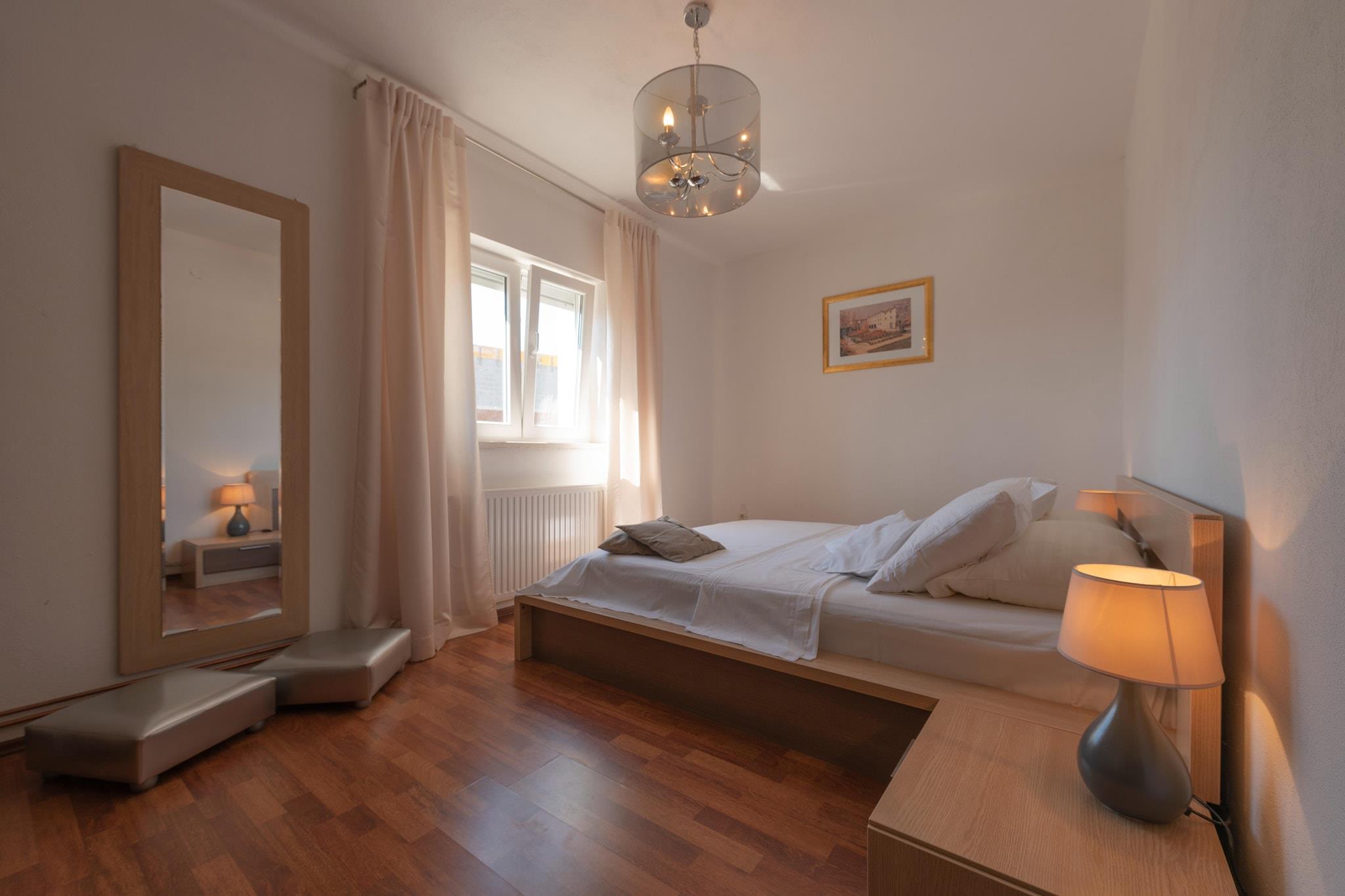 Flygt til Ugljane i denne kæledyrsvenlige villa til seks gæster, der tilbyder en fredelig ferie omgivet af natur. Beliggende kun 5 km fra en smuk sø og 26 km fra Adriaterhavet, tilbyder denne villa den perfekte balance mellem afslapning og eventyr. Med restauranter og almindelige forsyninger inden for 1 km er bekvemmeligheden lige ved døren. Indenfor har villaen en rummelig opholdsstue med fladskærms-tv, dvd-afspiller og internationale kanaler, et fuldt udstyret åbent køkken med moderne apparater og tre hyggelige soveværelser med dobbeltsenge og enkeltdyner. Gæsterne kan slappe af på den private terrasse, tage en forfriskende dukkert i den store private swimmingpool eller nyde udendørs spisning med grill og loungesæt. Yderligere faciliteter inkluderer aircondition, varme, vaskemaskine og en petanquebane til underholdning. I nærheden kan du udforske Mirabella-fæstningen, en historisk fæstning i Omiš med en betagende udsigt, eller besøge Cetina-kløften, perfekt til rafting og vandreture i naturen. Konoba Tin i Trilj serverer autentisk dalmatisk køkken, mens Pirates Kitchen i Omiš tilbyder frisk fisk og skaldyr med et lokalt twist. Uanset om du søger eventyr eller afslapning, er denne villa det ideelle tilflugtssted.