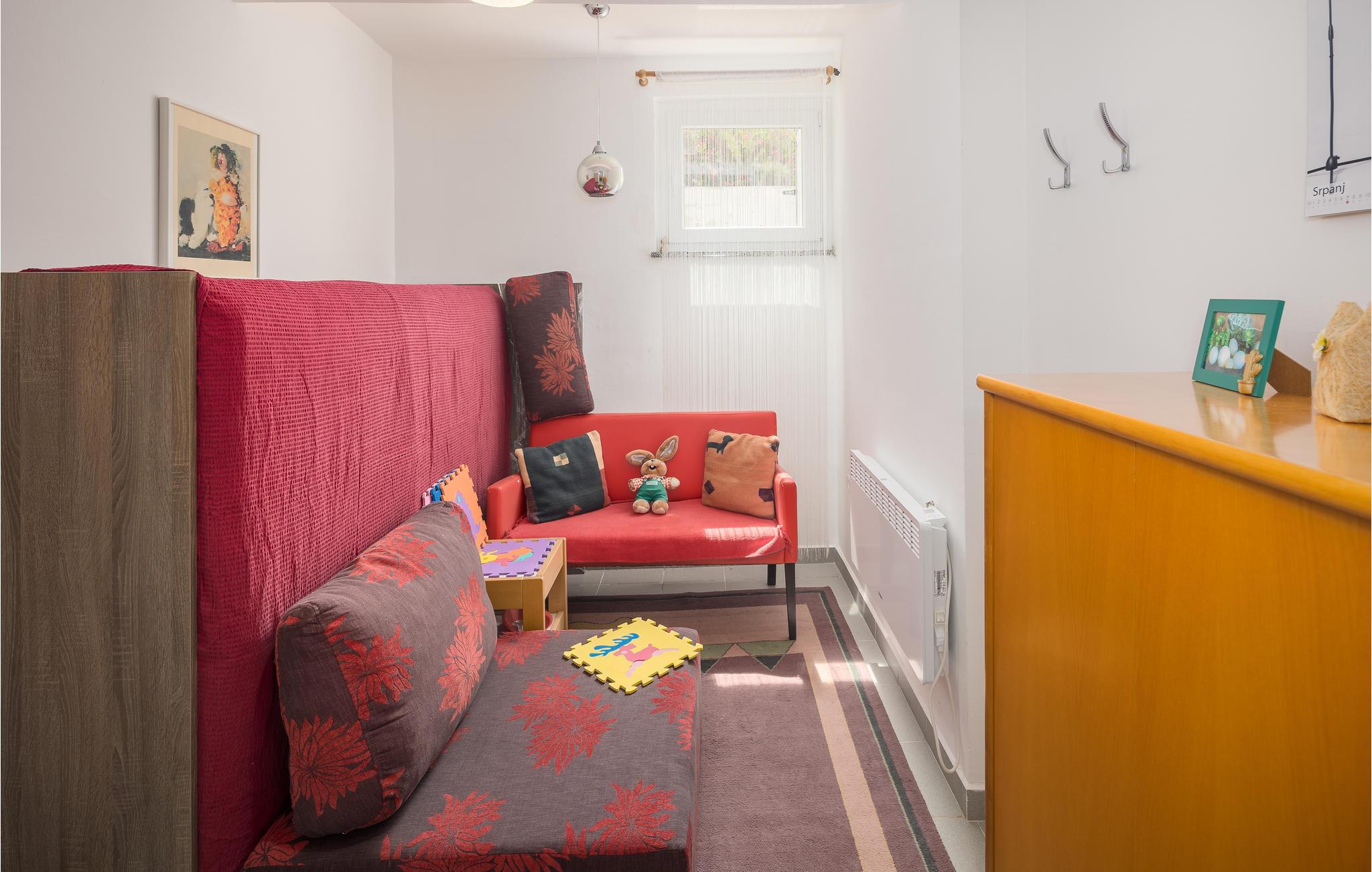 Det indbydende hus har en smuk beliggenhed direkte ved havet. Forkæl jer selv med en velfortjent pause med familien og nyd den flotte udsigt over Piran-bugten. Den hjemlige indretning i ildrøde toner sikrer, at I føler jer hjemme her. Efter en aktiv dag fyldt med oplevelser i området og en god middag, kan I finde jer godt tilpas sammen i sofaen og sidde behageligt sammen i lang tid.