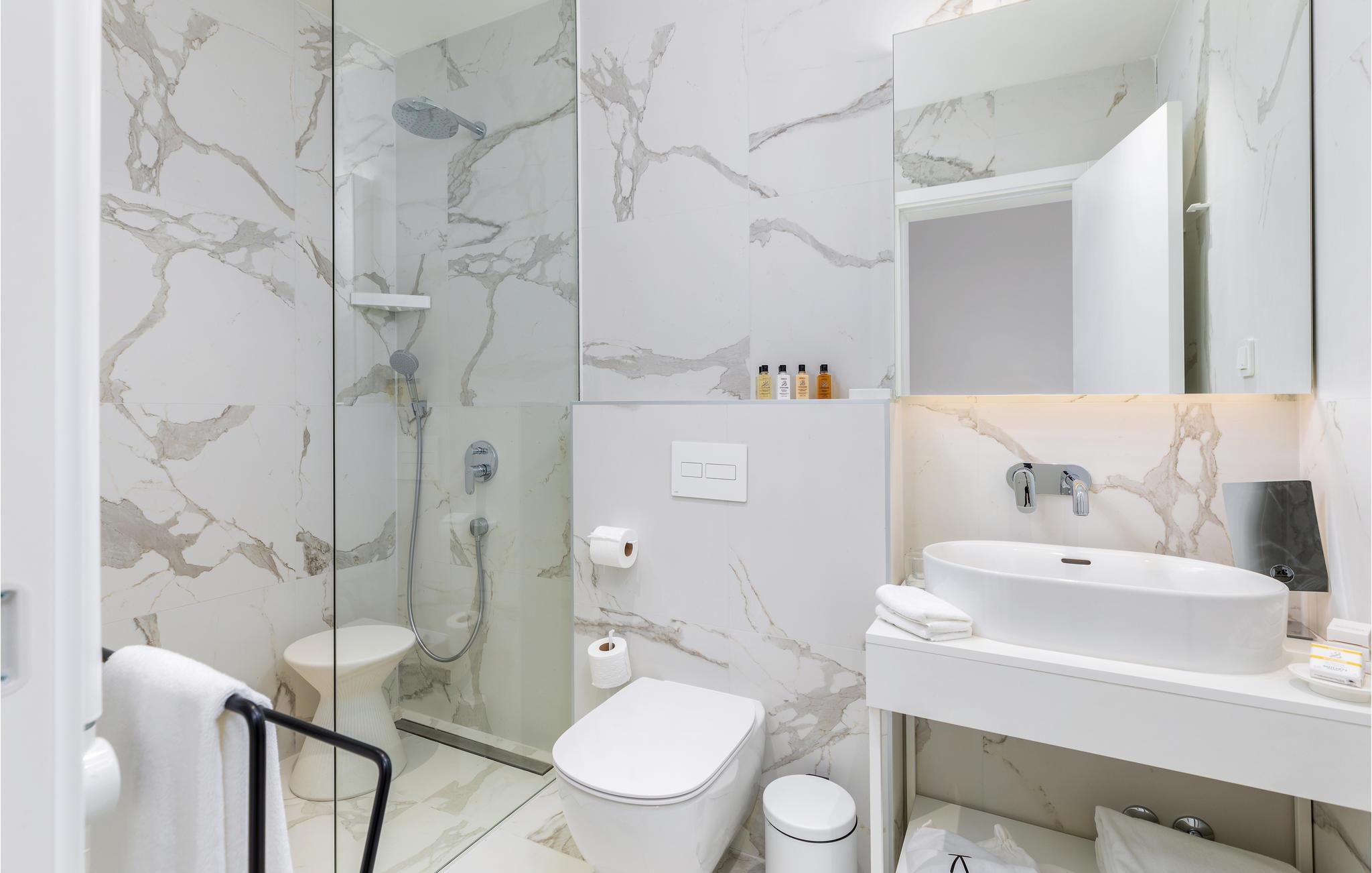 Badeværelse 6m2 (nr. 3) - WC. Varmt og koldt vand. Bruser