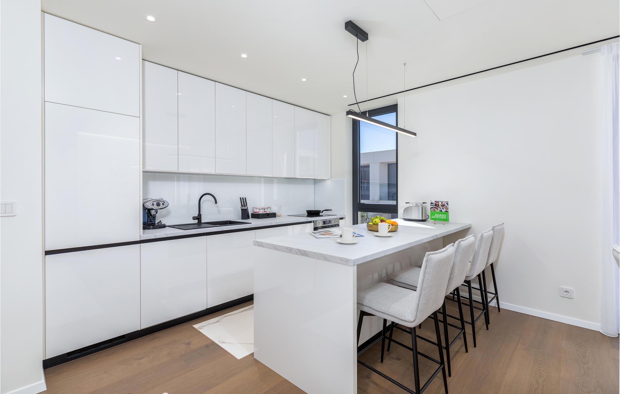 Velkommen til dette helt igennem flotte dobbelthus, som emmer af kvalitetsløsninger og desuden har den skønneste beliggenhed ved Piran Golfen. Den rolige farveskala og de moderne faciliteter gør det nemt at slappe af. Her kan I rigtig restituere efter en lang dag på farten.
