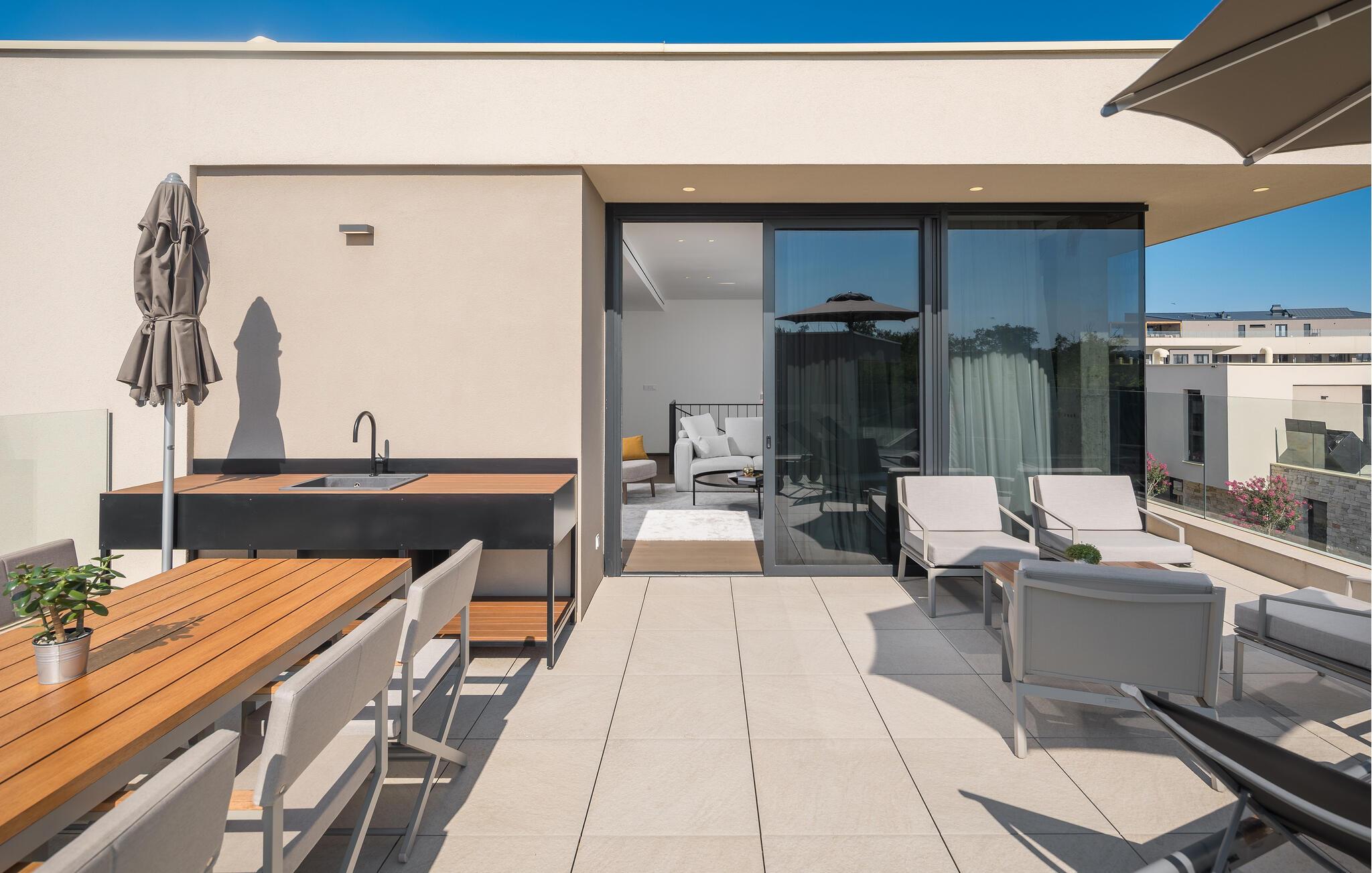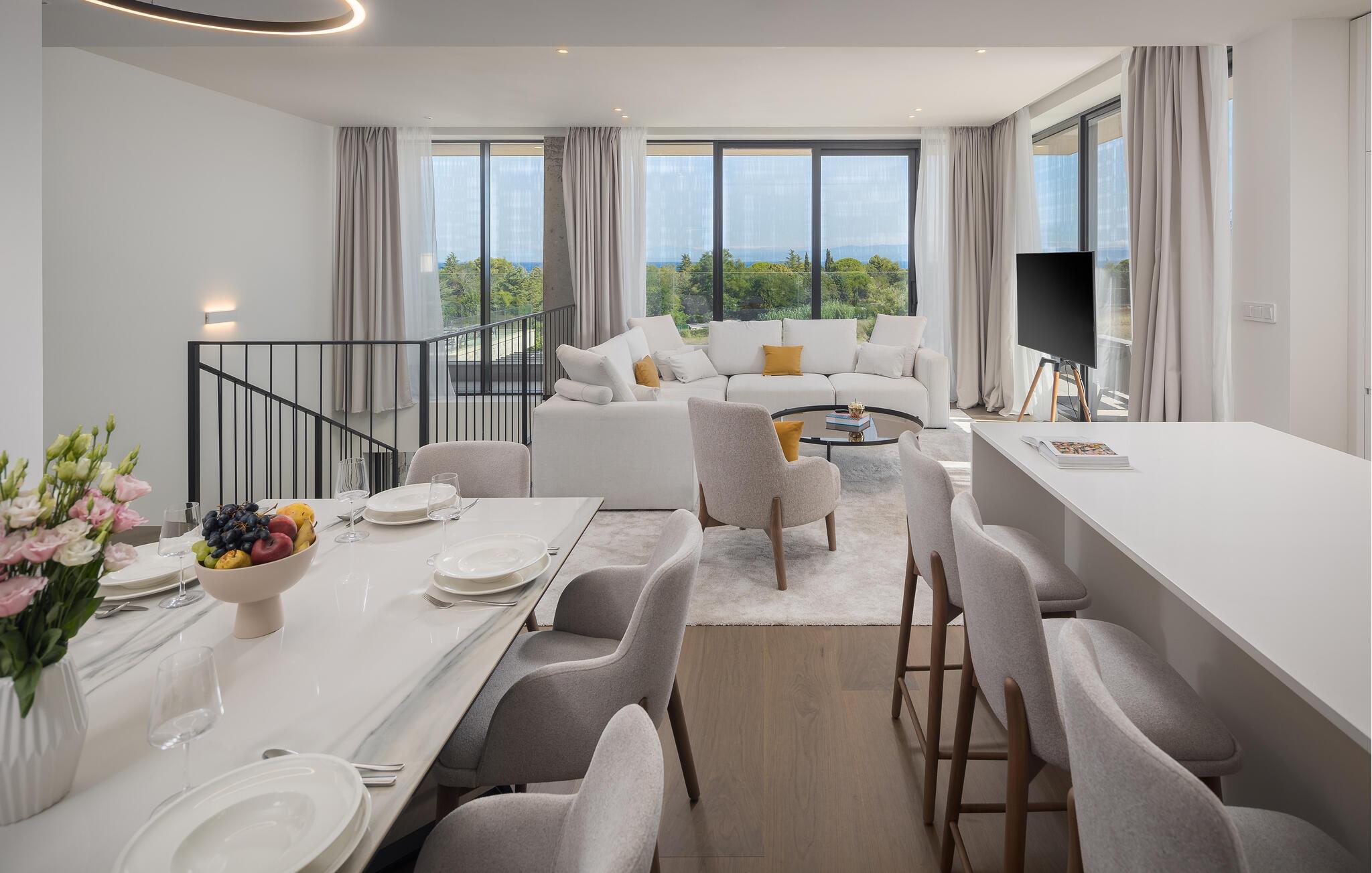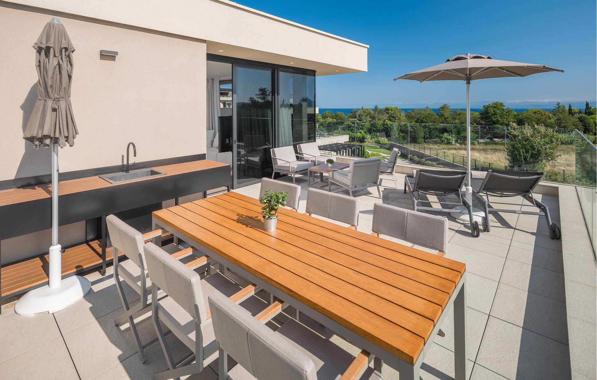Nyd en luksuriøs pause i en af de smukkeste regioner i Kroatien. Den moderne arkitektur og den elegante indretning af jeres feriehus i Crveni Vrh giver jer maksimal komfort, mens den rummelige udendørs terrasse med liggestole indbyder til afslappende timer. Lad blikket vandre ud over havet og nyd den friske havbrise. Den lyse og rummelige stue med store vinduer skaber en behagelig atmosfære, perfekt til hyggelige aftener med familien eller venner.