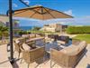 Det luksuriøse interiør fortsætter udenfor. Her kan I slappe af i solen og skyggen, bade i solen på liggestolene ved poolen og tilberede jeres livretter på grillen om aftenen. Her finder I kort sagt alt, hvad I behøver til den ideelle ferieafslapning.