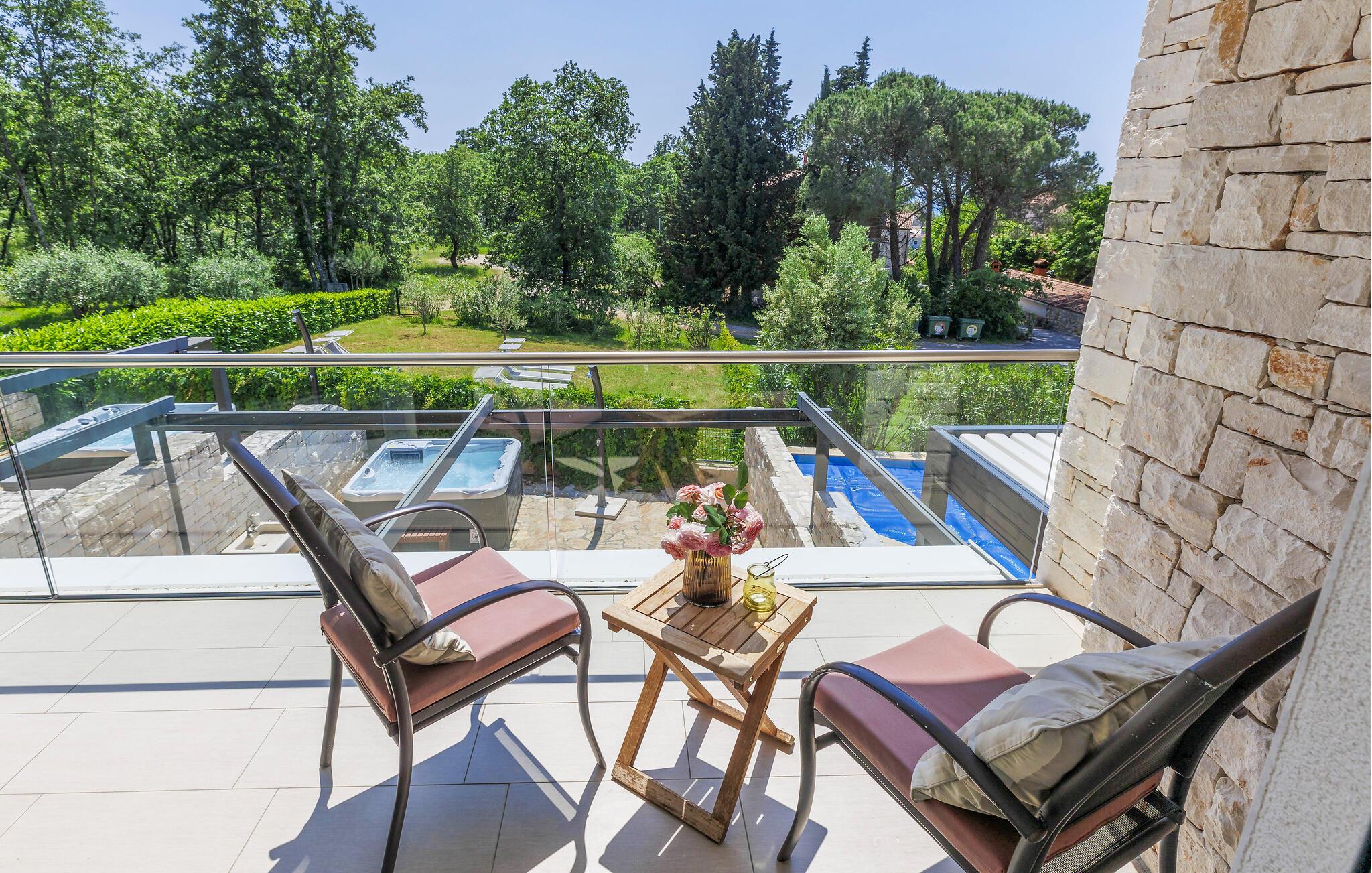 Åbn terrassedøren om morgenen og nyd den betagende udsigt over det glitrende blå vand. snup en frisk dukkert i spabadet og slap derefter af med en kølig drink på en liggestol i den frodige have. Om aftenen kan I samle familie eller venner omkring grillen og afslutte dagen i en afslappet atmosfære.