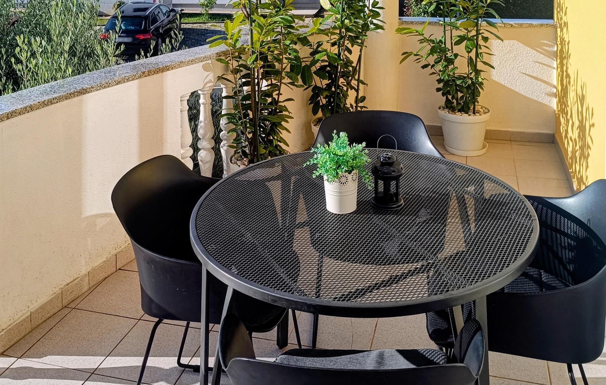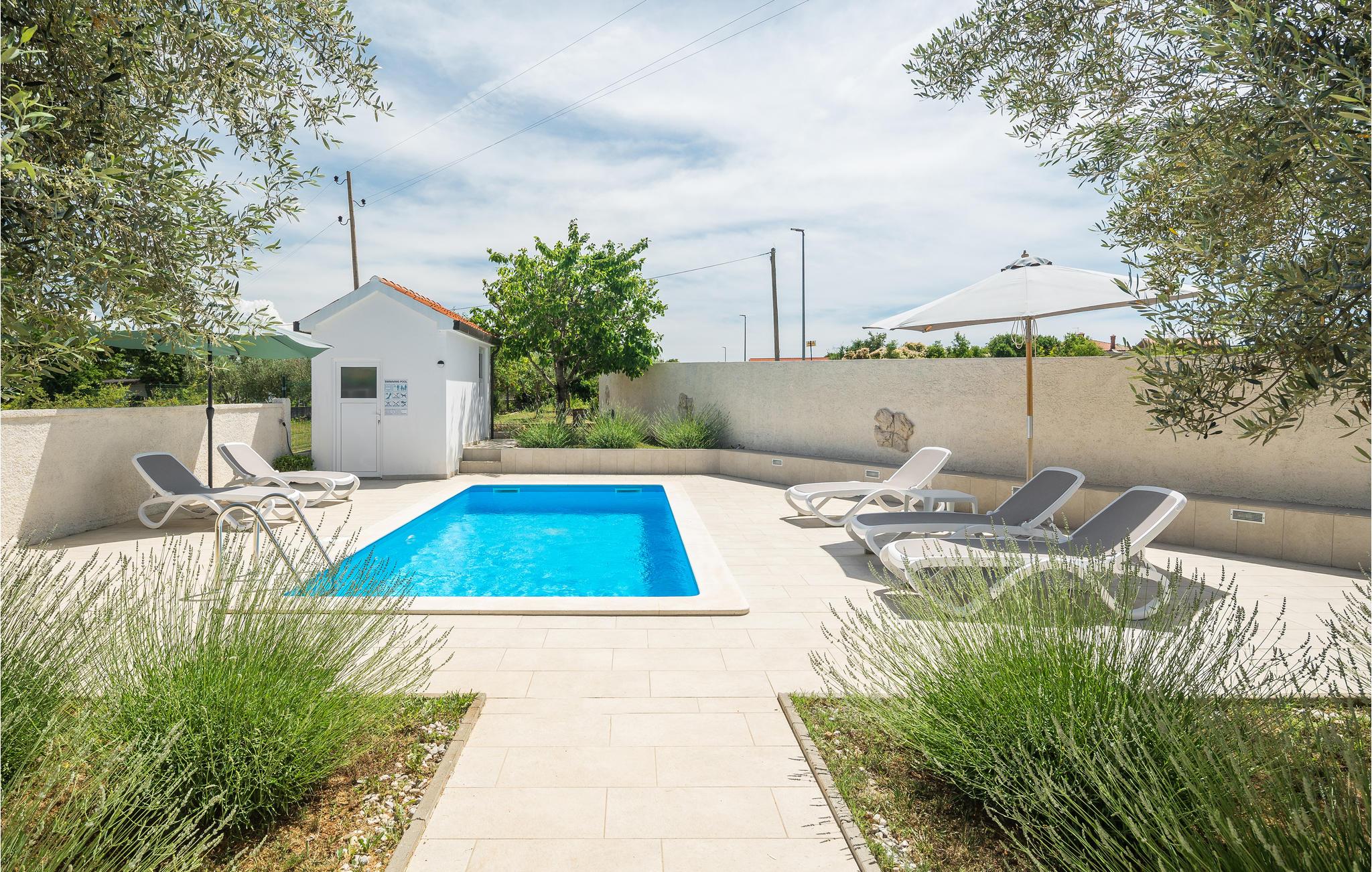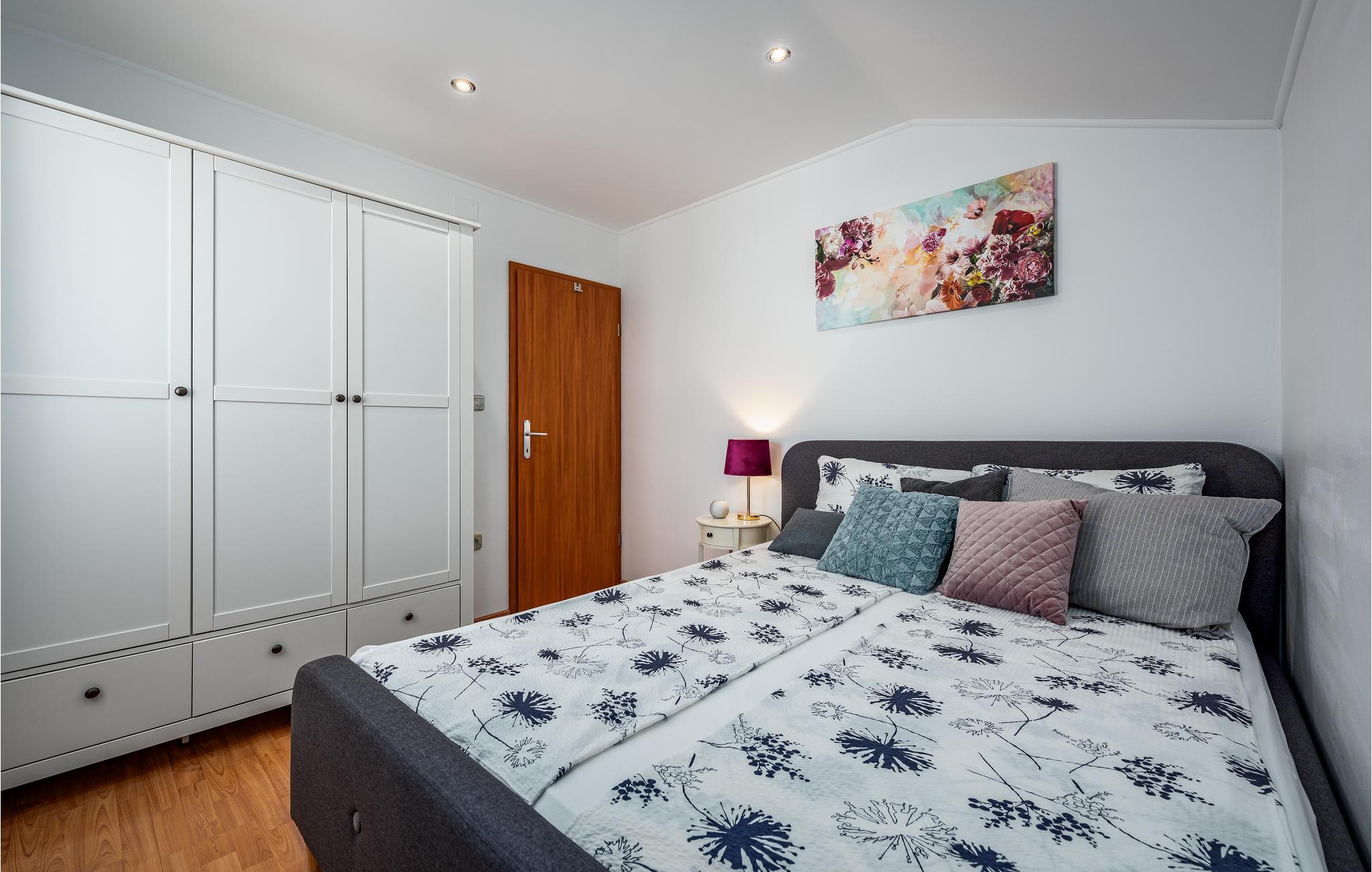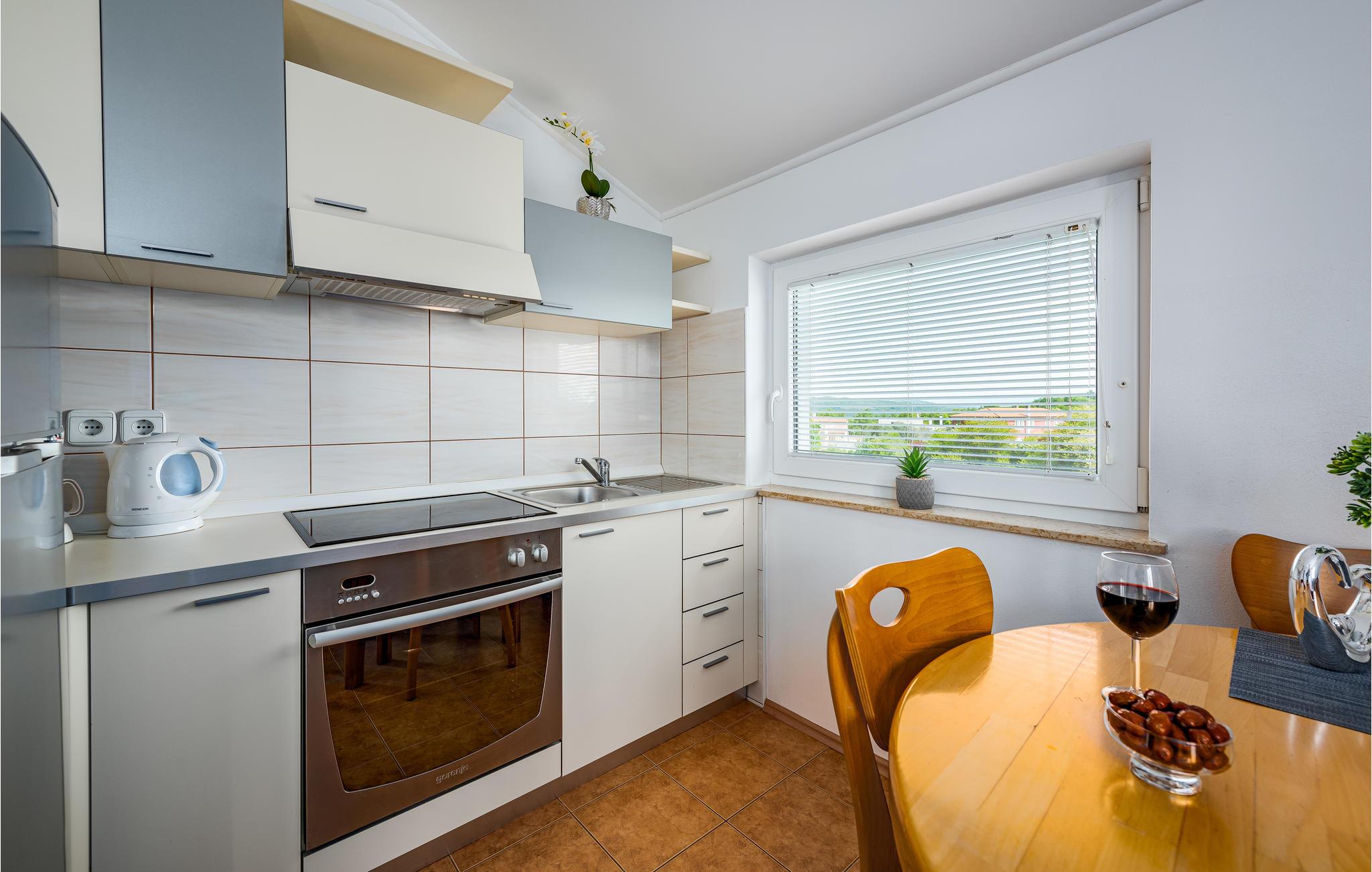 Nyd det afslappede ferieliv i byen Kaštel, i denne skønne ferielejlighed med sin egen pool. Den ligger på første etage i et privat hus og er smagfuldt indrettet. På terrassen ved poolen kan I slappe af, tage solbade, hygge jer sammen og drikke morgenkaffe og slutte dagen med mad fra grillen og udsigt til en romantisk solnedgang. Foran vinduerne i lejligheden er der praktiske myggenet, for at sørge for jeres komfort også om natten. Vil I bade i havet, så er der reserveret en gratis parkeringsplads til jer, ved stranden Kanegra. I kan gå lange ture i den smukke natur, og smage på de lokale vine, i en af de mange vinkældre langs vinruterne. Besøg Istriens kystbyer Umag, Novigrad og Porec hvor I kan lære mere om regionens rige kultur og historie.