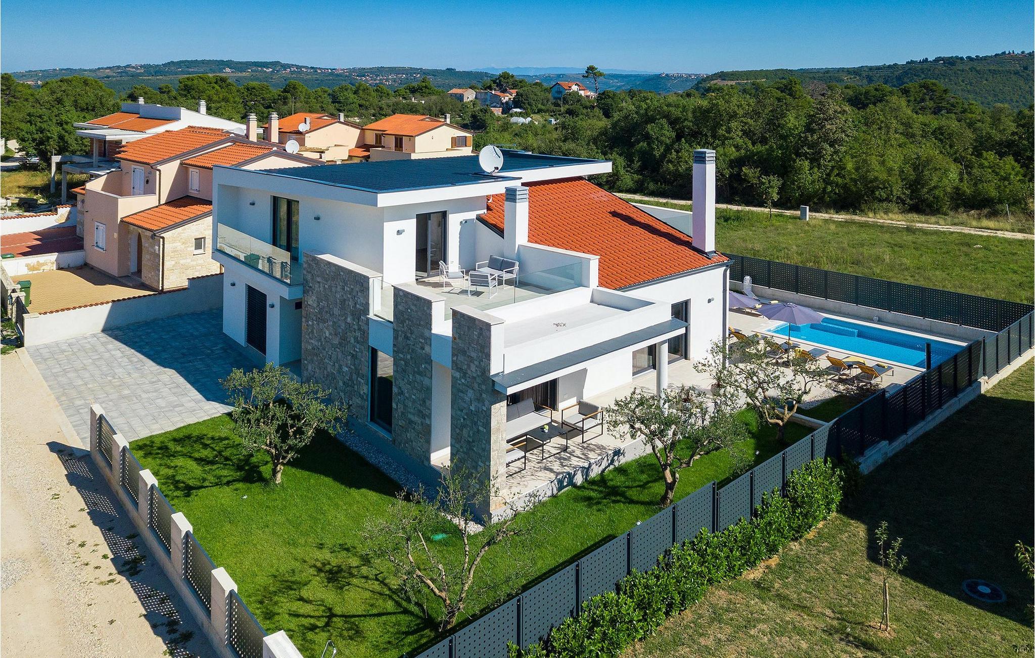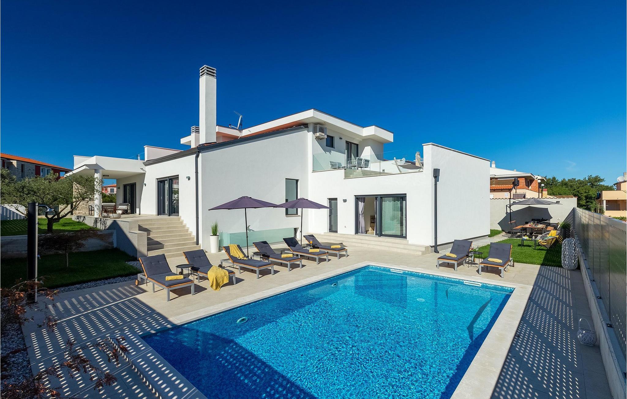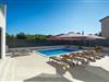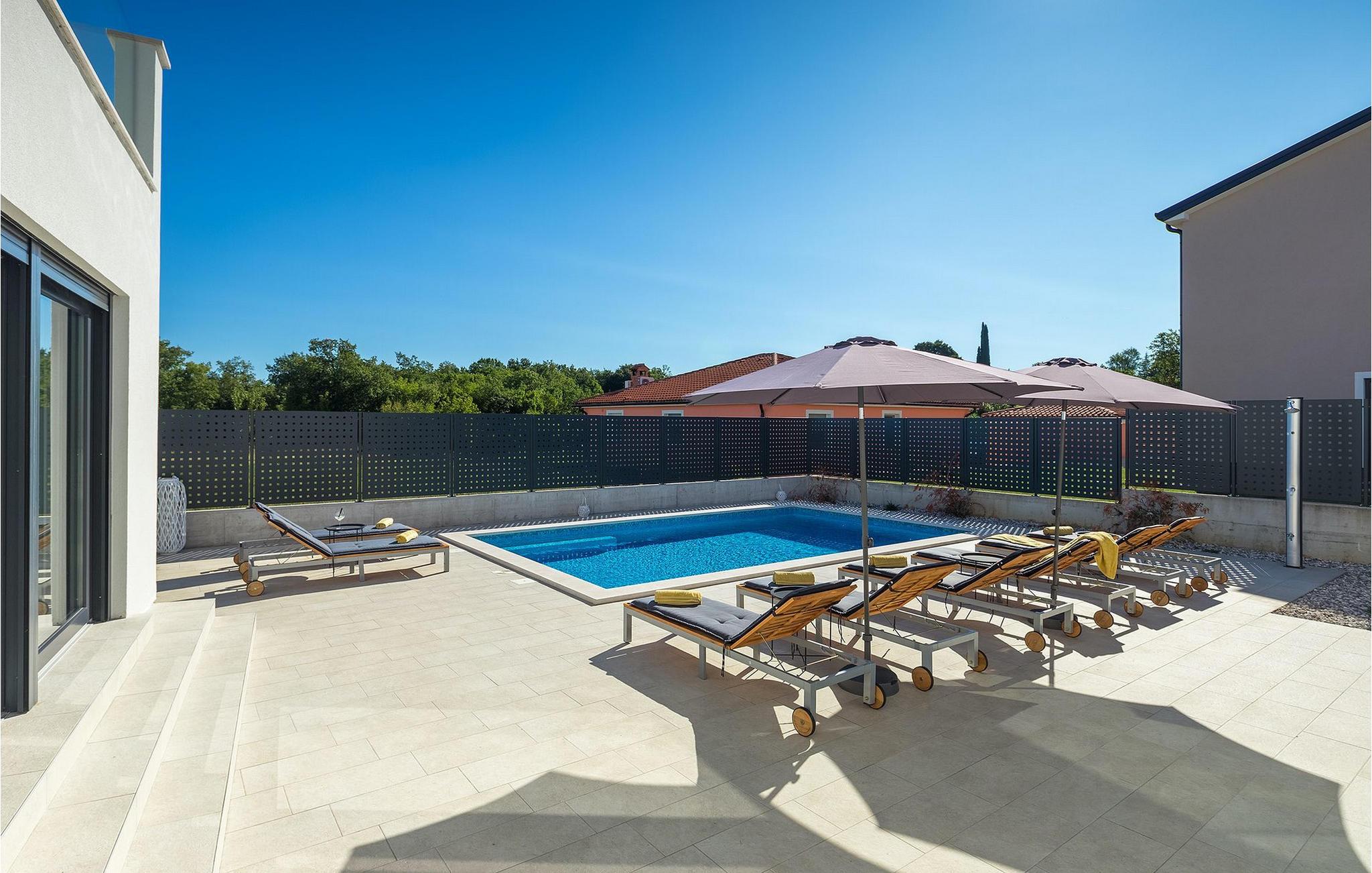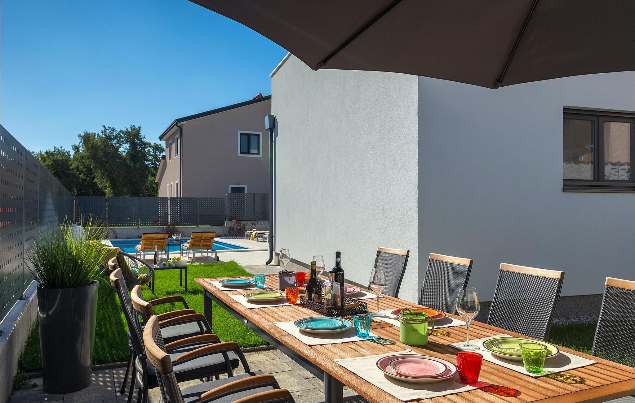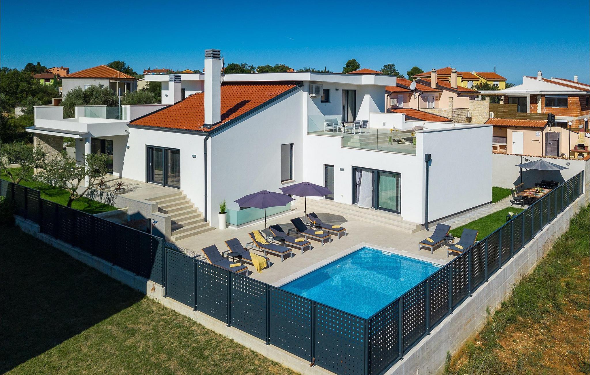 Den stilfulde villa Dolcea er en fire-værelses villa beliggende i den charmerende landsby Kastel cirka 8 km fra havet. Villaen er perfekt for alle, der ønsker at nyde en fredelig atmosfære og idyllisk natur. Kan du bare forestille dig at slappe af på de komfortable liggestole ved den private pool? Stueetagen består af en moderne indrettet stue, to hyggelige dobbeltværelser og et fuldt udstyret, rummeligt køkken og spisestue, begge fuld af lys. På første sal finder du de to andre soveværelser. Bortset fra ved poolen kan du nyde den istriske sol på den dejlige terrasse på første sal. Et ekstra køkken, hvor du kan tilberede lækre måltider til din familie og venner, er placeret under stueetagen, samt et underholdningsrum. De konkurrencedygtige, der ikke ønsker at slappe af ved poolen hele dagen, kan nyde at spille dart, pool på det professionelle billardbord eller bordfodbold. Villaen har aircondition, der er tv i hvert værelse, og hvert soveværelse har eget badeværelse. Som hendes navn siger, vil du tilbringe den sødeste ferie i Villa Dolcea. Vila Dolcea ligger i Kastel, en istrisk landsby tæt på kystbyen Umag. Umag tilbyder et stort udvalg af fritidsaktiviteter, turistfaciliteter samt en lille havn. Fremragende restauranter, barer og caféer kan findes i dens brostensbelagte gader. Gå ikke glip af din chance og prøv nogle trøfler, istrisk prosciutto, fisk og skaldyrsspecialiteter og lokal ost. I dag er Umag især kendt for sport: hver juli finder Croatia Open (en del af ATP World Tour 250-serien) sted der, med mange store navne fra mændenes tennisverden. Ikke langt væk fra Umag ligger også det prisvindende vandland Istralandia, ideelt til en sjov dag for hele familien. Kanegra-stranden, som er tættest på vilaen, er en lang stenstrand og en af de mest attraktive i Istrien.
