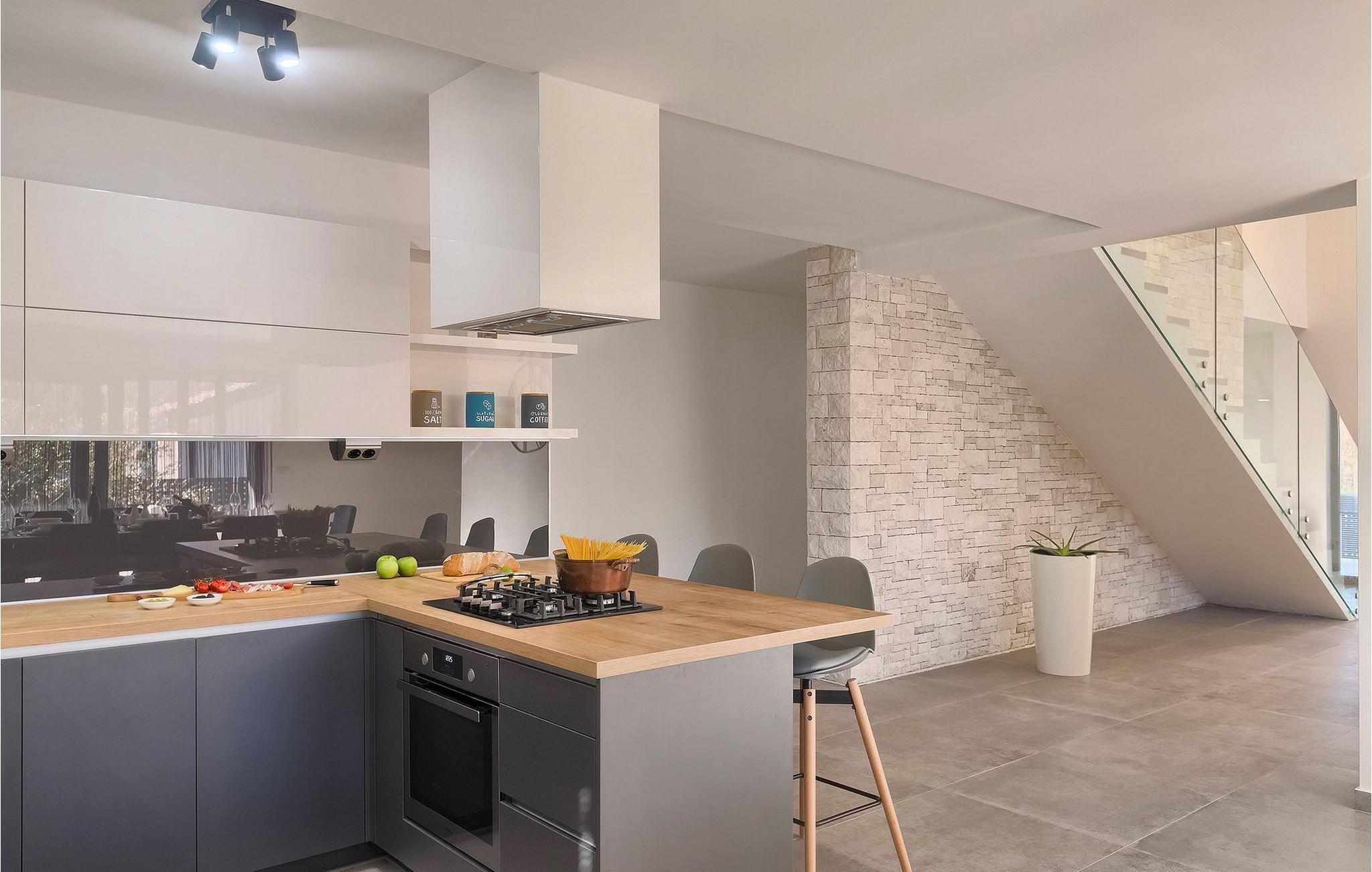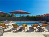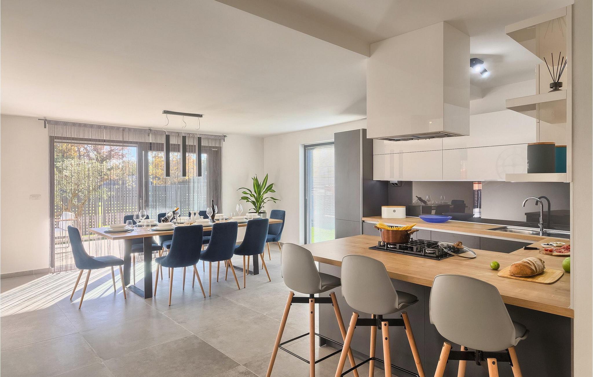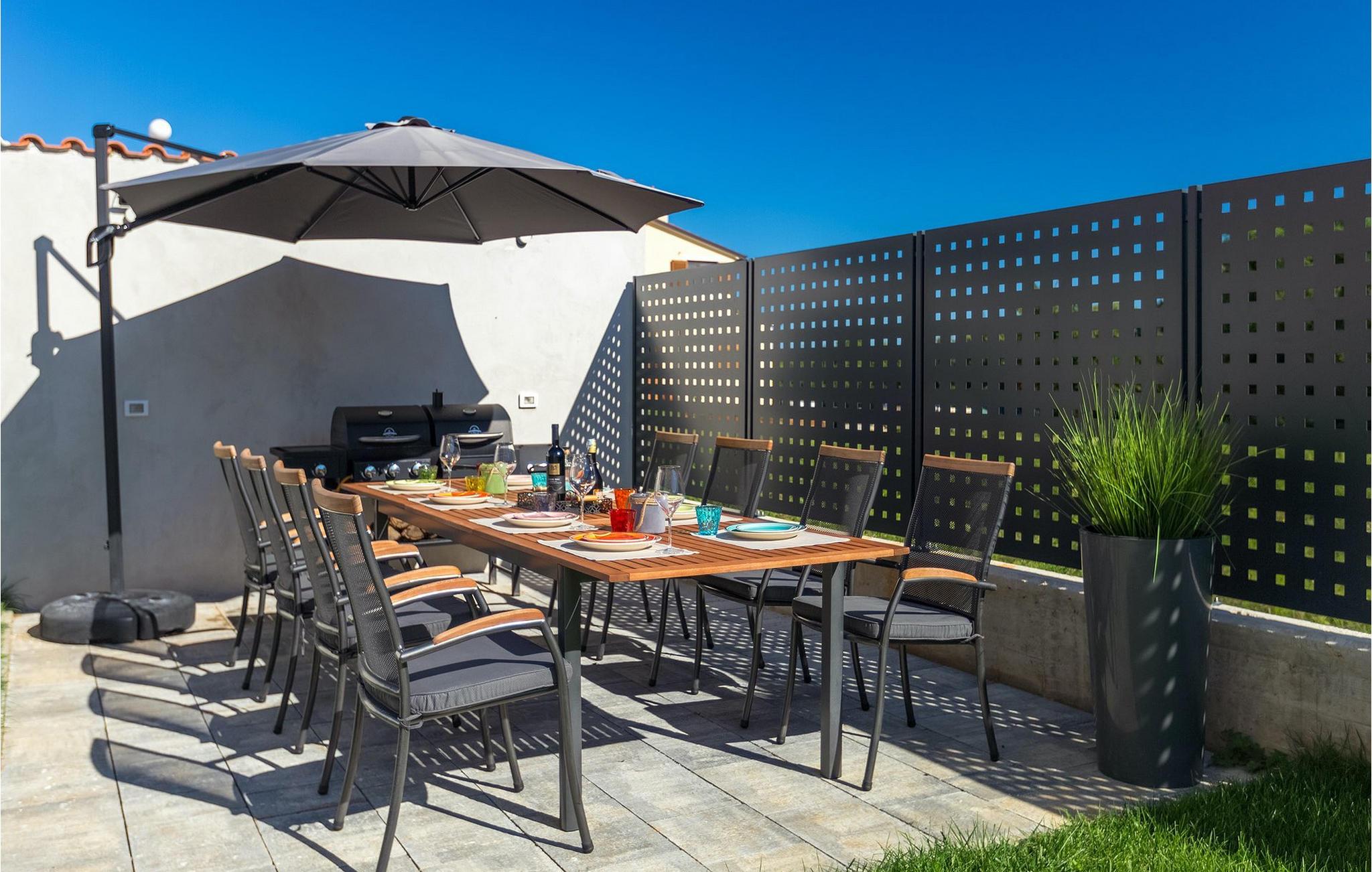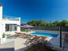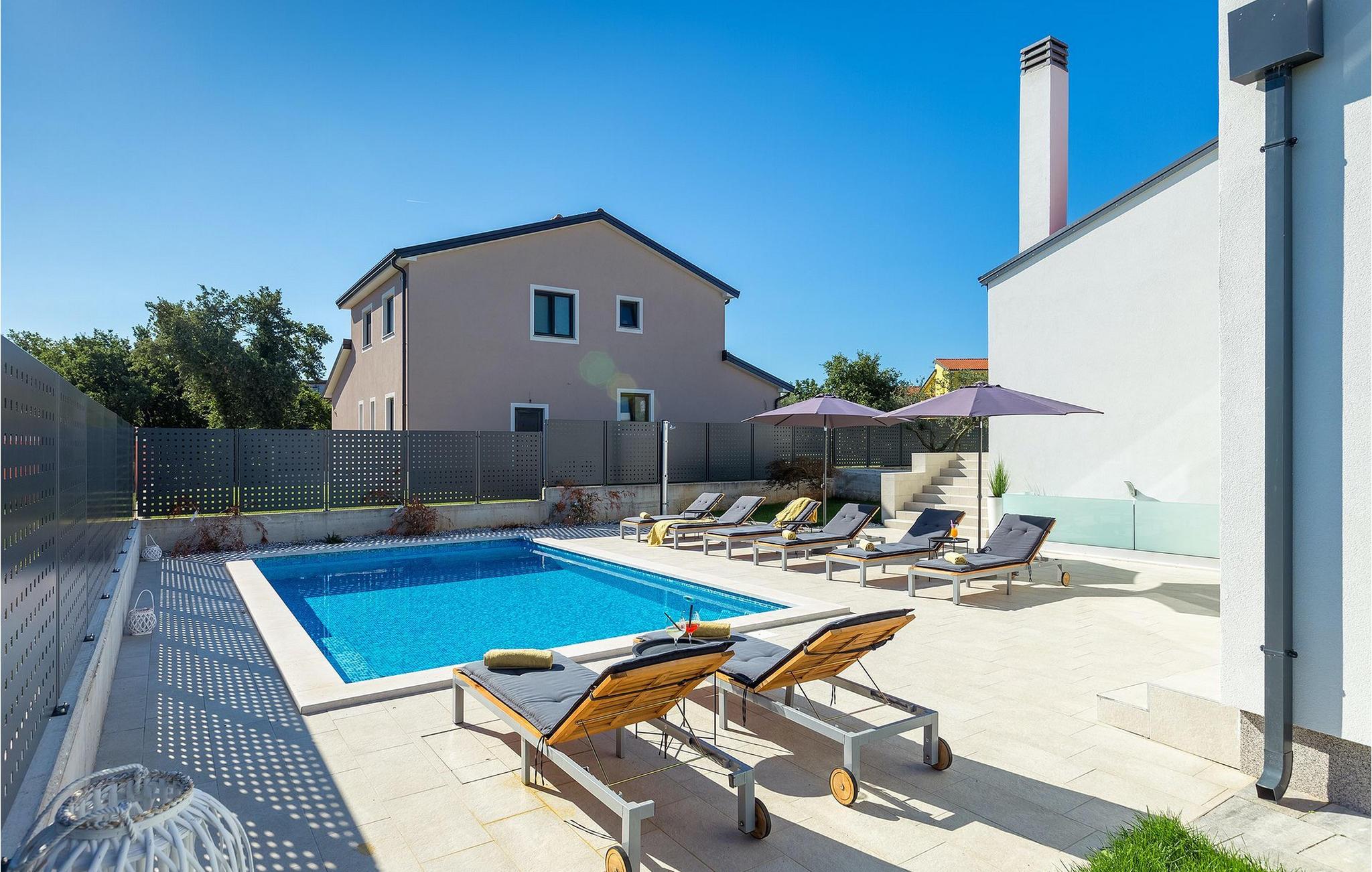 Den stilfulde villa Dolcea er en fire-værelses villa beliggende i den charmerende landsby Kastel cirka 8 km fra havet. Villaen er perfekt for alle, der ønsker at nyde en fredelig atmosfære og idyllisk natur. Kan du bare forestille dig at slappe af på de komfortable liggestole ved den private pool? Stueetagen består af en moderne indrettet stue, to hyggelige dobbeltværelser og et fuldt udstyret, rummeligt køkken og spisestue, begge fuld af lys. På første sal finder du de to andre soveværelser. Bortset fra ved poolen kan du nyde den istriske sol på den dejlige terrasse på første sal. Et ekstra køkken, hvor du kan tilberede lækre måltider til din familie og venner, er placeret under stueetagen, samt et underholdningsrum. De konkurrencedygtige, der ikke ønsker at slappe af ved poolen hele dagen, kan nyde at spille dart, pool på det professionelle billardbord eller bordfodbold. Villaen har aircondition, der er tv i hvert værelse, og hvert soveværelse har eget badeværelse. Som hendes navn siger, vil du tilbringe den sødeste ferie i Villa Dolcea. Vila Dolcea ligger i Kastel, en istrisk landsby tæt på kystbyen Umag. Umag tilbyder et stort udvalg af fritidsaktiviteter, turistfaciliteter samt en lille havn. Fremragende restauranter, barer og caféer kan findes i dens brostensbelagte gader. Gå ikke glip af din chance og prøv nogle trøfler, istrisk prosciutto, fisk og skaldyrsspecialiteter og lokal ost. I dag er Umag især kendt for sport: hver juli finder Croatia Open (en del af ATP World Tour 250-serien) sted der, med mange store navne fra mændenes tennisverden. Ikke langt væk fra Umag ligger også det prisvindende vandland Istralandia, ideelt til en sjov dag for hele familien. Kanegra-stranden, som er tættest på vilaen, er en lang stenstrand og en af de mest attraktive i Istrien.