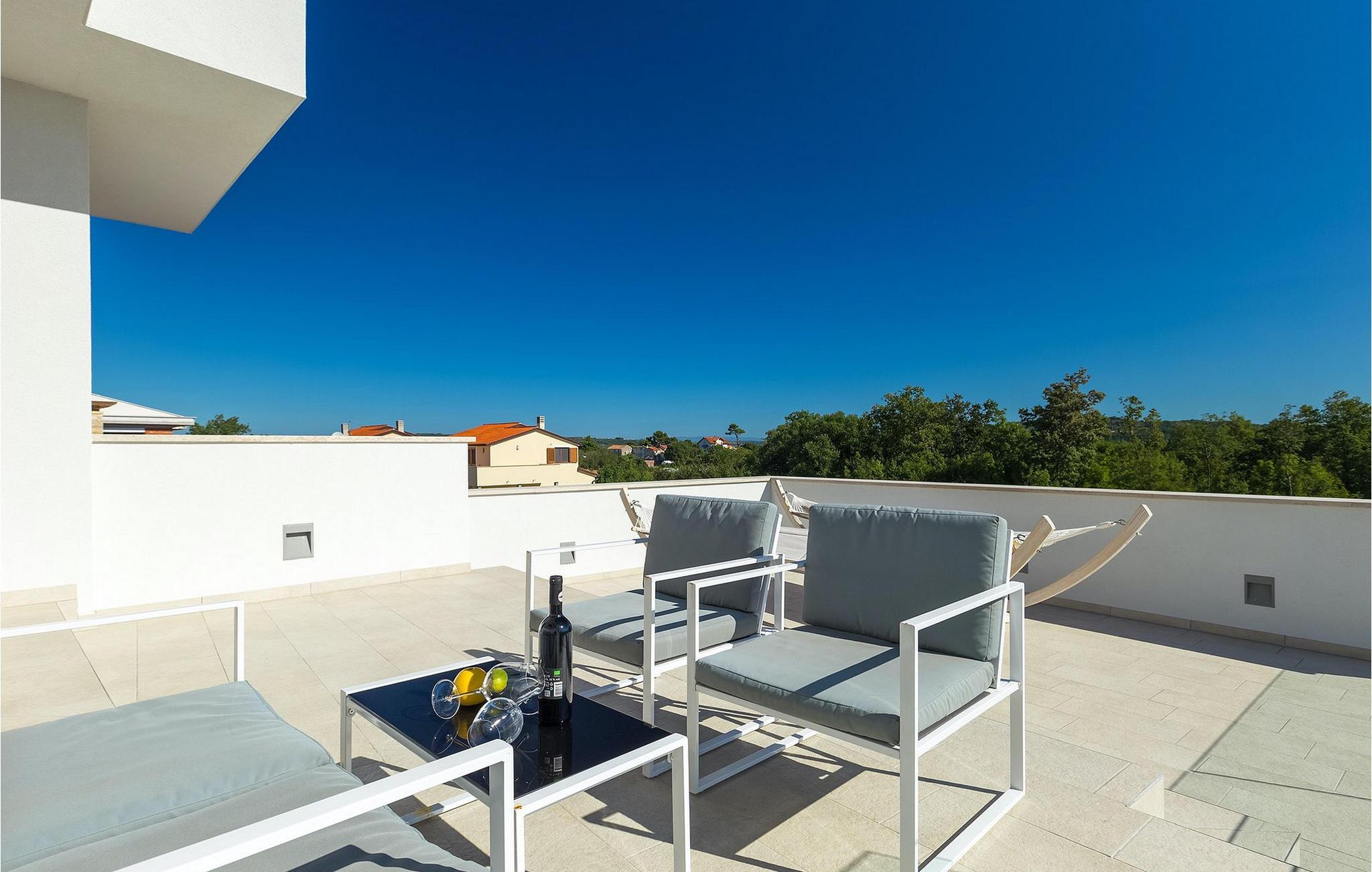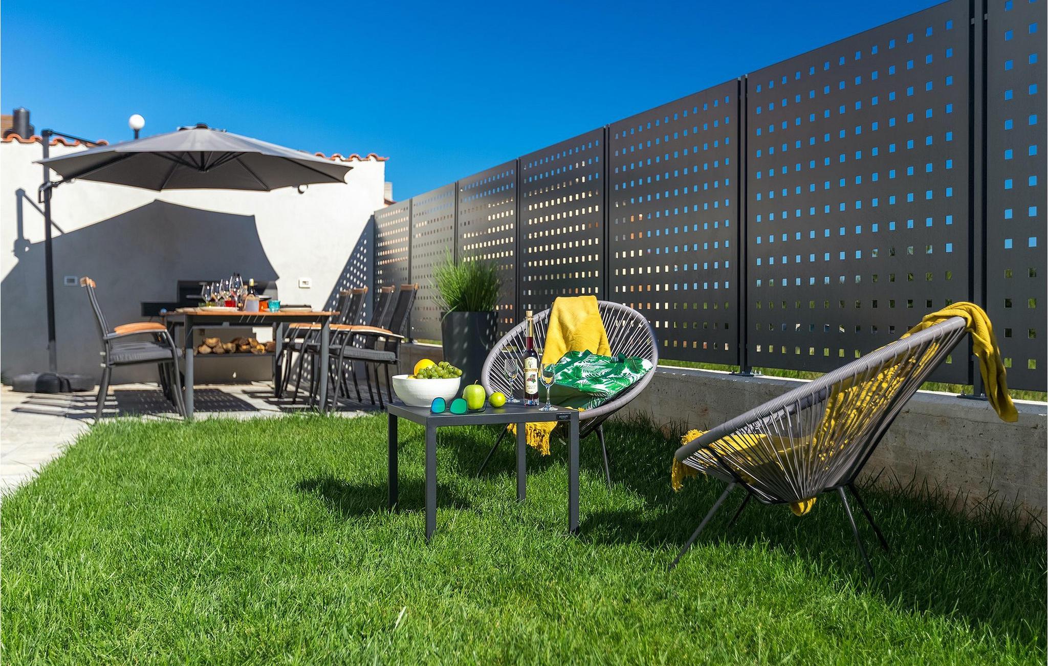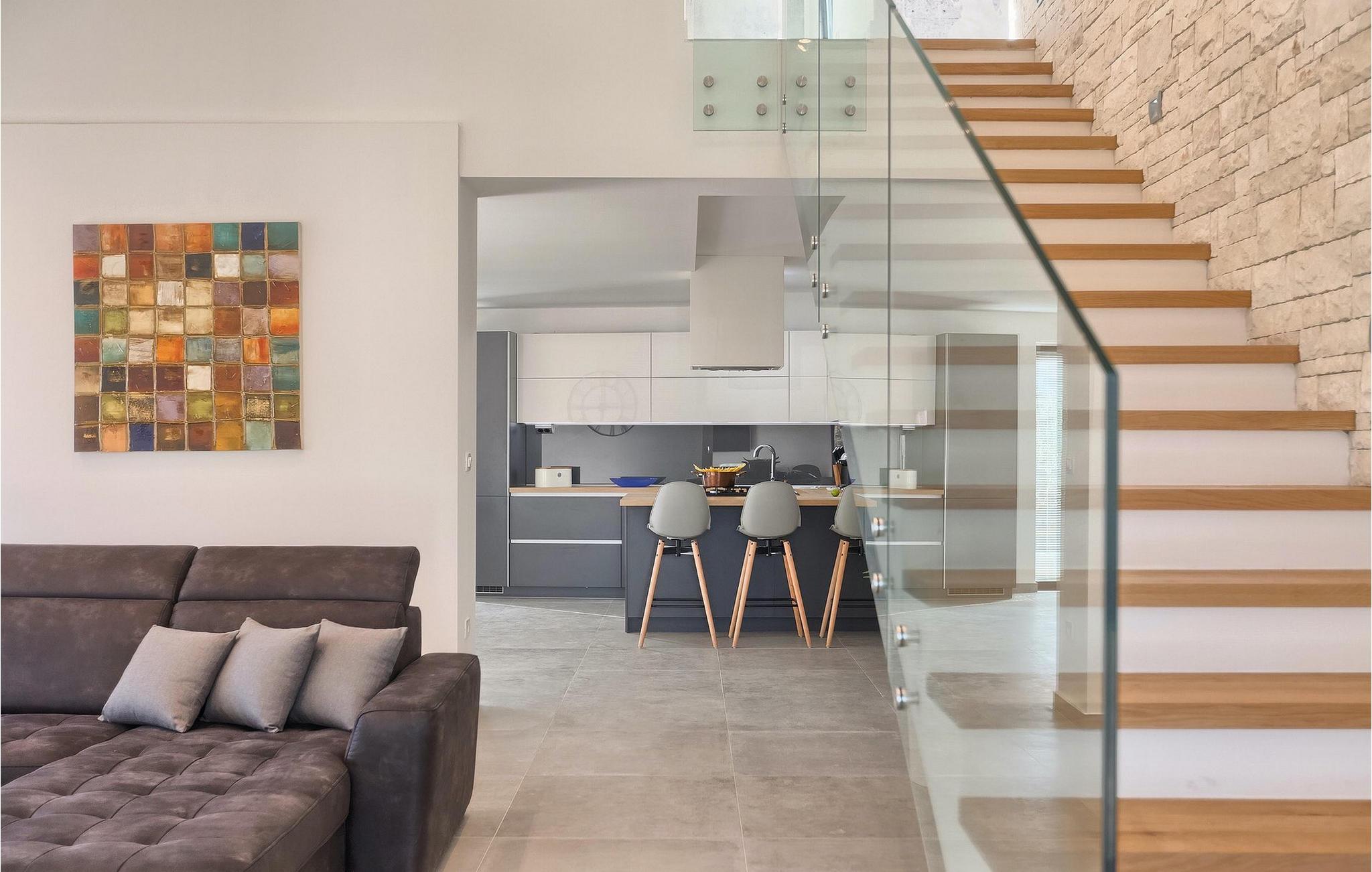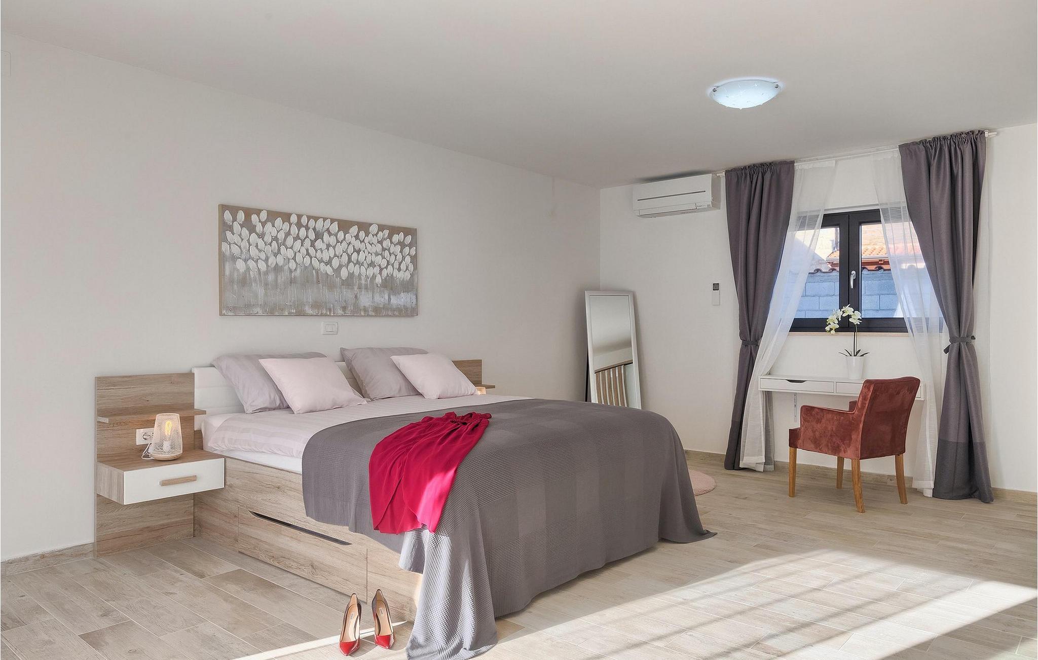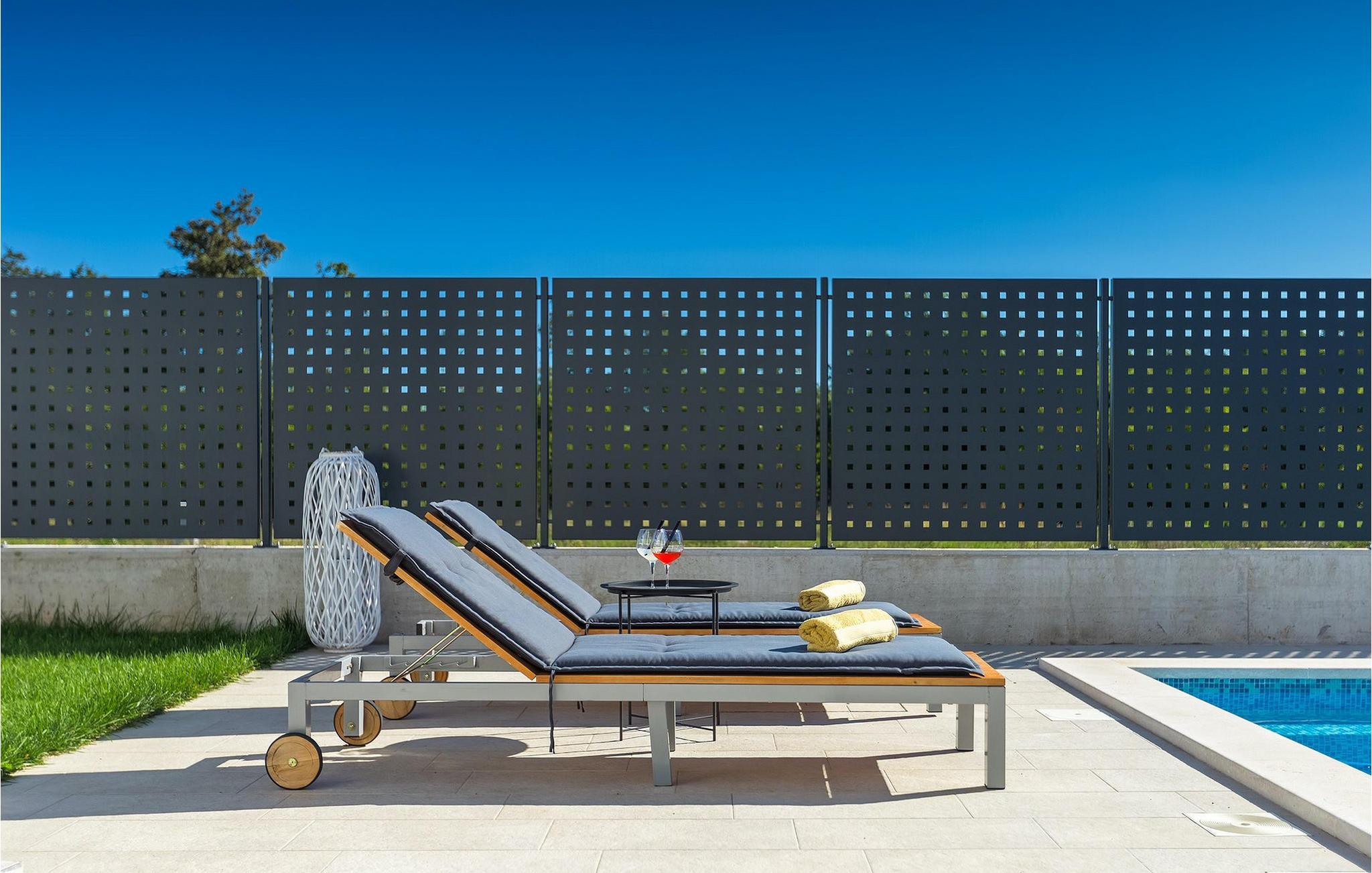 Den stilfulde villa Dolcea er en fire-værelses villa beliggende i den charmerende landsby Kastel cirka 8 km fra havet. Villaen er perfekt for alle, der ønsker at nyde en fredelig atmosfære og idyllisk natur. Kan du bare forestille dig at slappe af på de komfortable liggestole ved den private pool? Stueetagen består af en moderne indrettet stue, to hyggelige dobbeltværelser og et fuldt udstyret, rummeligt køkken og spisestue, begge fuld af lys. På første sal finder du de to andre soveværelser. Bortset fra ved poolen kan du nyde den istriske sol på den dejlige terrasse på første sal. Et ekstra køkken, hvor du kan tilberede lækre måltider til din familie og venner, er placeret under stueetagen, samt et underholdningsrum. De konkurrencedygtige, der ikke ønsker at slappe af ved poolen hele dagen, kan nyde at spille dart, pool på det professionelle billardbord eller bordfodbold. Villaen har aircondition, der er tv i hvert værelse, og hvert soveværelse har eget badeværelse. Som hendes navn siger, vil du tilbringe den sødeste ferie i Villa Dolcea. Vila Dolcea ligger i Kastel, en istrisk landsby tæt på kystbyen Umag. Umag tilbyder et stort udvalg af fritidsaktiviteter, turistfaciliteter samt en lille havn. Fremragende restauranter, barer og caféer kan findes i dens brostensbelagte gader. Gå ikke glip af din chance og prøv nogle trøfler, istrisk prosciutto, fisk og skaldyrsspecialiteter og lokal ost. I dag er Umag især kendt for sport: hver juli finder Croatia Open (en del af ATP World Tour 250-serien) sted der, med mange store navne fra mændenes tennisverden. Ikke langt væk fra Umag ligger også det prisvindende vandland Istralandia, ideelt til en sjov dag for hele familien. Kanegra-stranden, som er tættest på vilaen, er en lang stenstrand og en af de mest attraktive i Istrien.